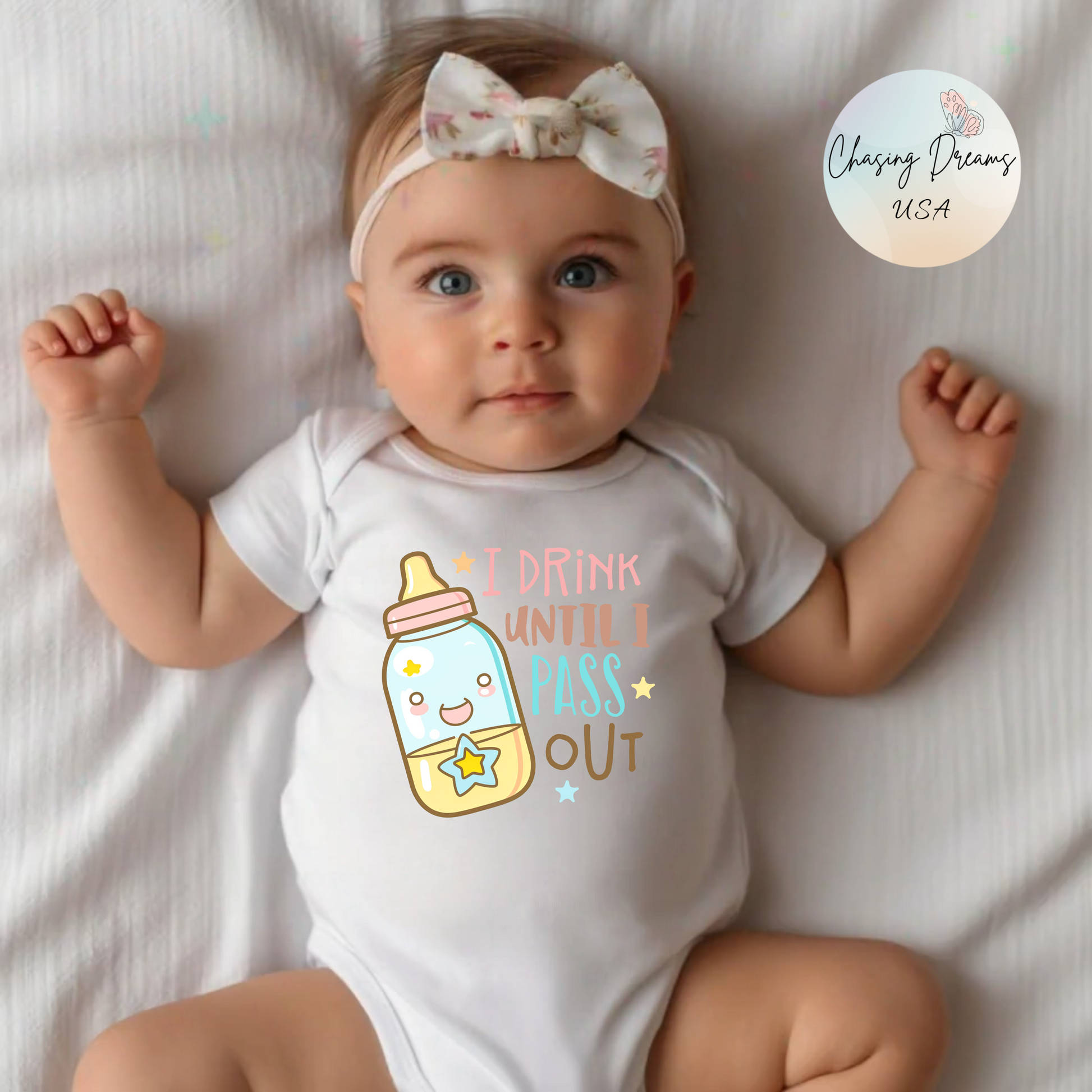 🍼 I Drink Until I Pass Out Baby Onesie – Funny Newborn Outfit 👶✨