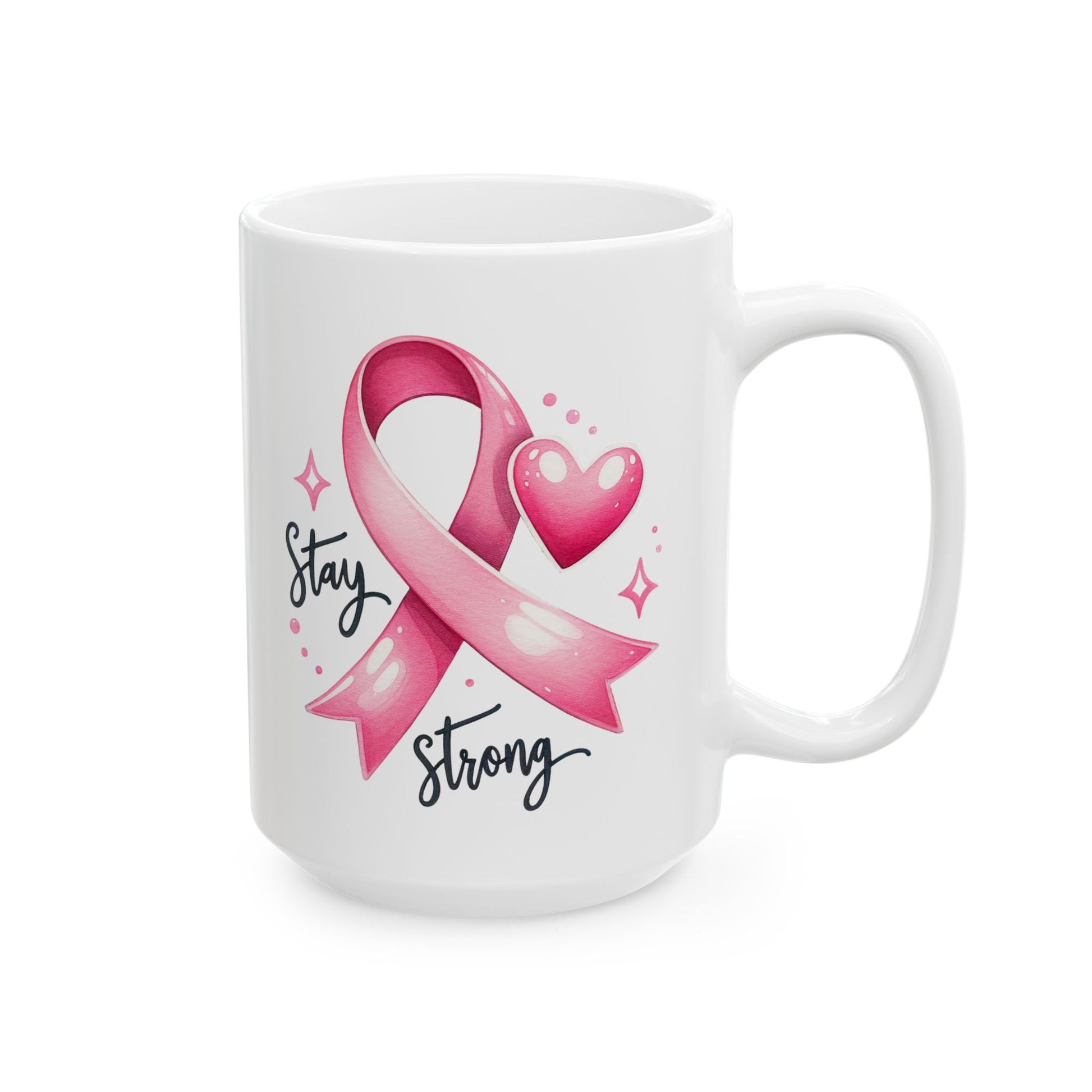 🎀 Stay Strong Pink Ribbon Mug – Inspirational Breast Cancer Awareness Coffee Cup