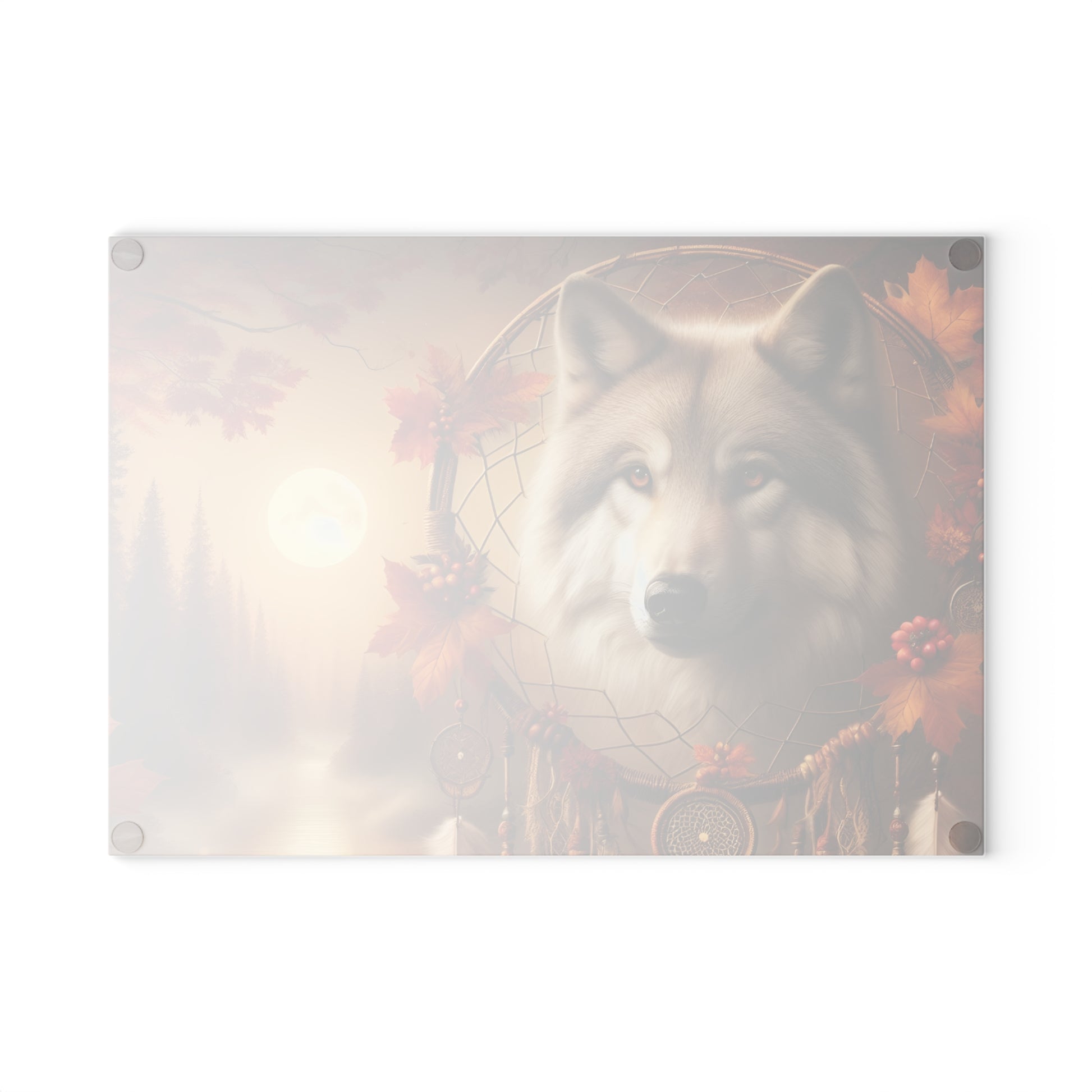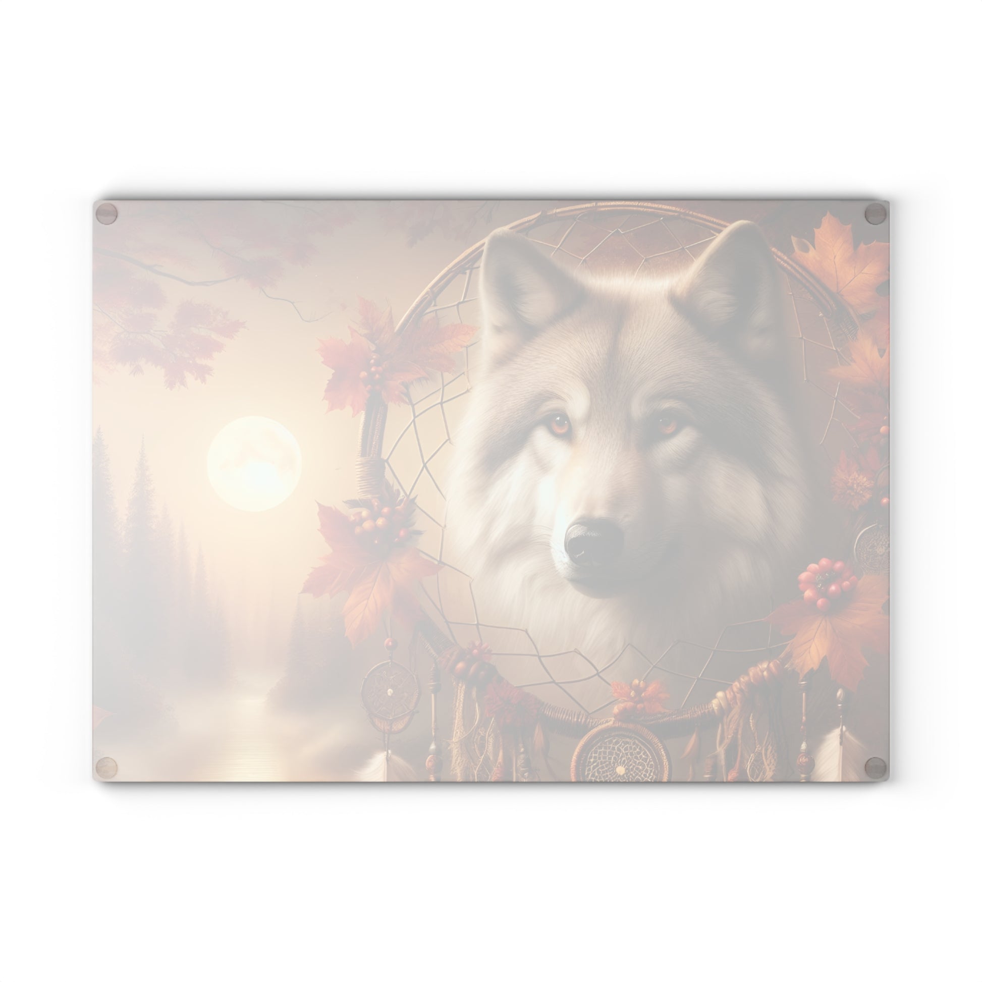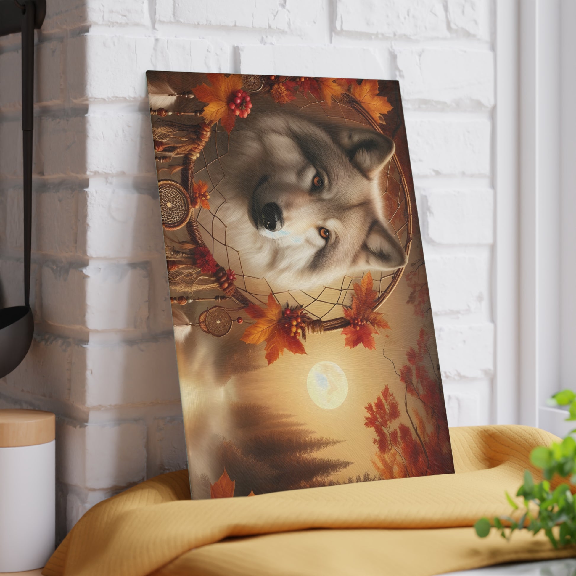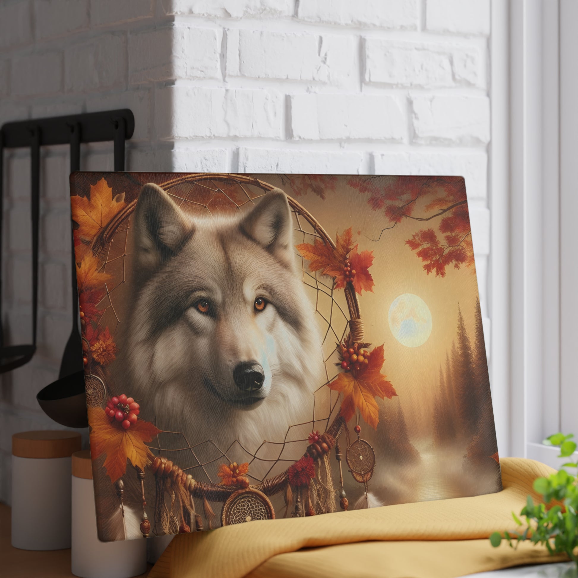 🐺 Autumn Wolf Dreamcatcher Cutting Board – Mystical Forest Elegance 🌕