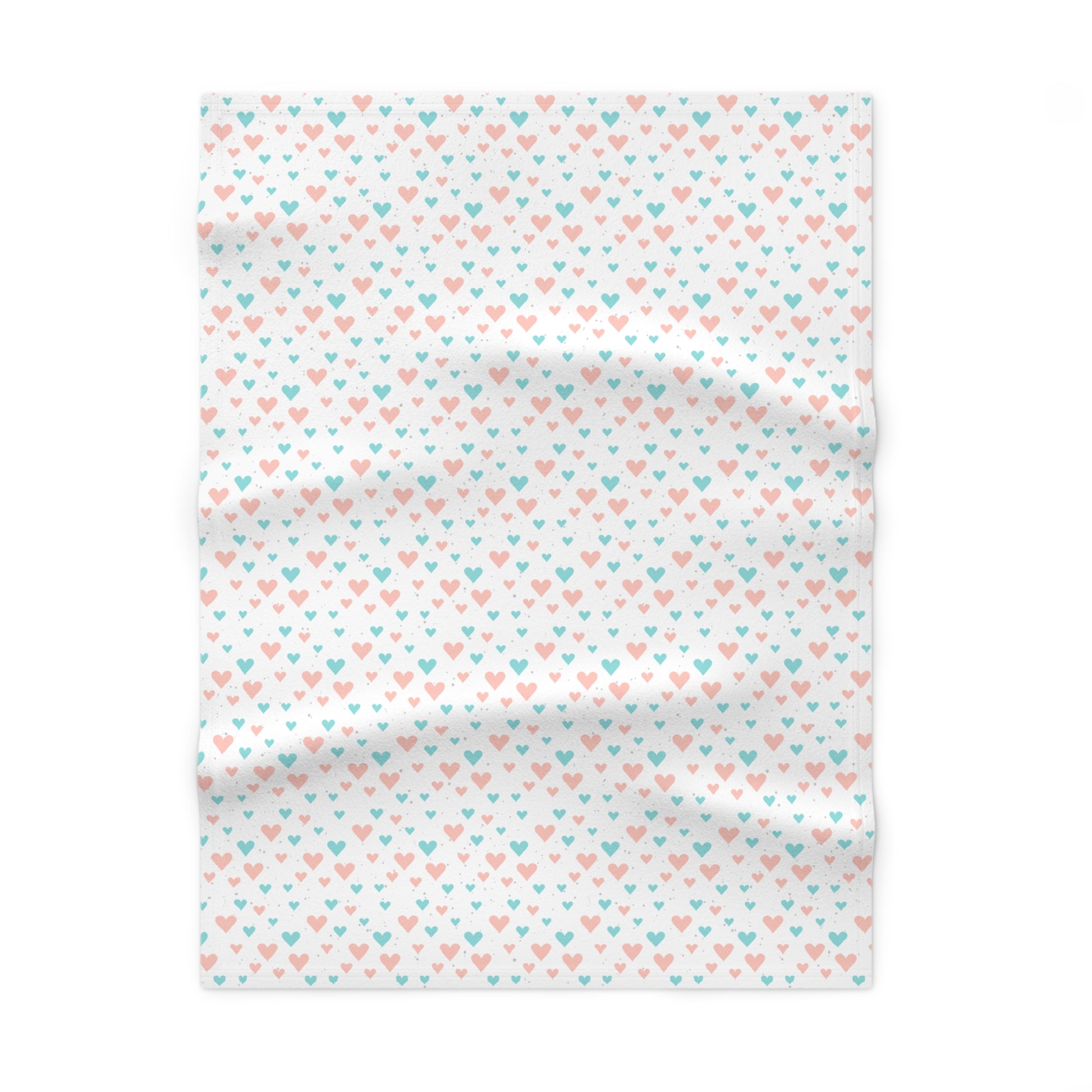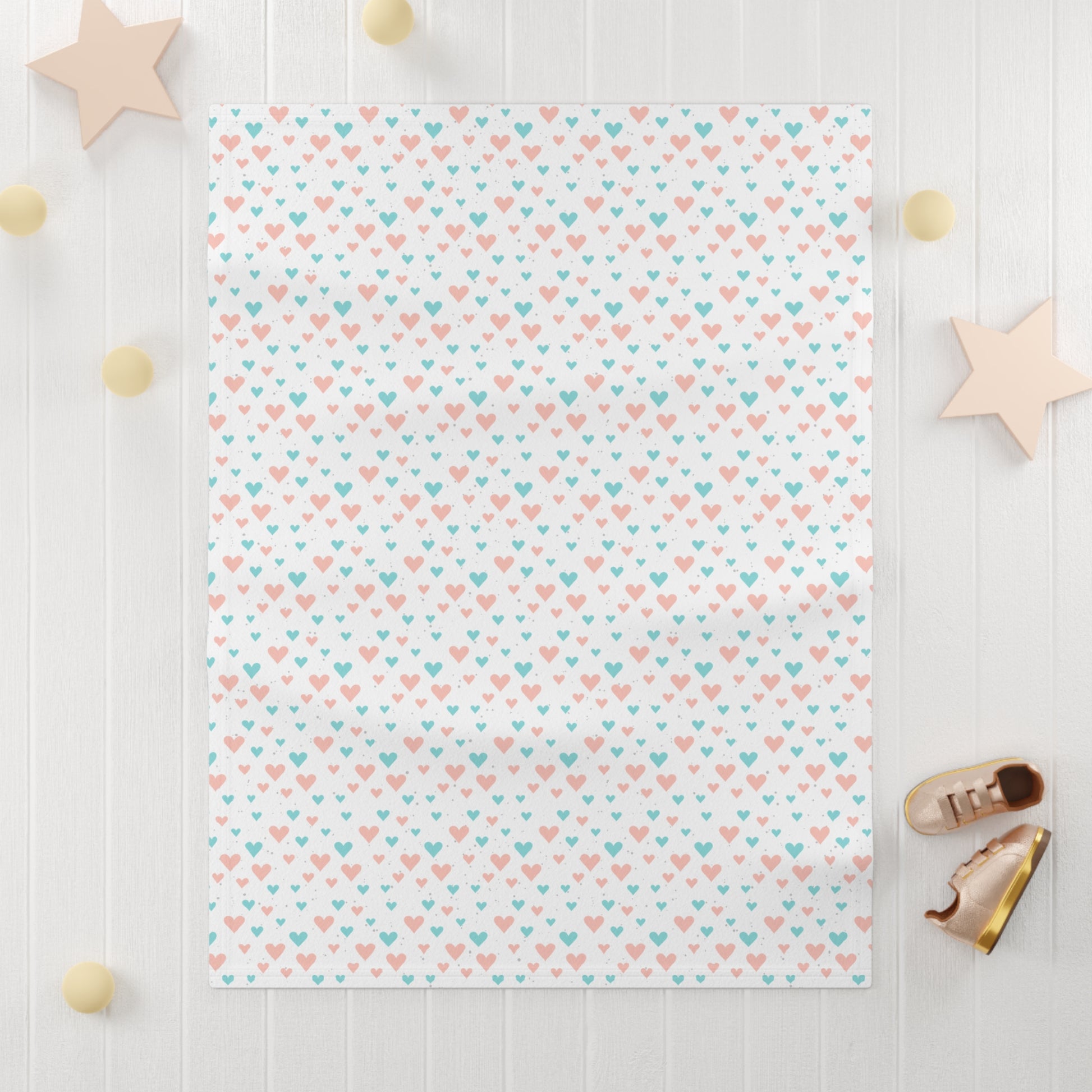 Soft, smooth, and sweet—this velveteen plush blanket brings cozy comfort and a light, airy vibe to any nursery or living space. The white background keeps it fresh and unisex, while the soft pink and powder-blue heart pattern adds playful charm without feeling baby-specific. Perfect for tummy time, stroller snuggles, story hour, or layering at the foot of the bed. A thoughtful gift for baby showers, birthdays, and holidays.