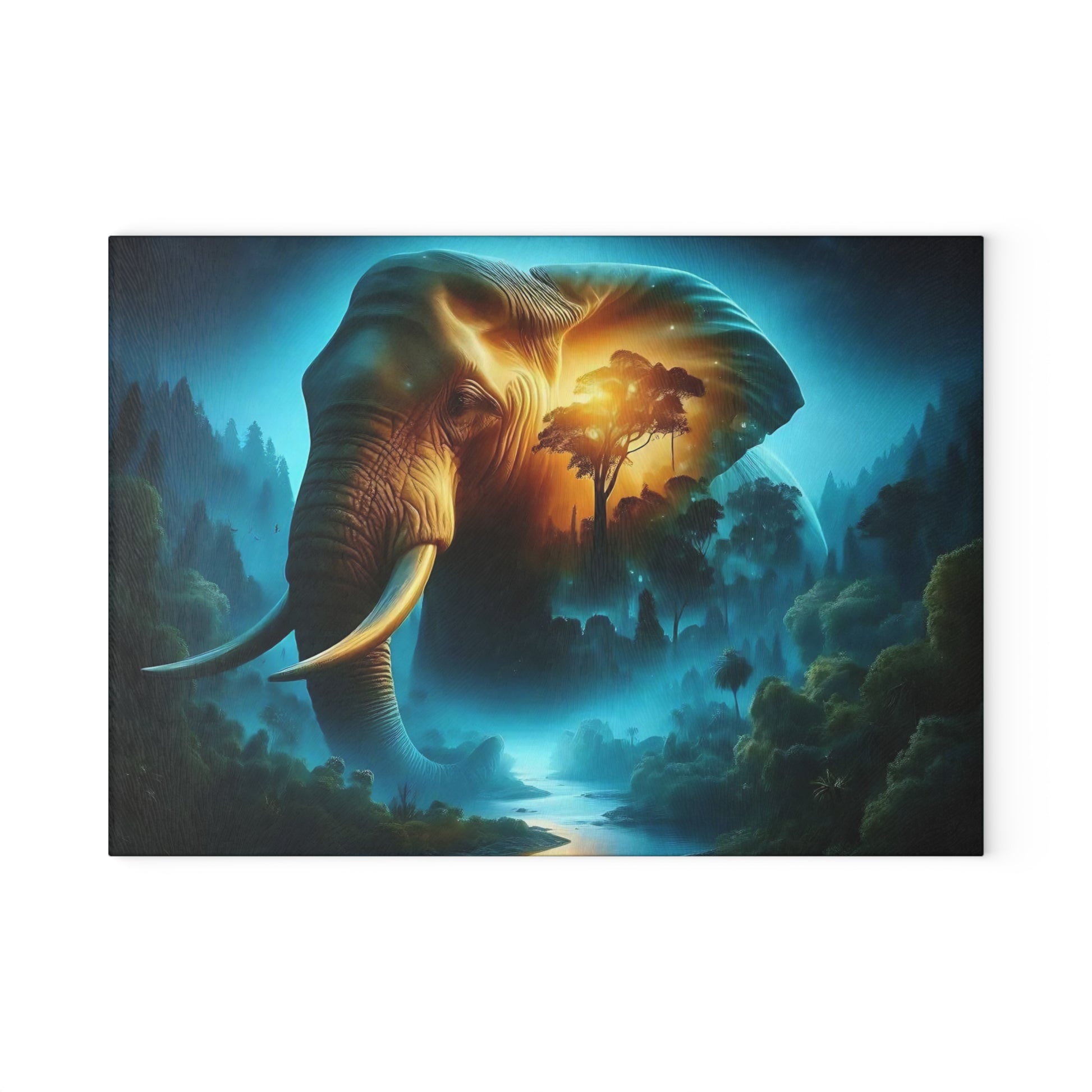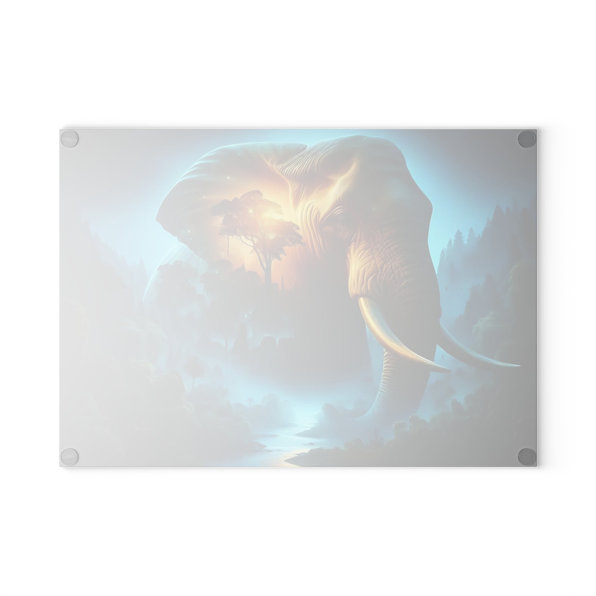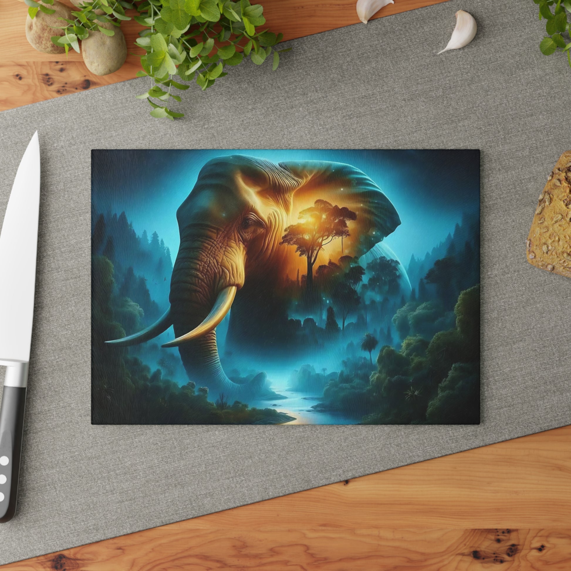 Dale un toque de majestuosidad a tu cocina con esta tabla de cortar de vidrio con un hermoso diseño inspirado en un elefante. Con una impresionante representación artística de un elefante, esta pieza única combina elegancia y funcionalidad.