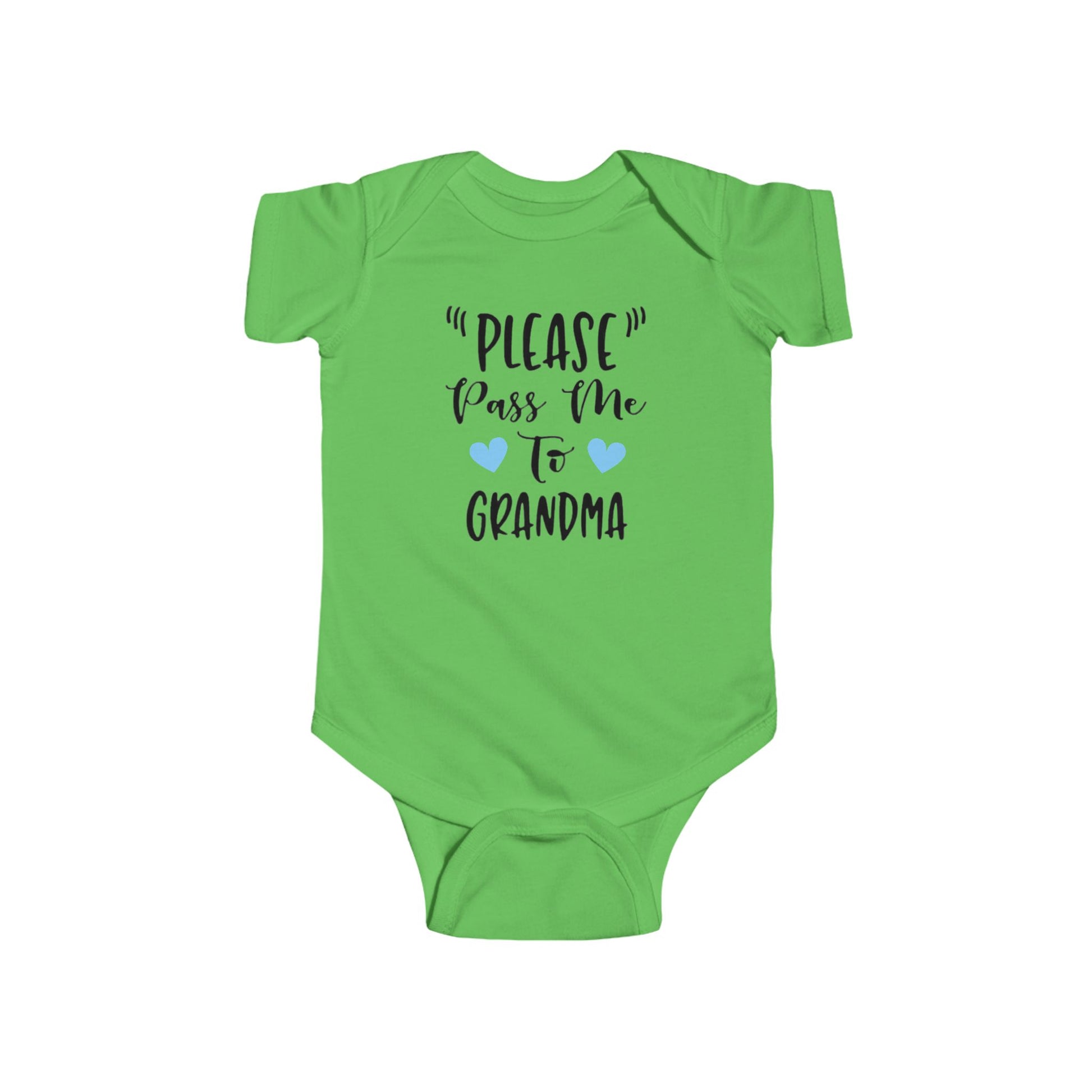 Body unisex para bebé "Pásame a la abuela", disponible con corazones azules o rosas.