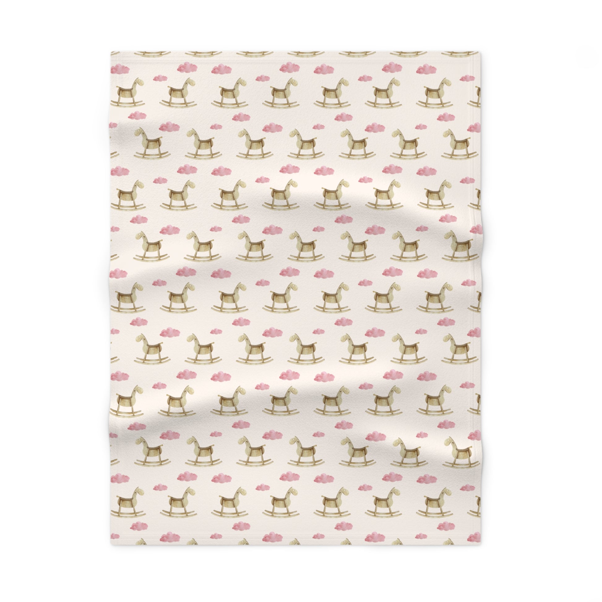 🩷 Rocking Horse & Pink Clouds Velveteen Plush Blanket – Soft Cream (Baby)