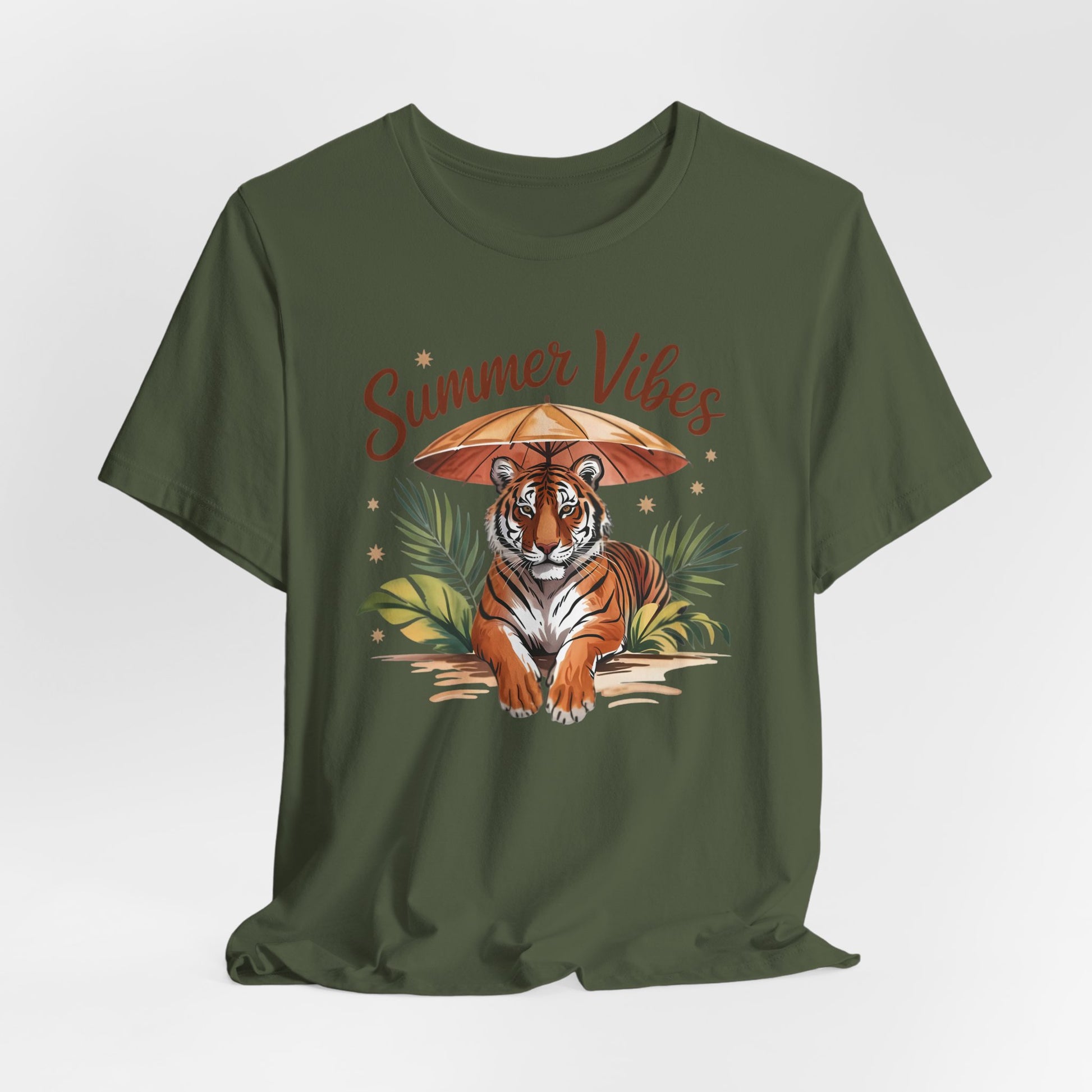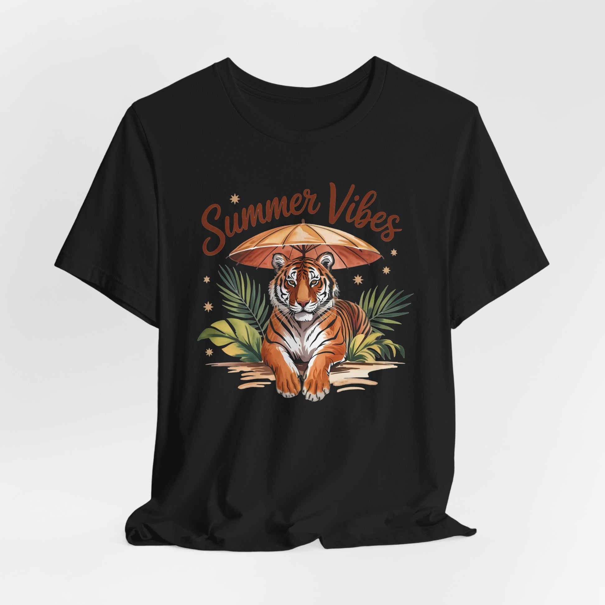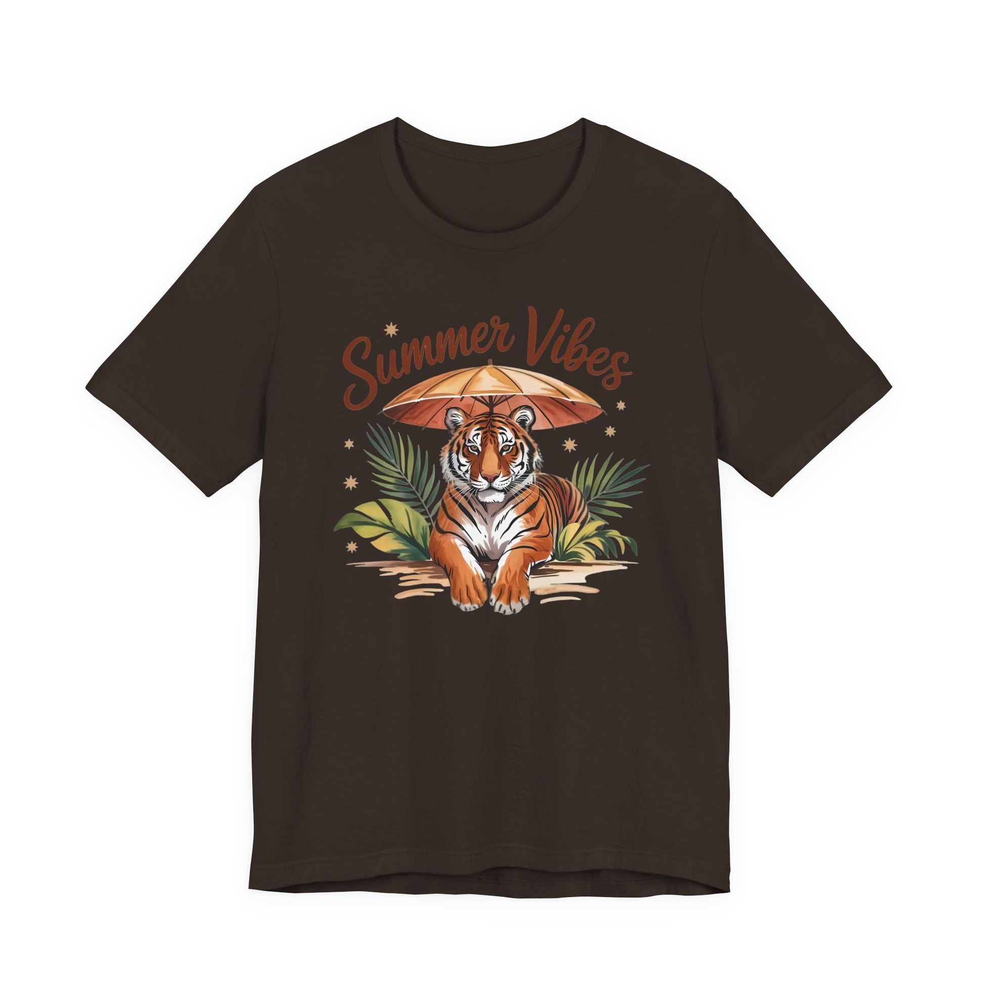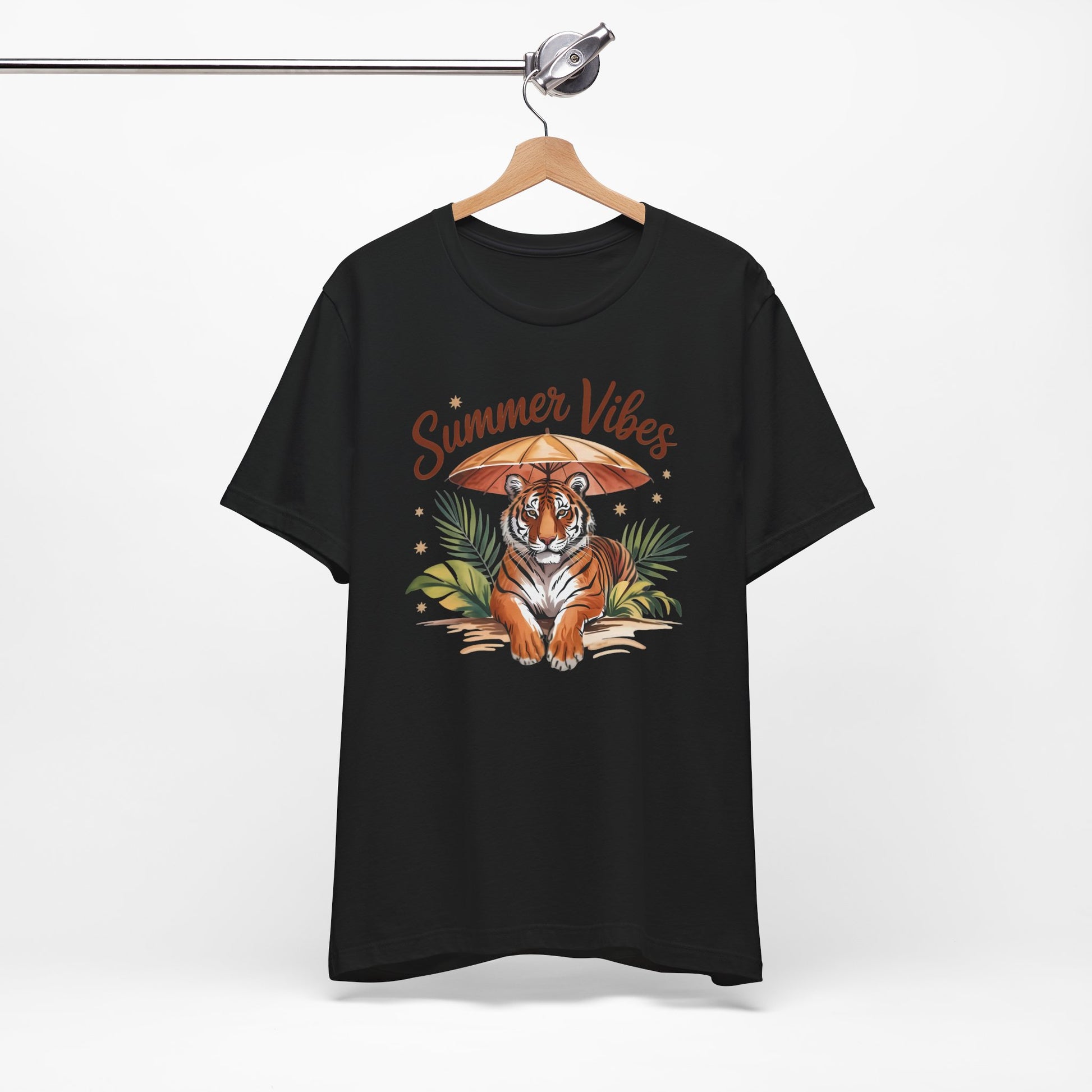 Camiseta Summer Vibes Tiger – Gráfico de palmeras de la selva con paraguas | Múltiples opciones de color