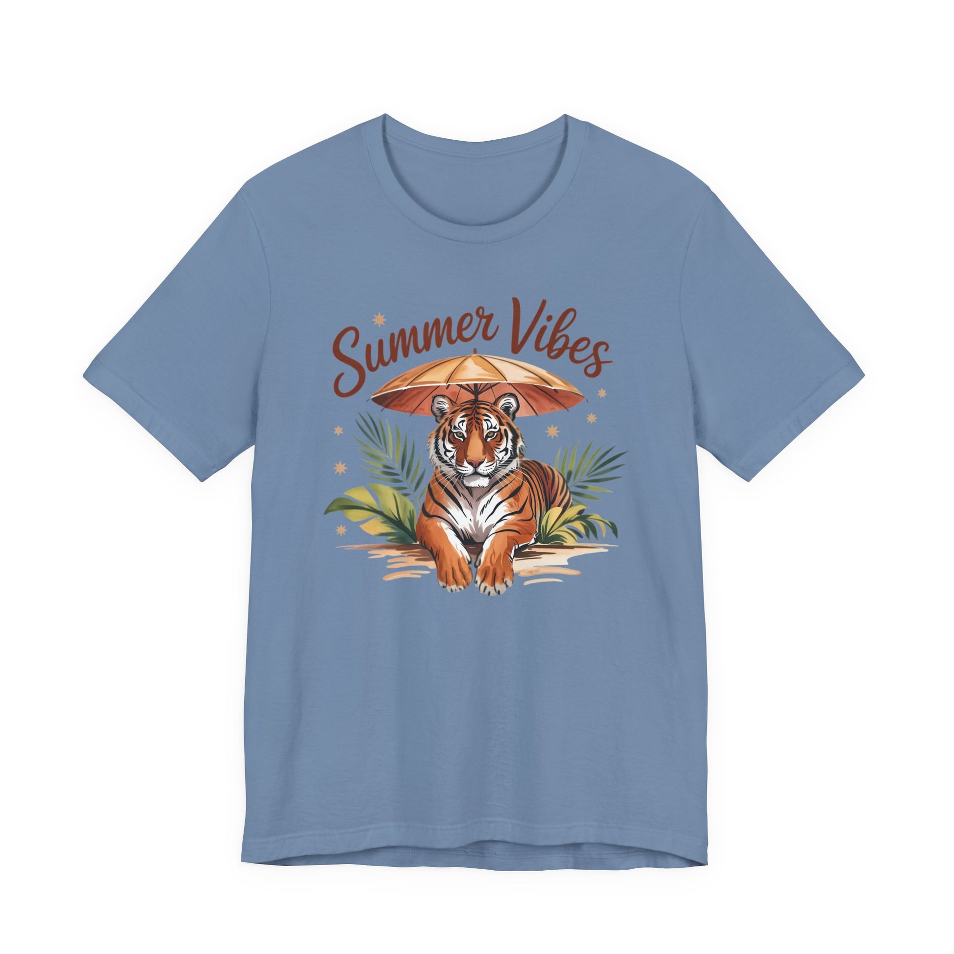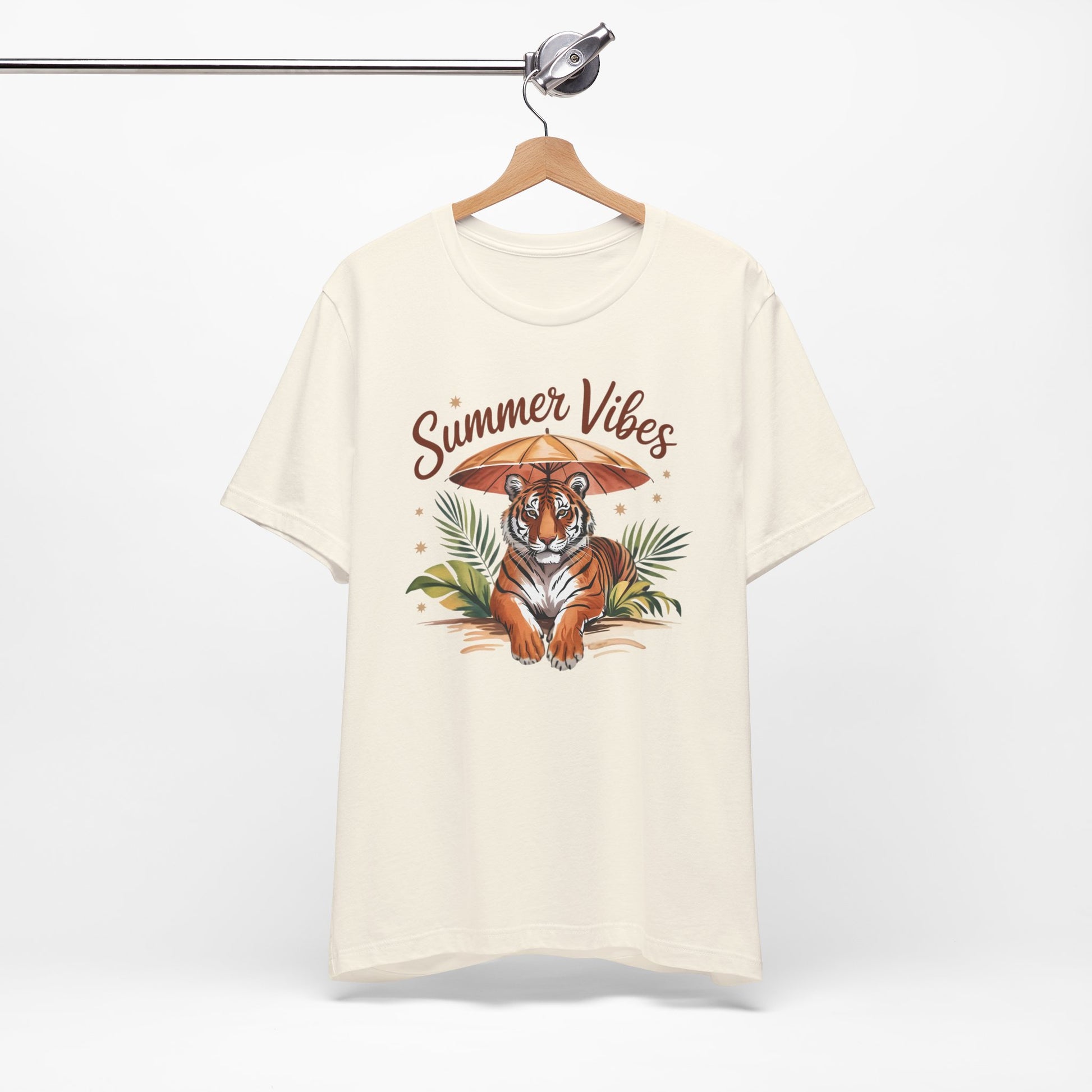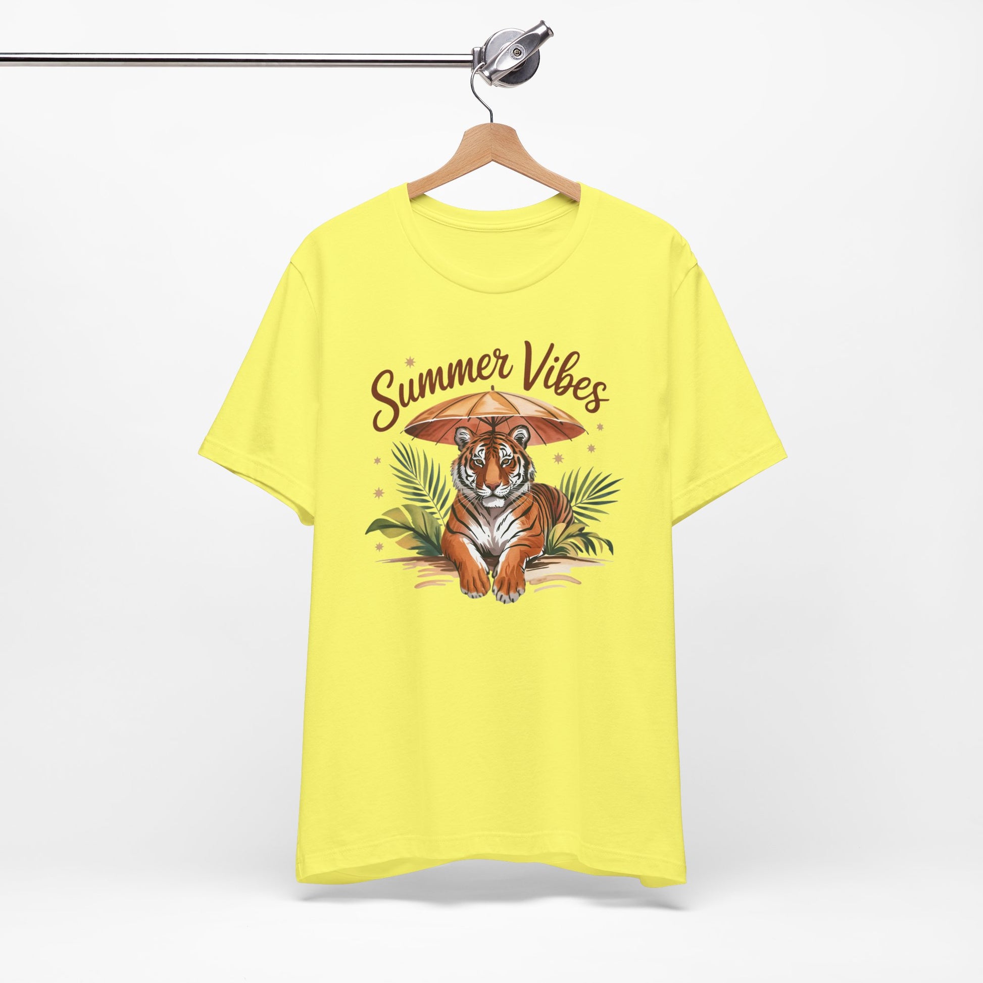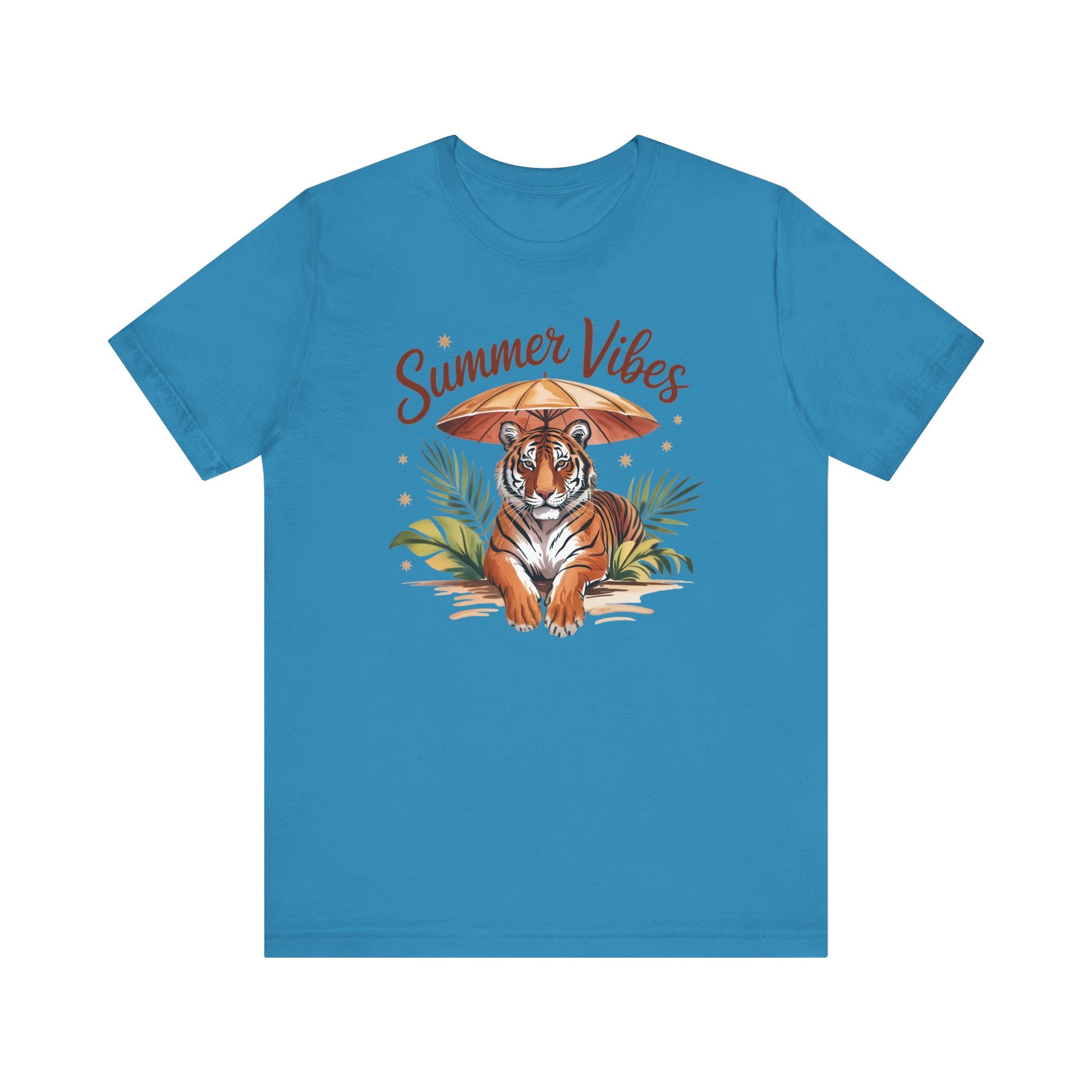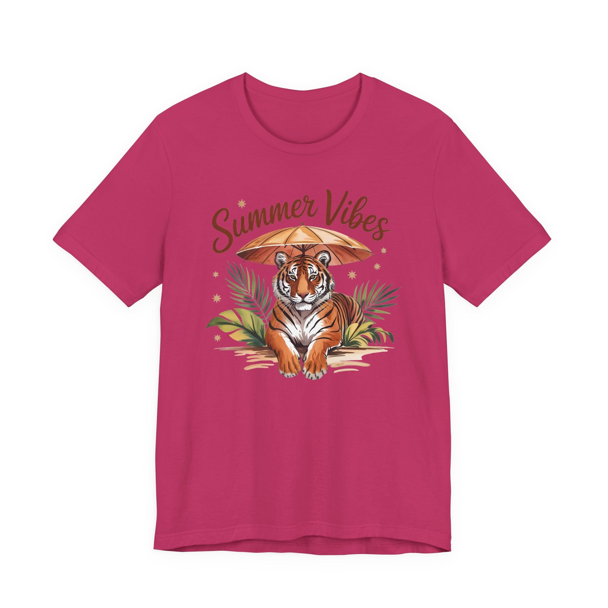 Camiseta Summer Vibes Tiger – Gráfico de palmeras de la selva con paraguas | Múltiples opciones de color