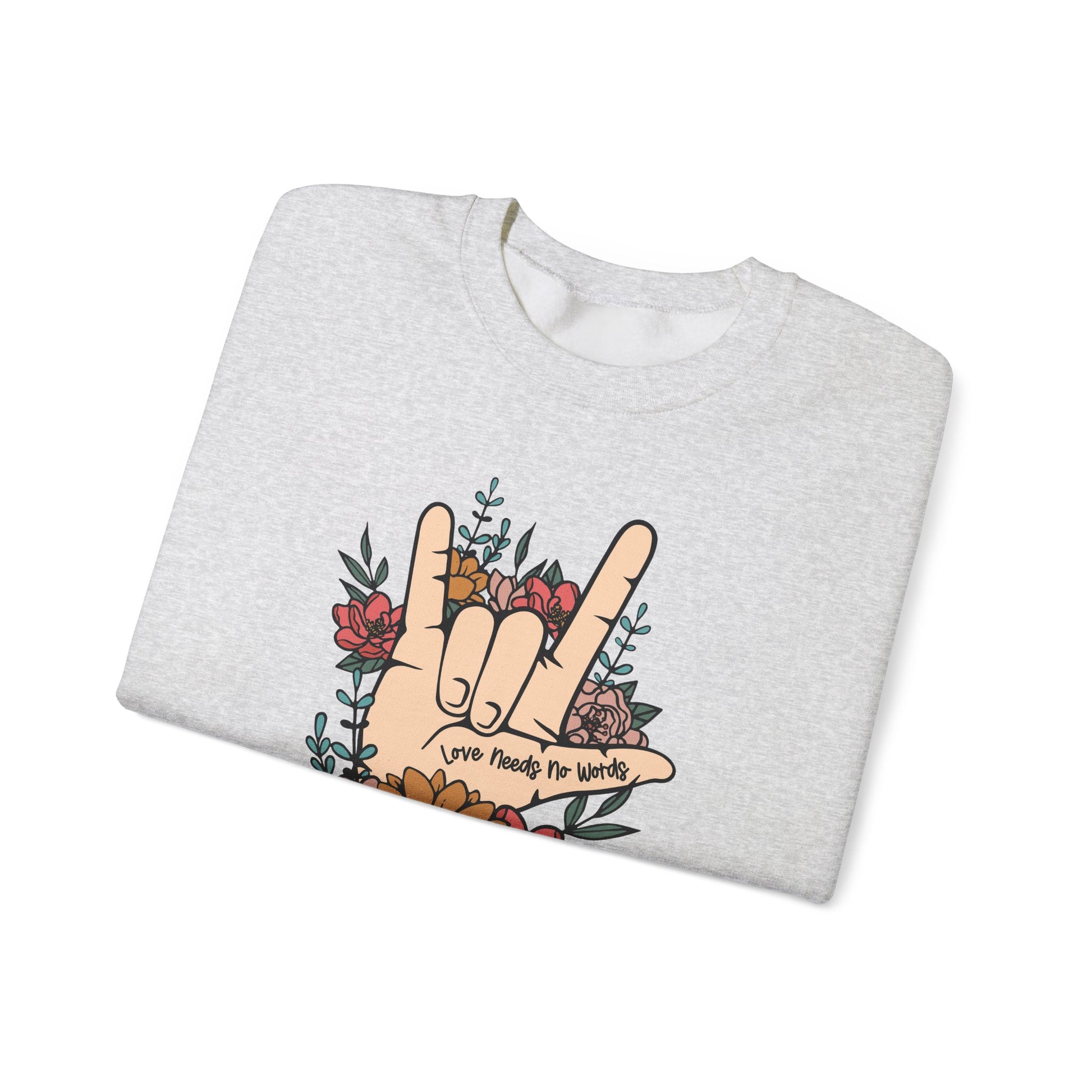 Celebrate the holidays with warmth, love, and inclusivity in this festive “Love Needs No Words” sweatshirt. Featuring the iconic ASL I Love You hand sign surrounded by a floral design, this sweatshirt brings a heartfelt message that’s perfect for the season of giving. Cozy, stylish, and meaningful, it’s the perfect way to spread joy and awareness while staying comfortable. Whether you’re gifting it for Christmas, wearing it to holiday gatherings, or enjoying a quiet evening by the fire, this piece blends seasonal charm with everyday comfort.