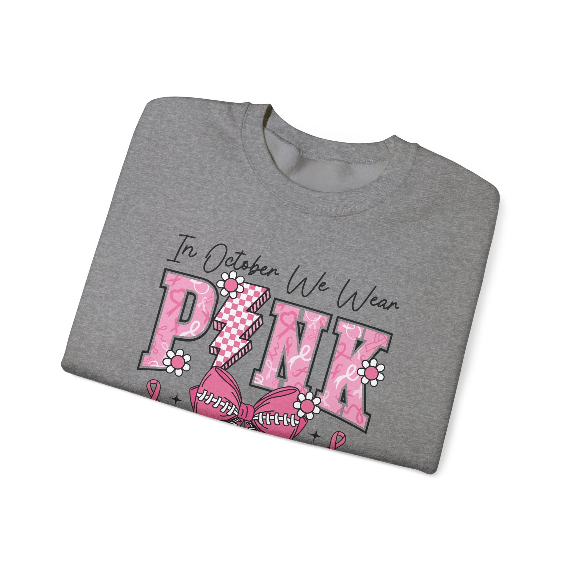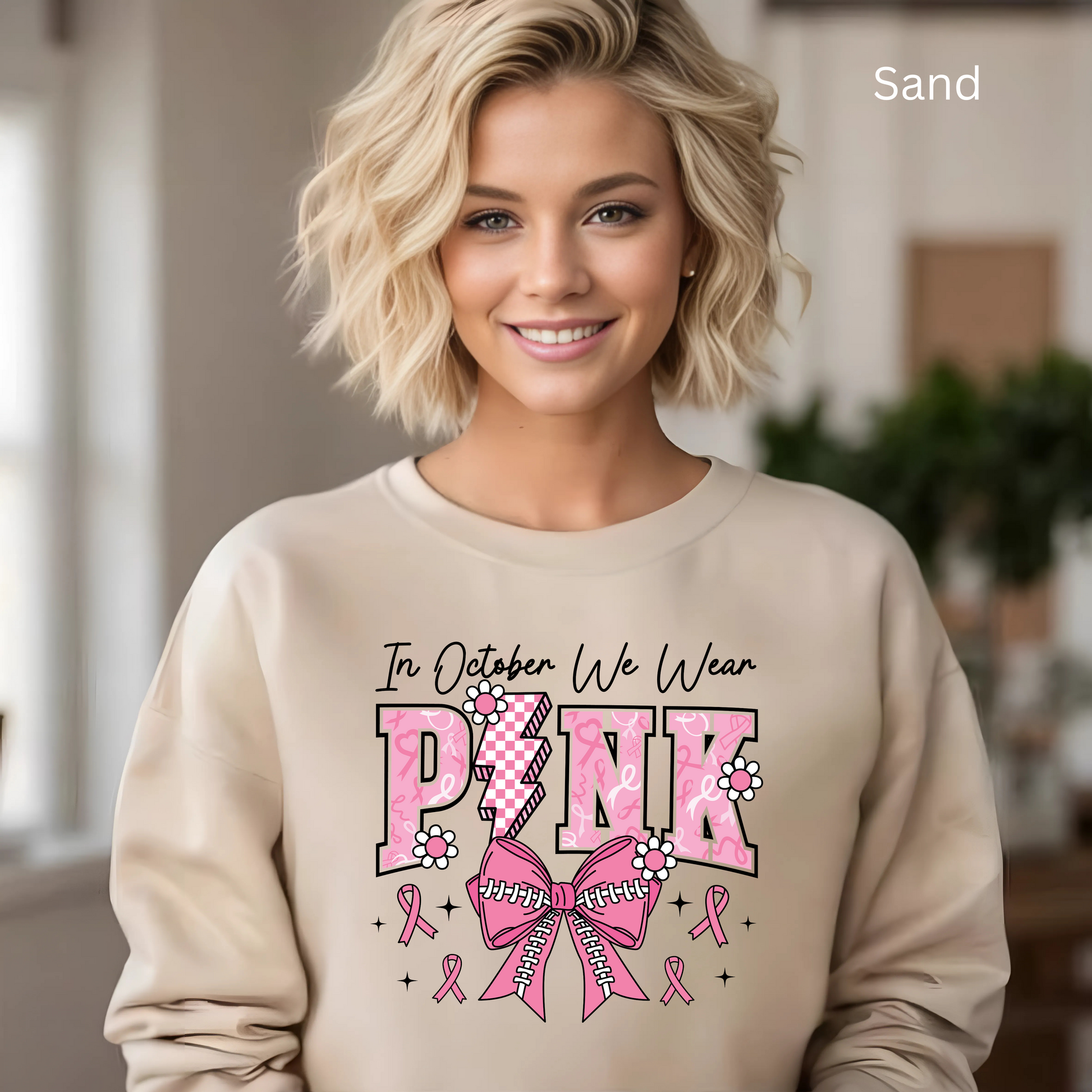 Show strength, spirit, and support with this bold โPINKโ sweatshirt! Featuring a powerful lightning bolt, daisy accents, and a cheer bow with football stitching, this sweatshirt blends fashion and awareness in one empowering design. Perfect for October Breast Cancer Awareness events, school pink-out days, and anyone who wants to make a stylish statement of encouragement. Cozy, soft, and inspiringโthis sweatshirt helps you spread awareness in comfort and confidence.