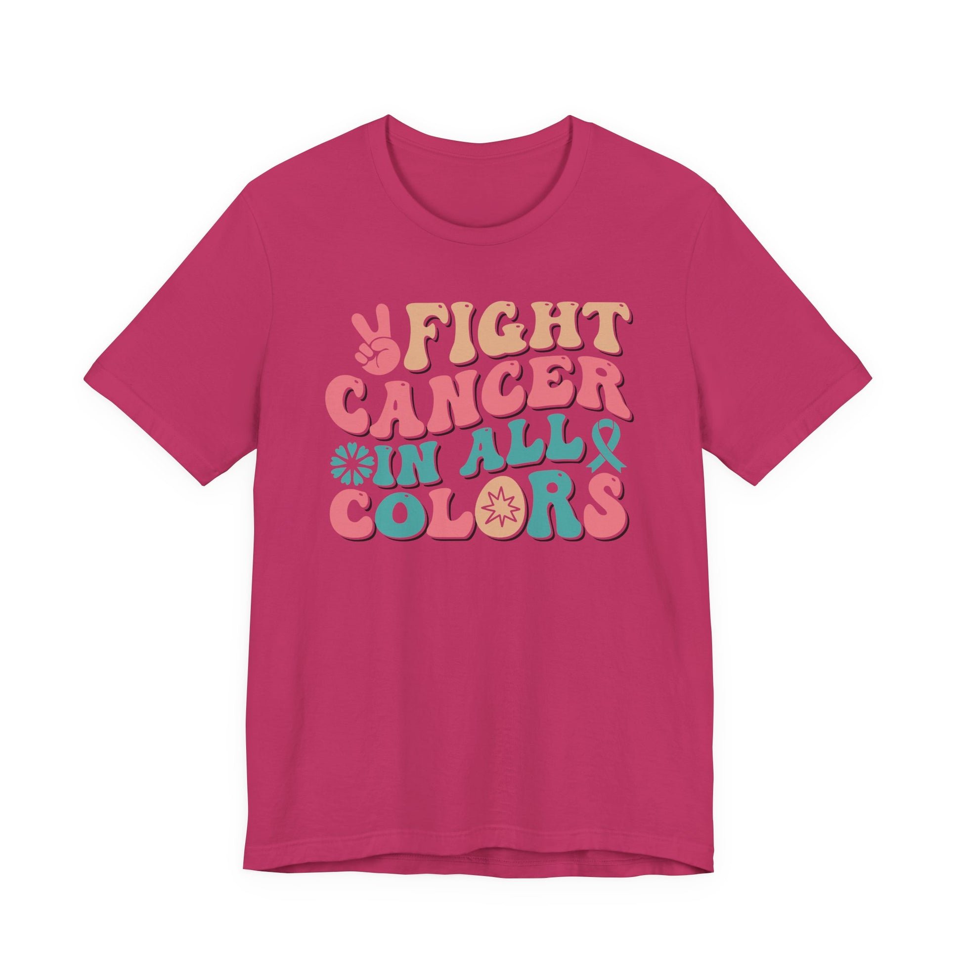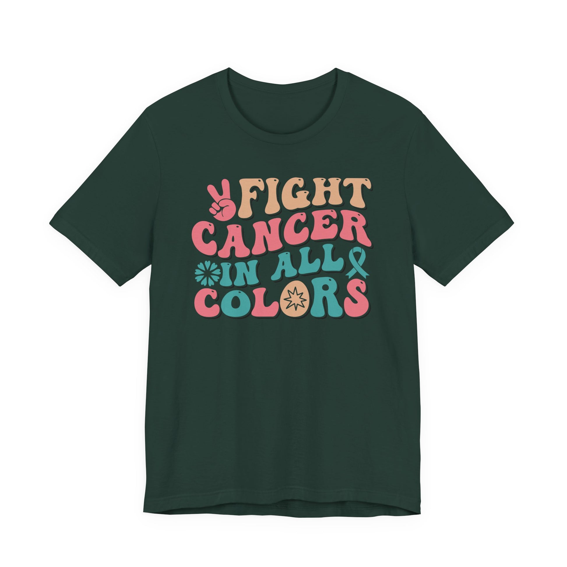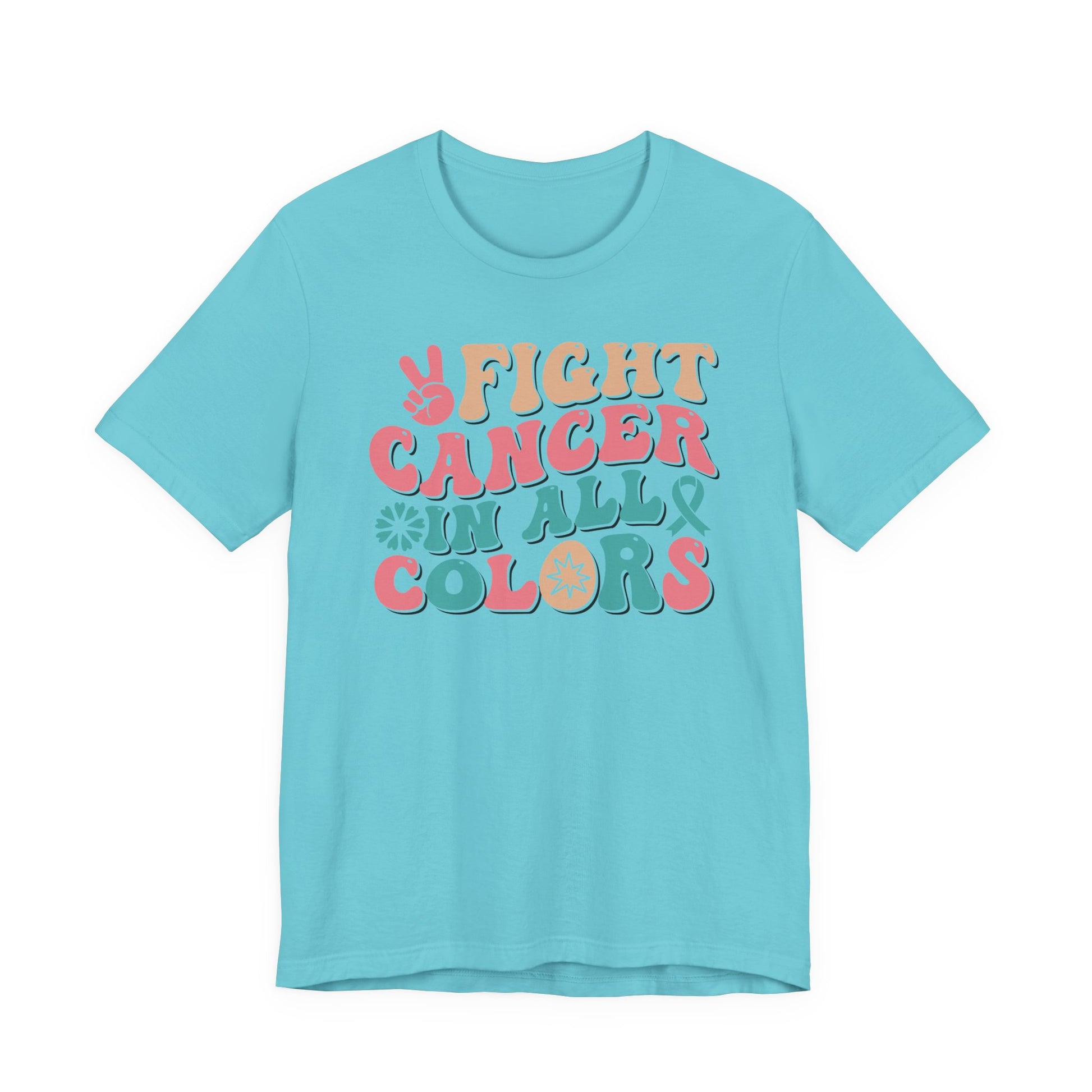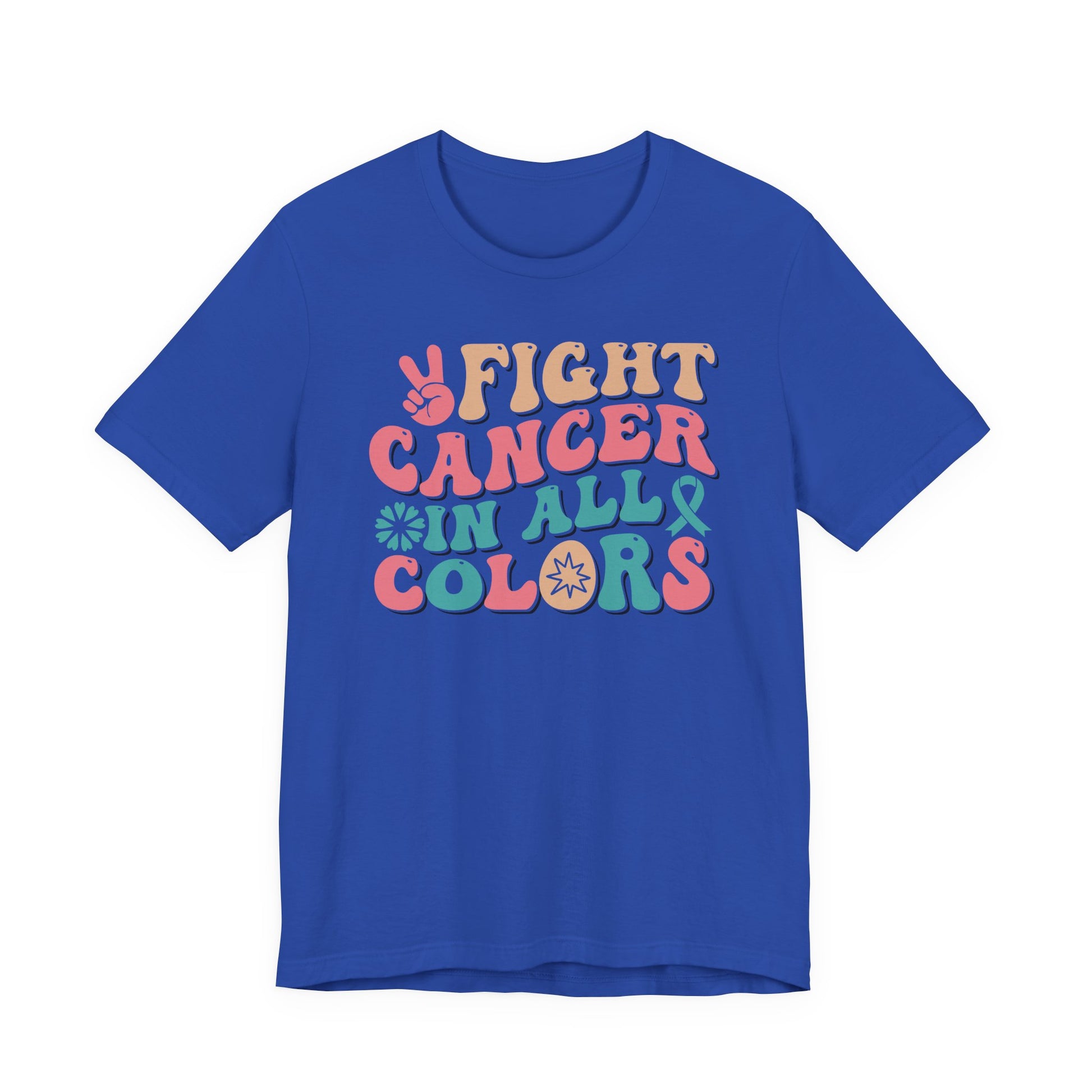 Celebrate strength, unity, and hope with this โFight Cancer in All Colorsโ T-shirt! Featuring bold retro lettering and vibrant hues, this empowering tee honors awareness for all cancers and ribbons. Perfect for survivors, fighters, supporters, and advocates, this shirt is a strong reminder that no matter the color of the ribbon, the fight is shared together.
