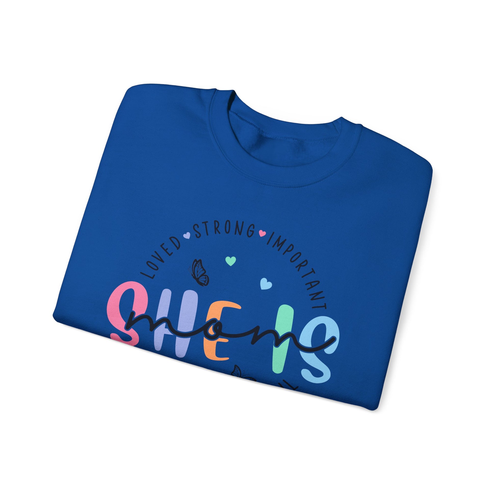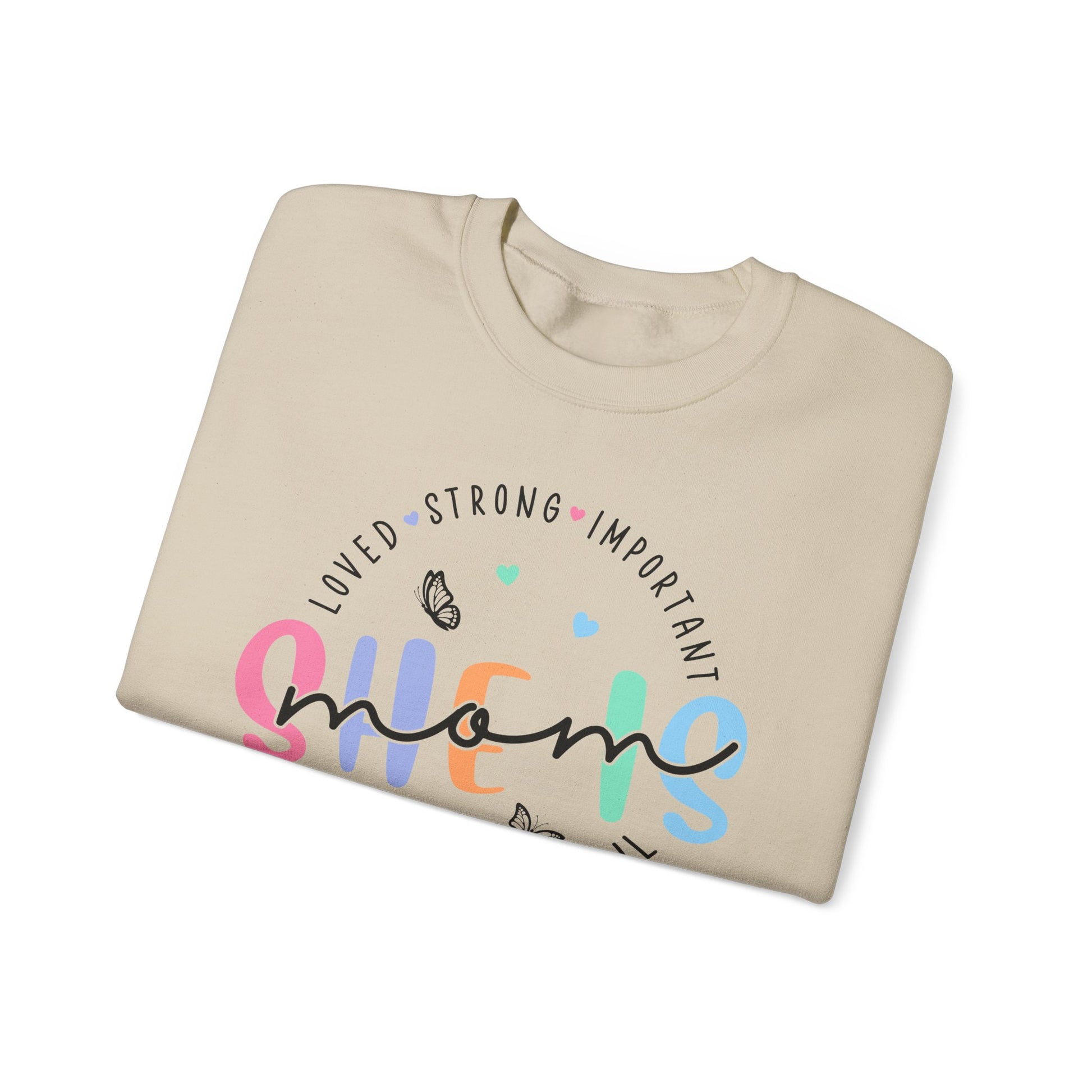 ๐ŸŒธโœจ She Is Mom Sweatshirt โ€“ Strong, Loved, Beautiful & Worthy ๐Ÿฆ‹๐Ÿ’–