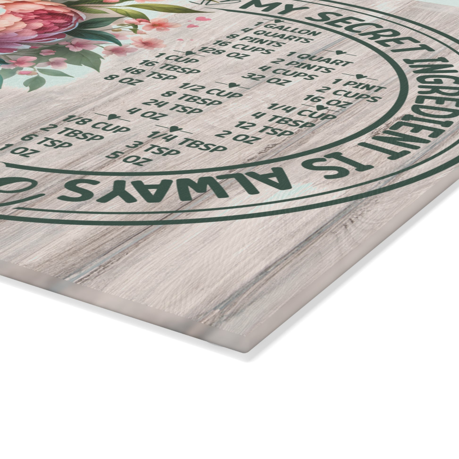 My Secret Ingredient Is Always Love Glass Cutting Board – Floral Kitchen Conversion Chart