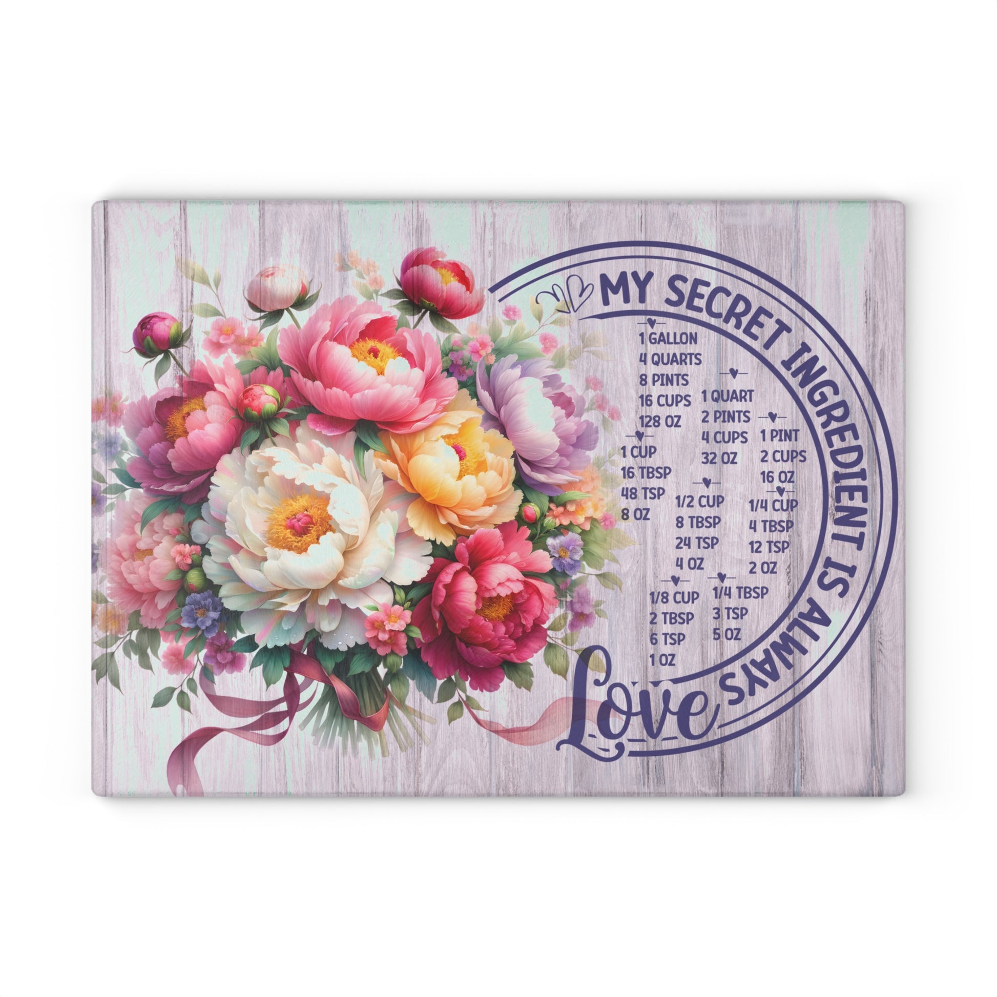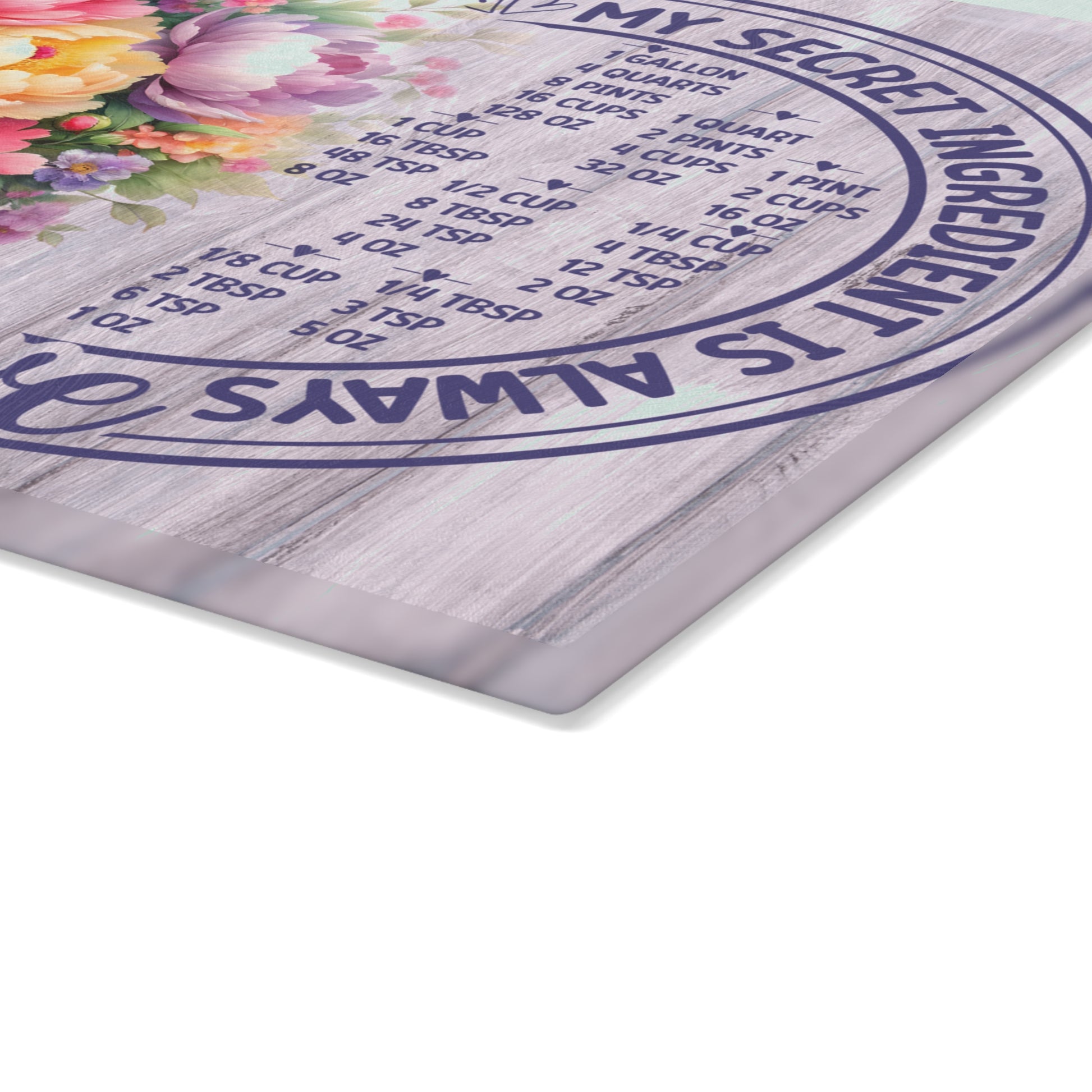 My Secret Ingredient Is Always Love Glass Cutting Board – Floral Kitchen Conversion Chart