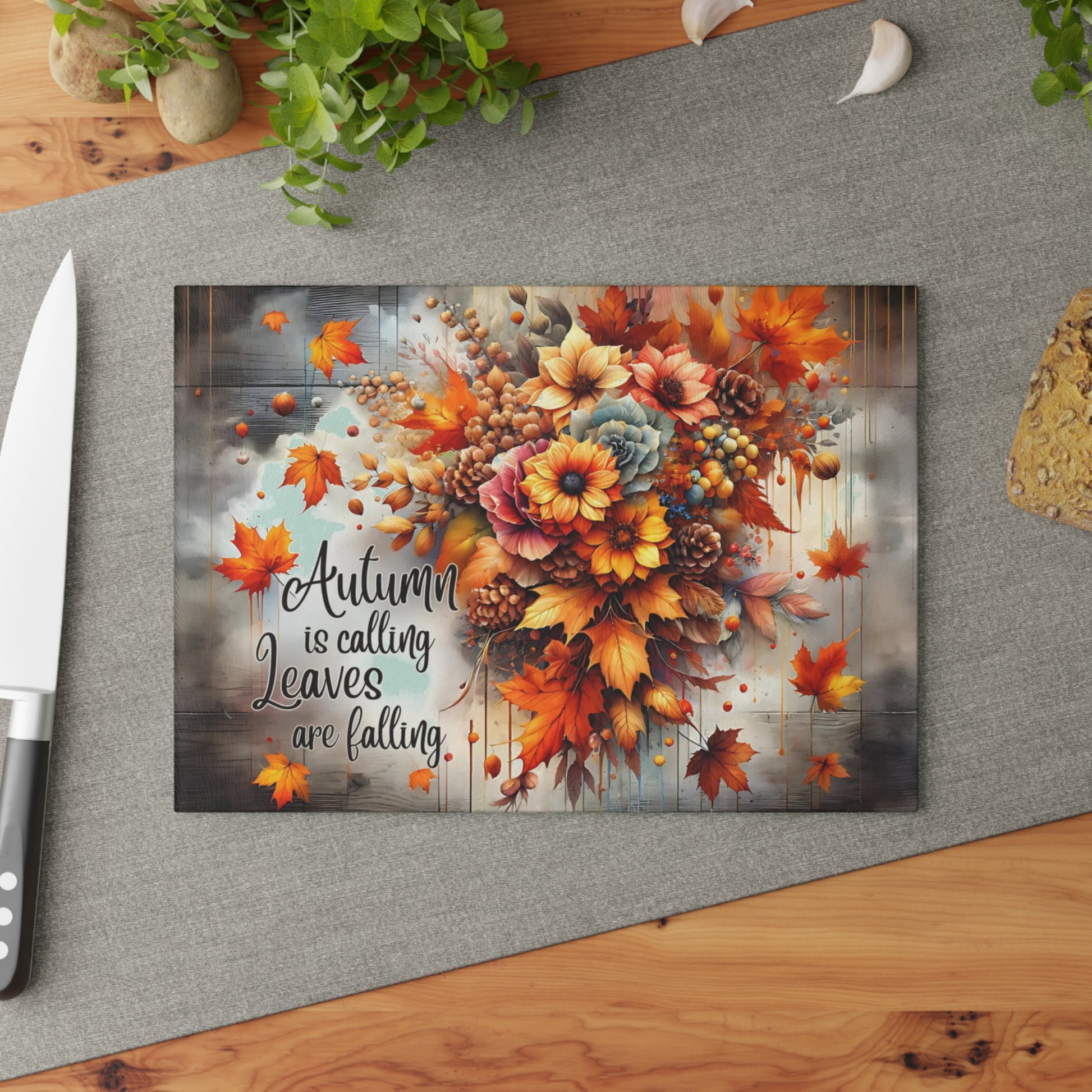 🍂✨ “Autumn Is Calling” Glass Cutting Board – Cozy Fall Kitchen Accent