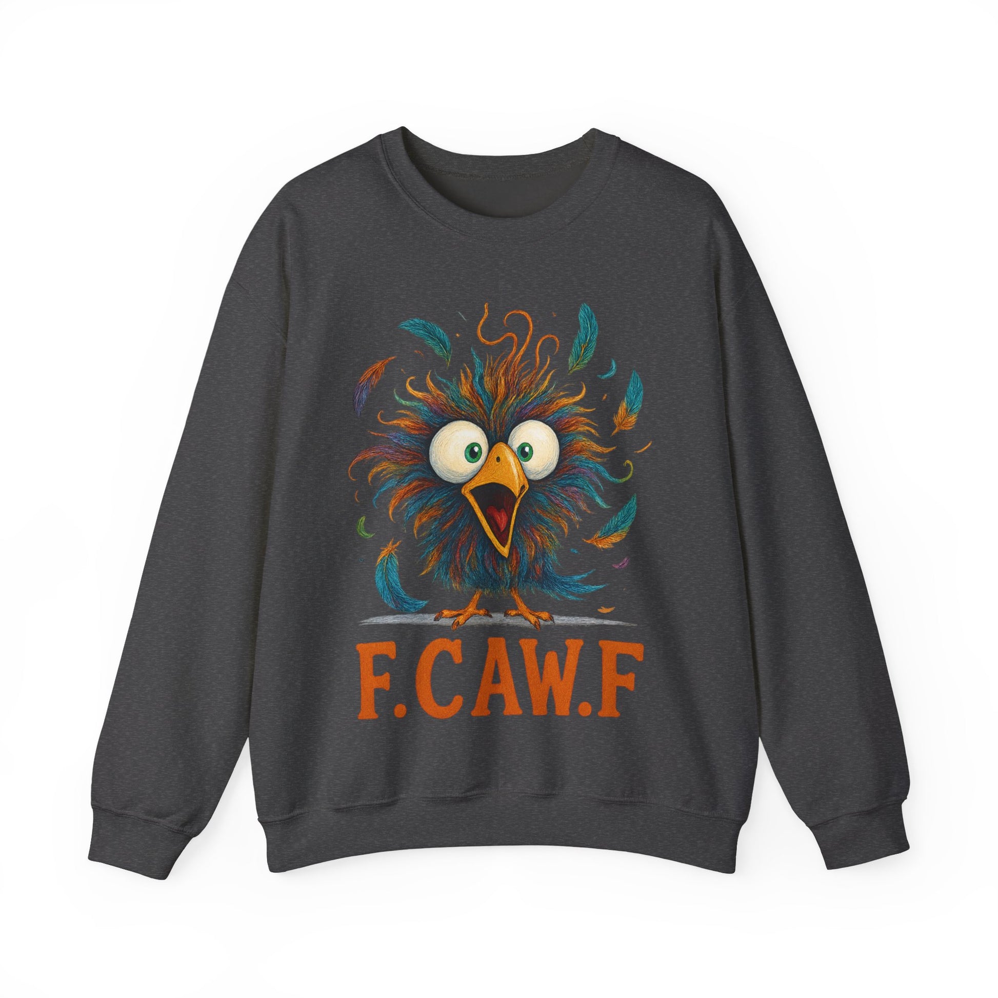Bring the giggles with this chaotic little floof! Our F.CAW.F bird design features a wide-eyed, feather-flying character thatโ€™s perfect for anyone who lives for sarcasm, small-town humor, and playful puns. Cozy, soft, and built for everyday wear, this unisex crewneck is the go-to pullover for coffee runs, craft fairs, game nights, and โ€œdid-that-bird-just-say-what?โ€ moments.