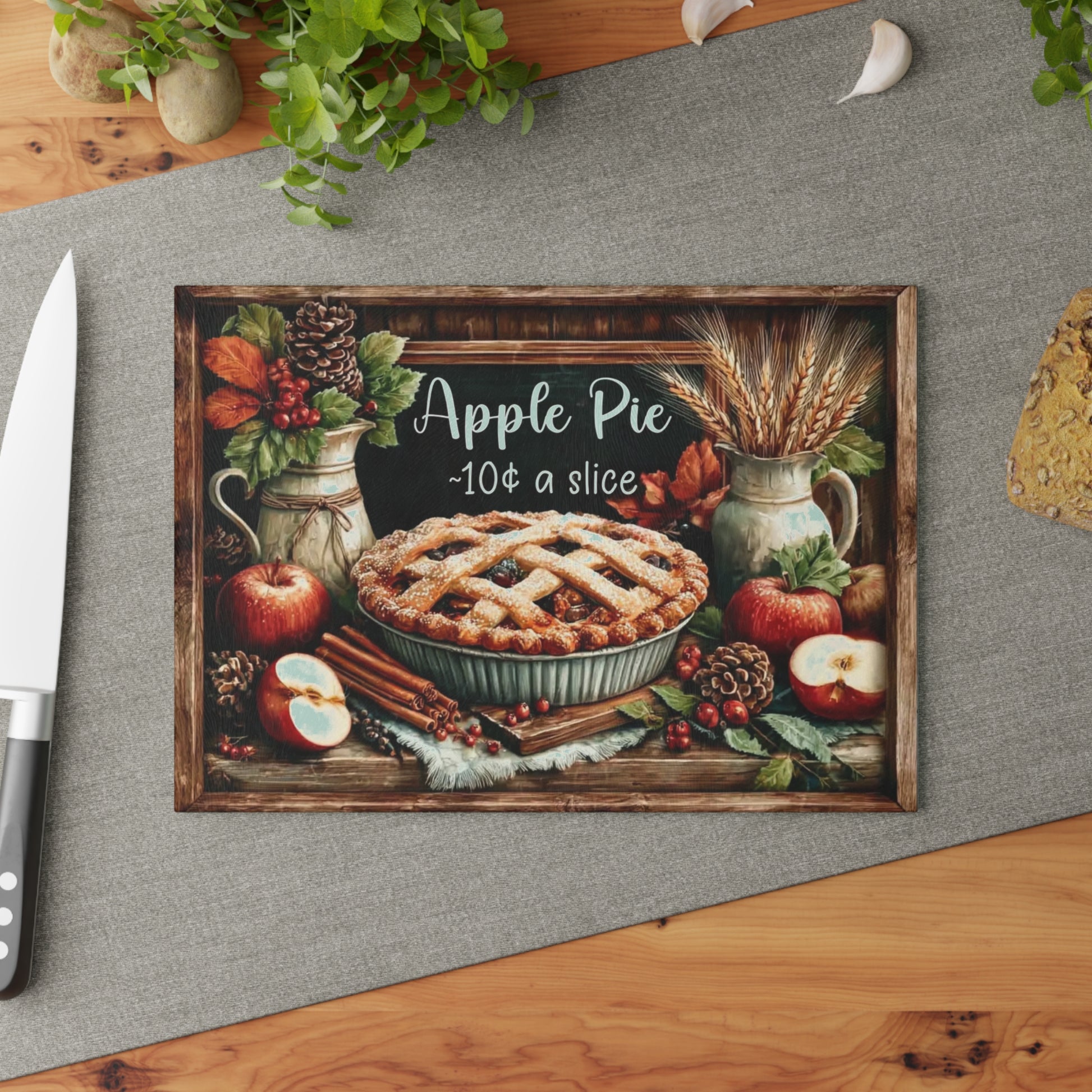 🥧🍎 “Apple Pie – 10¢ a Slice” Tempered Glass Board – Vintage Bakery Charm