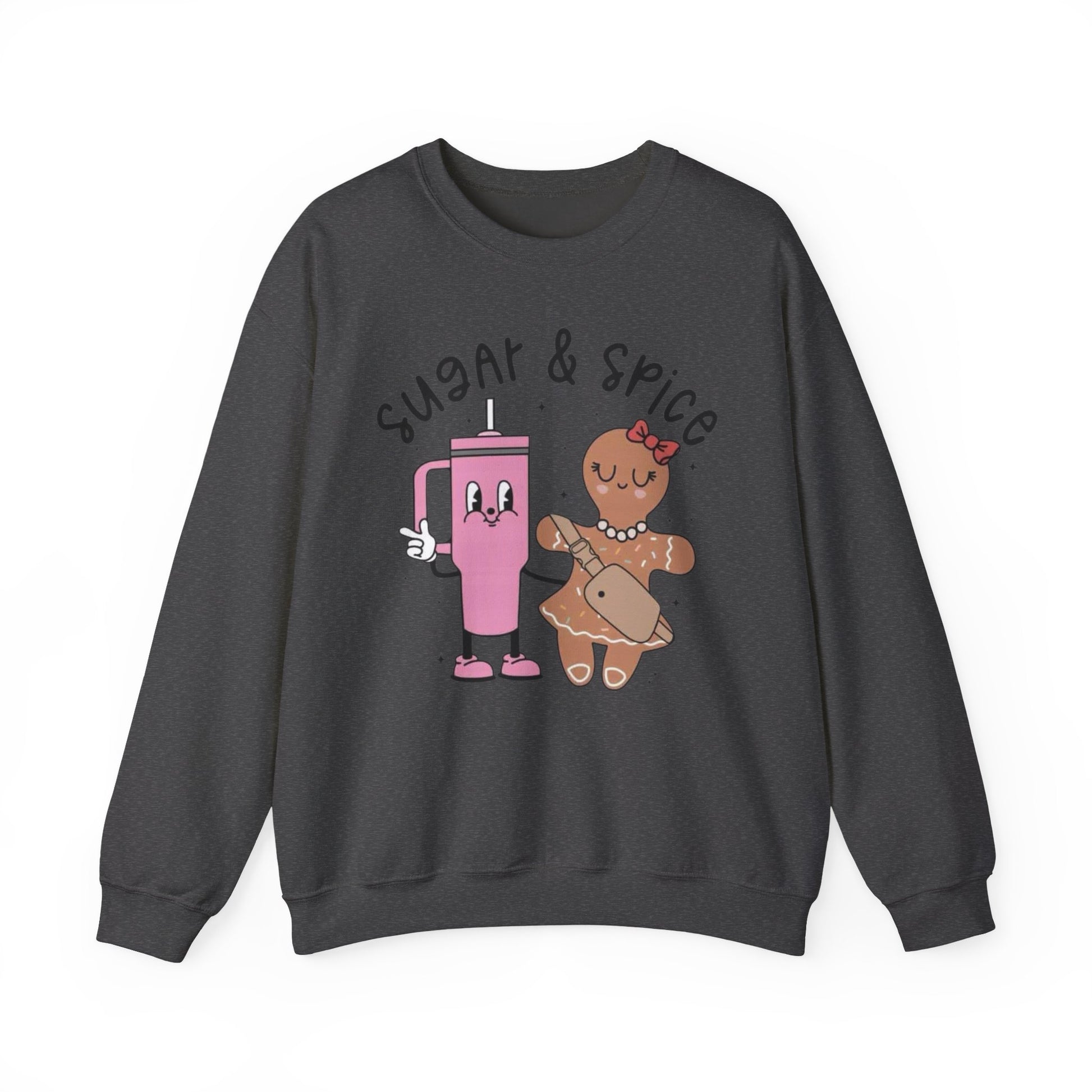 Bring a little extra sweetness to the season with our โSugar & Spiceโ sweatshirt! Featuring an adorable gingerbread character and a cheerful pink tumbler buddy, this cozy design celebrates friendship, warmth, and holiday joy. Perfect for Christmas parties, cocoa nights, cookie baking, and everything in between, itโs a soft and comfy statement piece that spreads smiles all winter long.