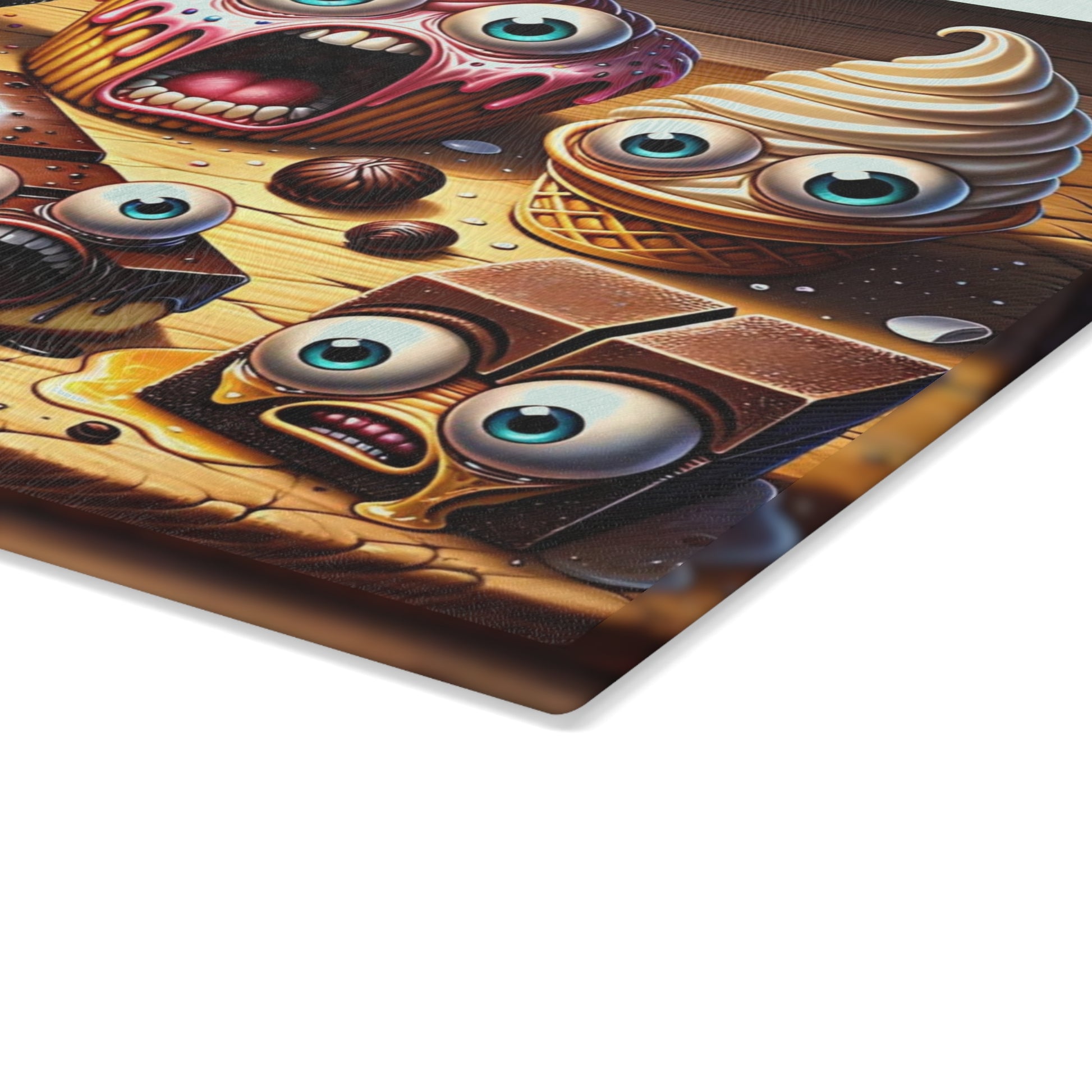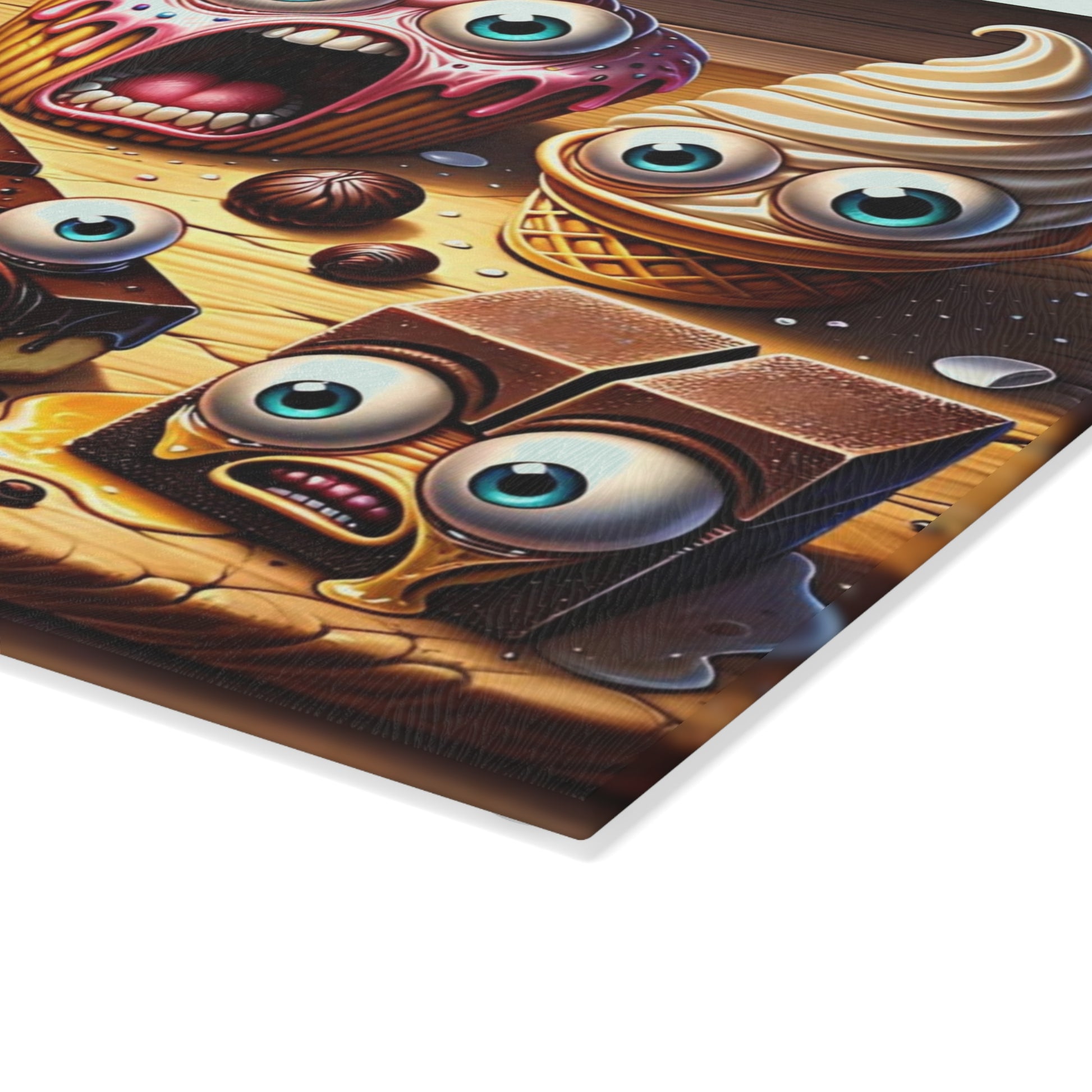 Add a bold touch of personality to your kitchen with this playful “Sweet Squad Shenanigans” glass cutting board! A cupcake, soft-serve cone, brownie bar, citrus slice, and chocolate squares all make the silliest faces—pure color, humor, and candy-shop chaos. It’s perfect for anyone who loves whimsical décor and a countertop piece that always starts a conversation.