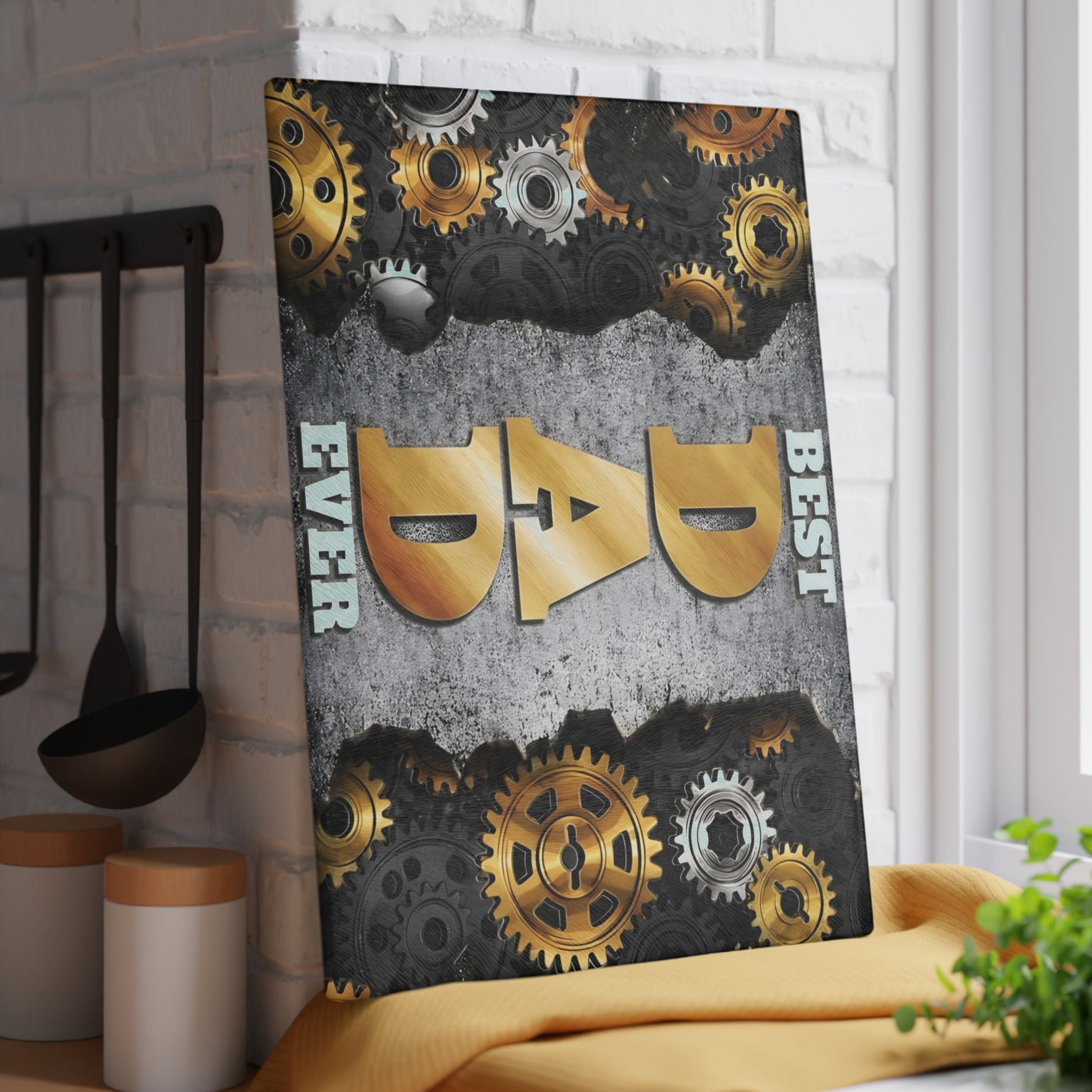 BEST DAD EVER Glass Cutting Board – Industrial Gear Design