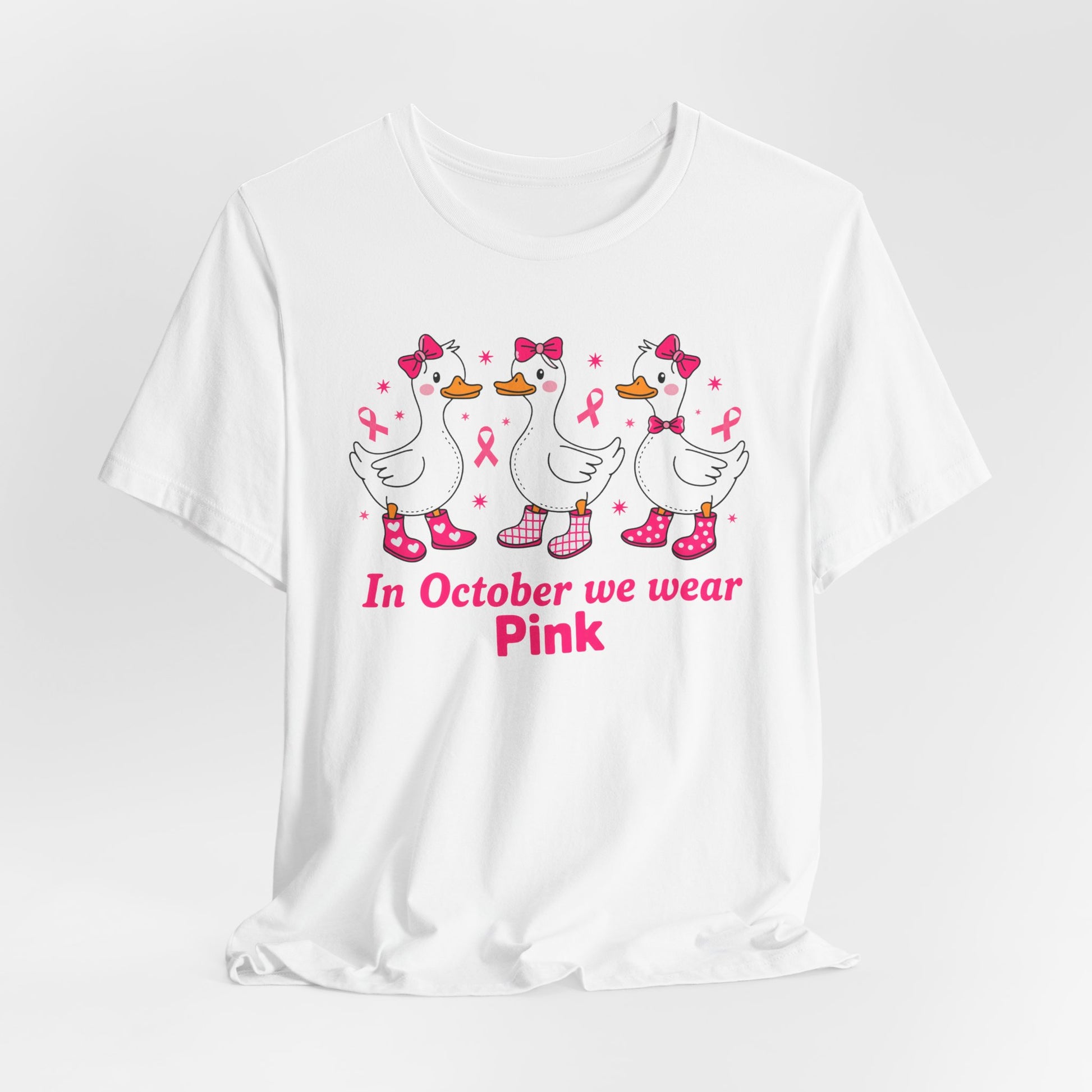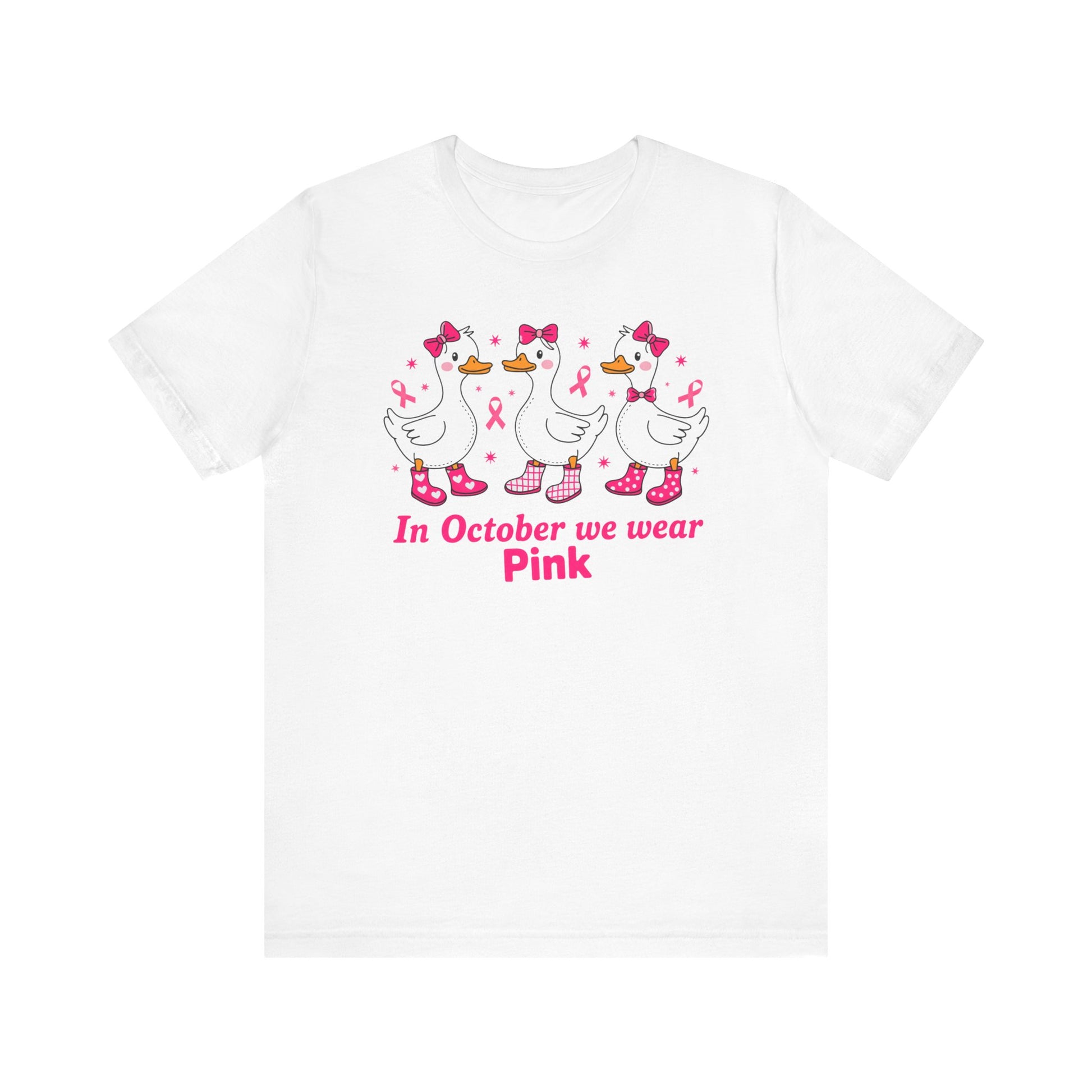 ๐๐ฆ In October We Wear Pink Duck Boots T-Shirt โ Breast Cancer Awareness Tee ๐โจ