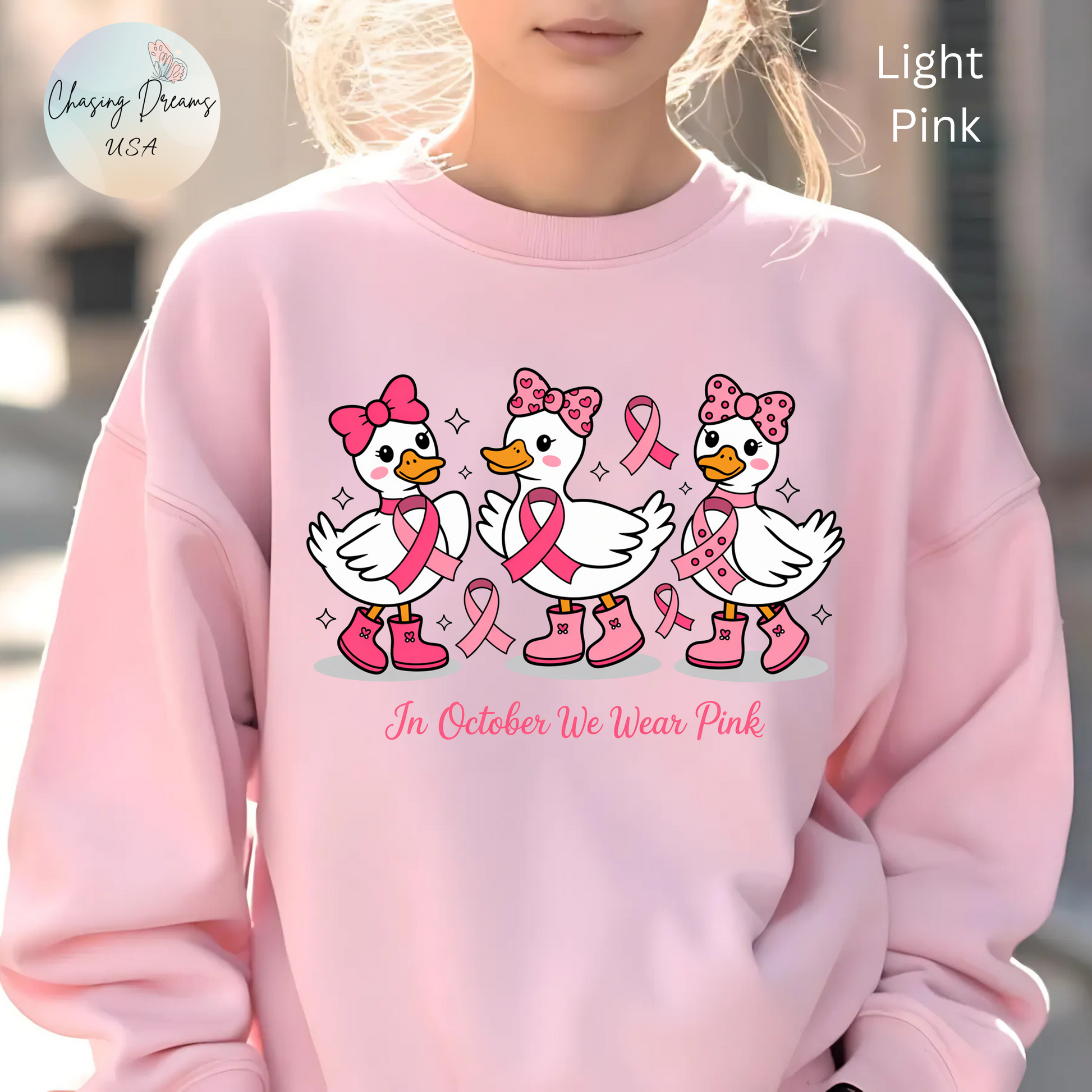๐๐ฆ In October We Wear Pink Duck Sweatshirt โ Cute & Courageous Support ๐
