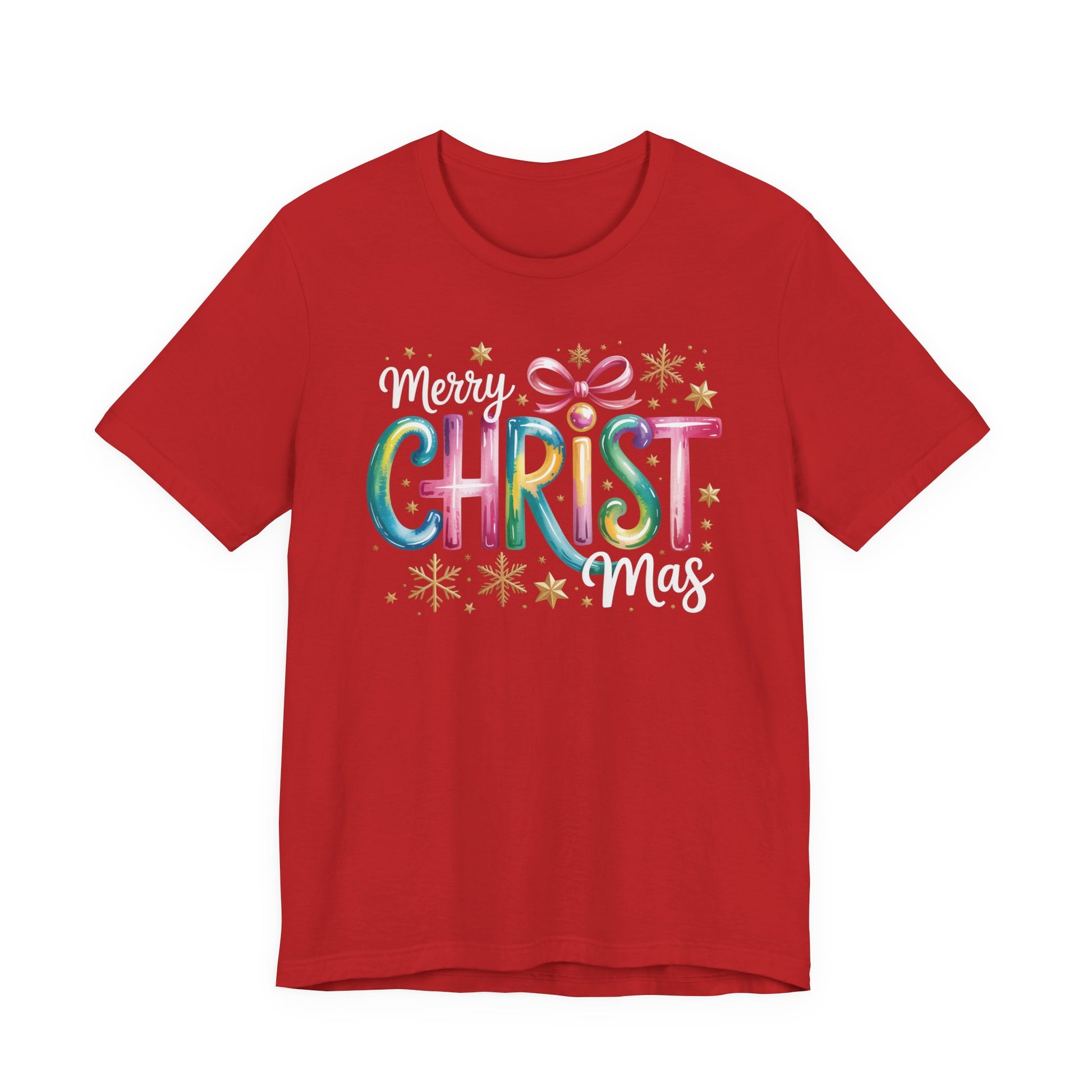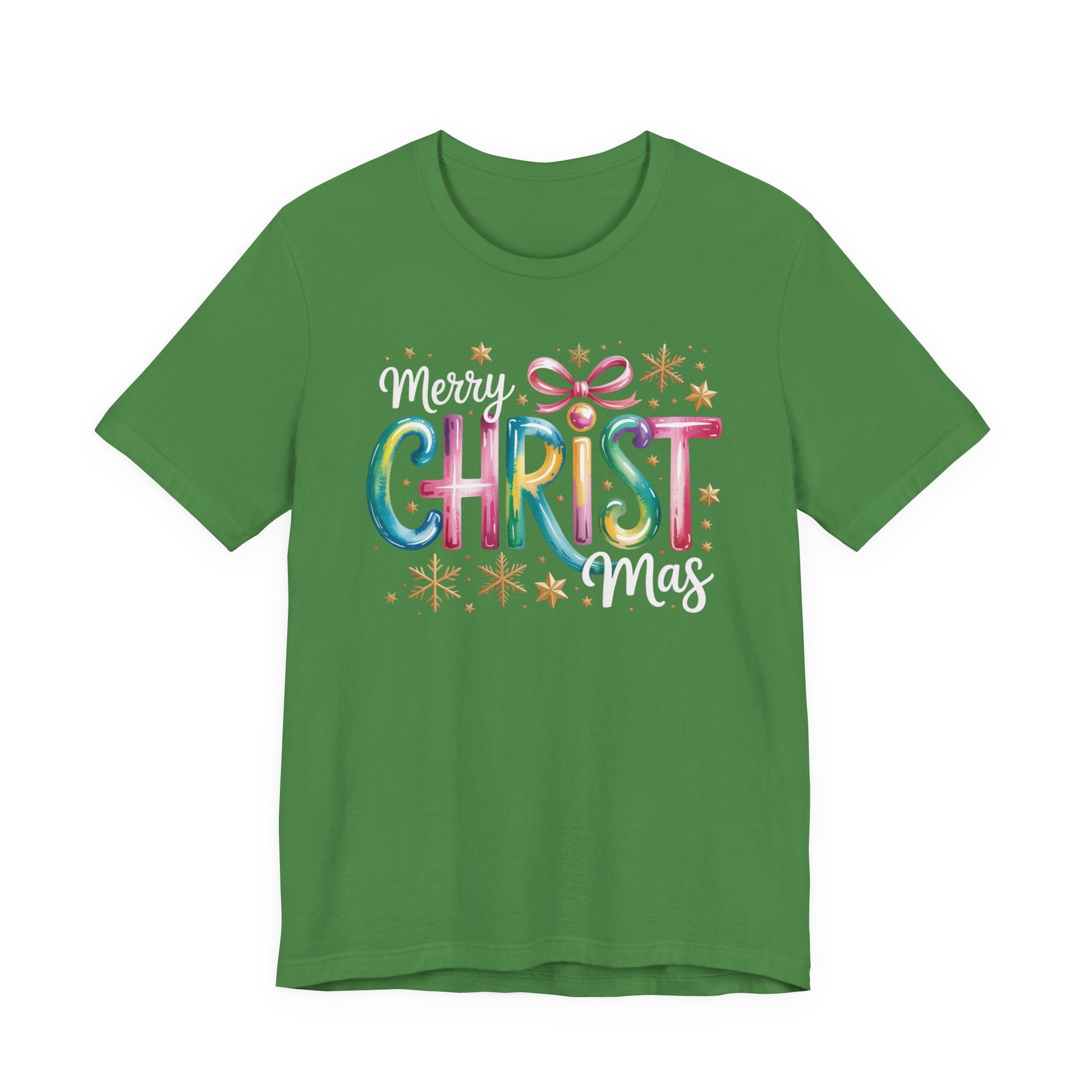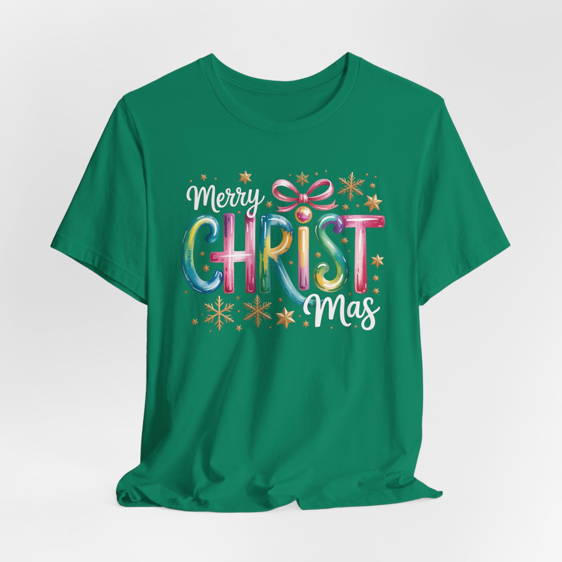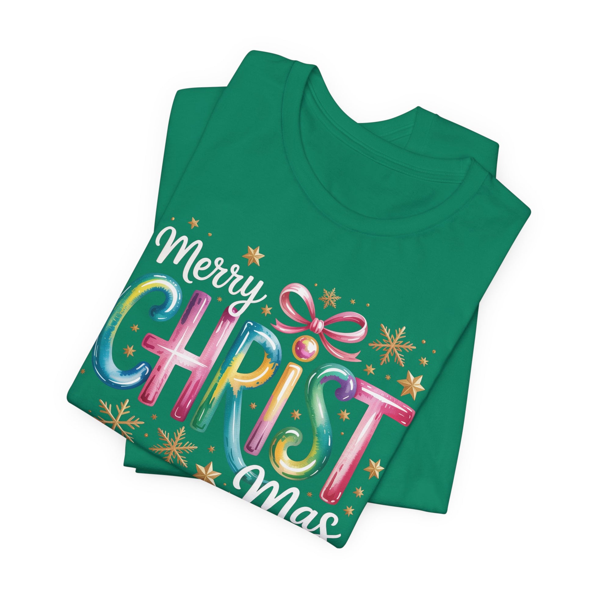 Celebrate the holiday season in style with our Merry Christmas Glow Lettering T-Shirt. Featuring vibrant rainbow-glow letters accented with festive details like bows and golden snowflakes, this unisex tee is the perfect mix of cozy and cheerful. Whether youโre decking the halls, attending a Christmas party, or matching with family for holiday photos, this shirt shines with holiday spirit.