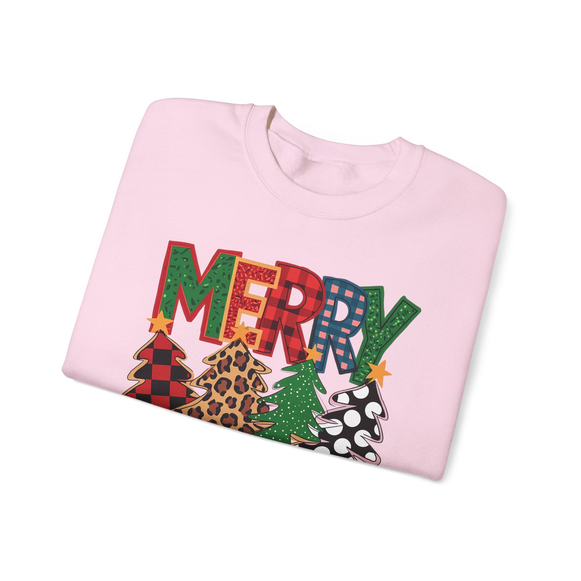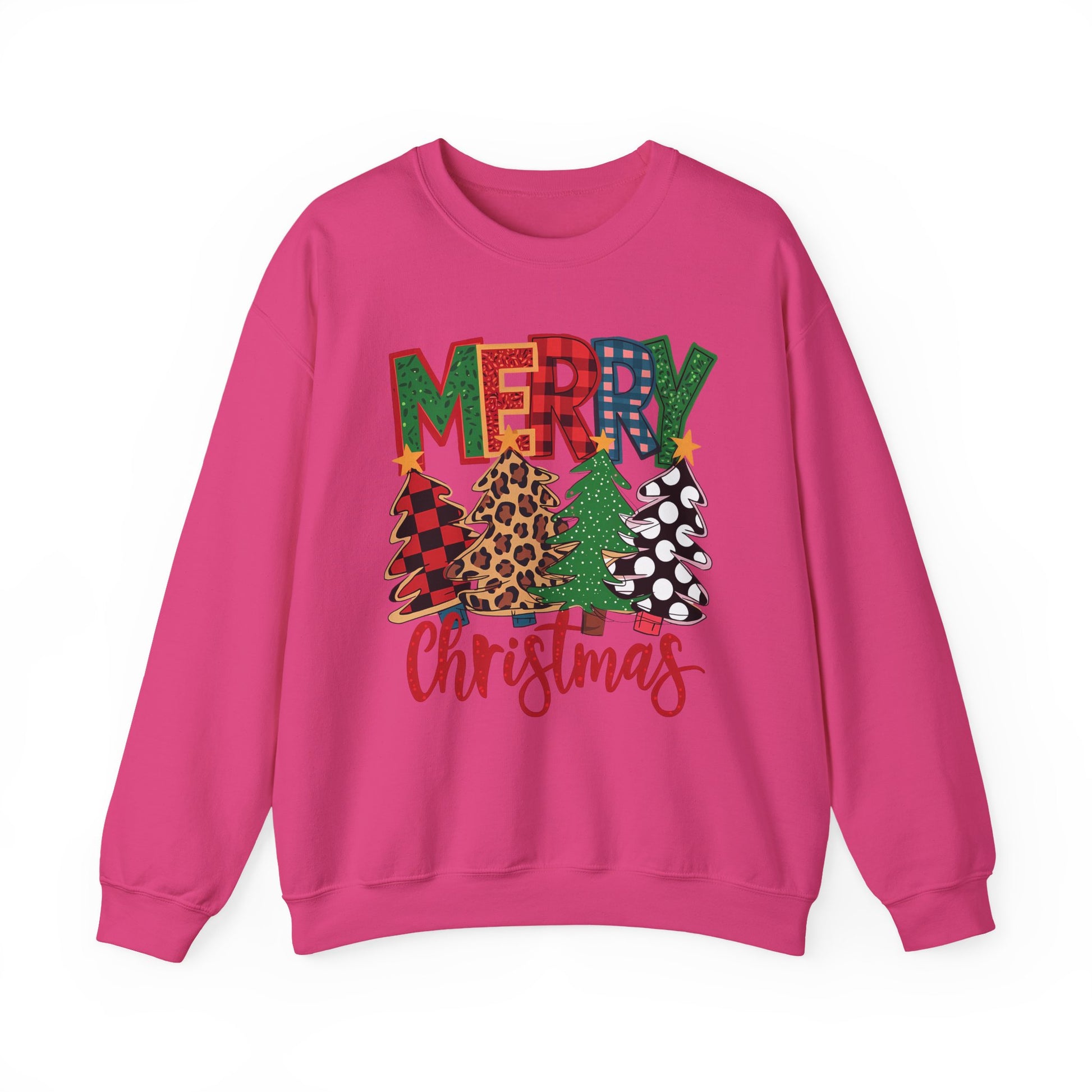 ๐โจ Merry Christmas Trees Sweatshirt โ Bold Patterns & Festive Cheer