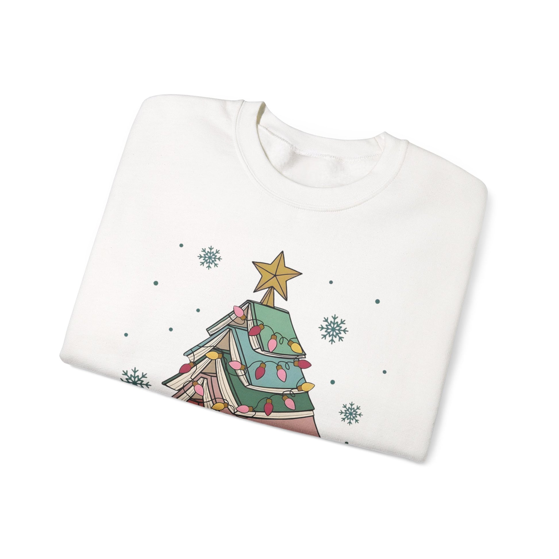 Celebrate the season with a festive twist made just for book lovers! This cozy sweatshirt features a whimsical stack of pastel books arranged like a Christmas tree, topped with a golden star and wrapped in colorful lights. Itโs a warm, playful way to show your love for reading while staying stylish and comfy all season long. Whether youโre curled up with a good book, attending a holiday party, or gifting your favorite reader, this soft and cozy top is a must-have winter essential.