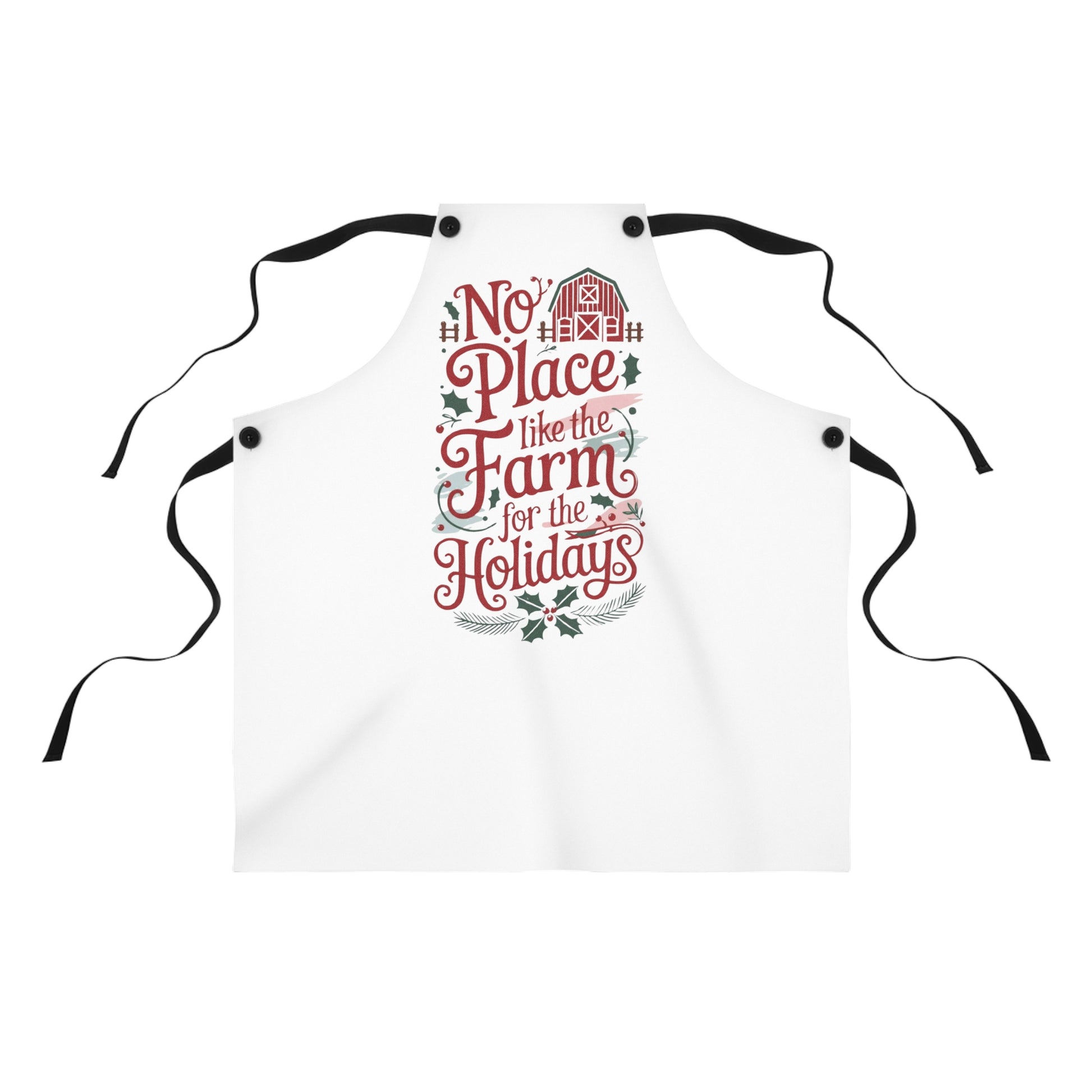 Bring small-town cheer to the kitchen with this festive farmhouse apron! Featuring a classic red barn, holly accents, and warm country lettering, it keeps flour dust and cocoa splashes off your holiday outfit while you bake, baste, and celebrate all season long.