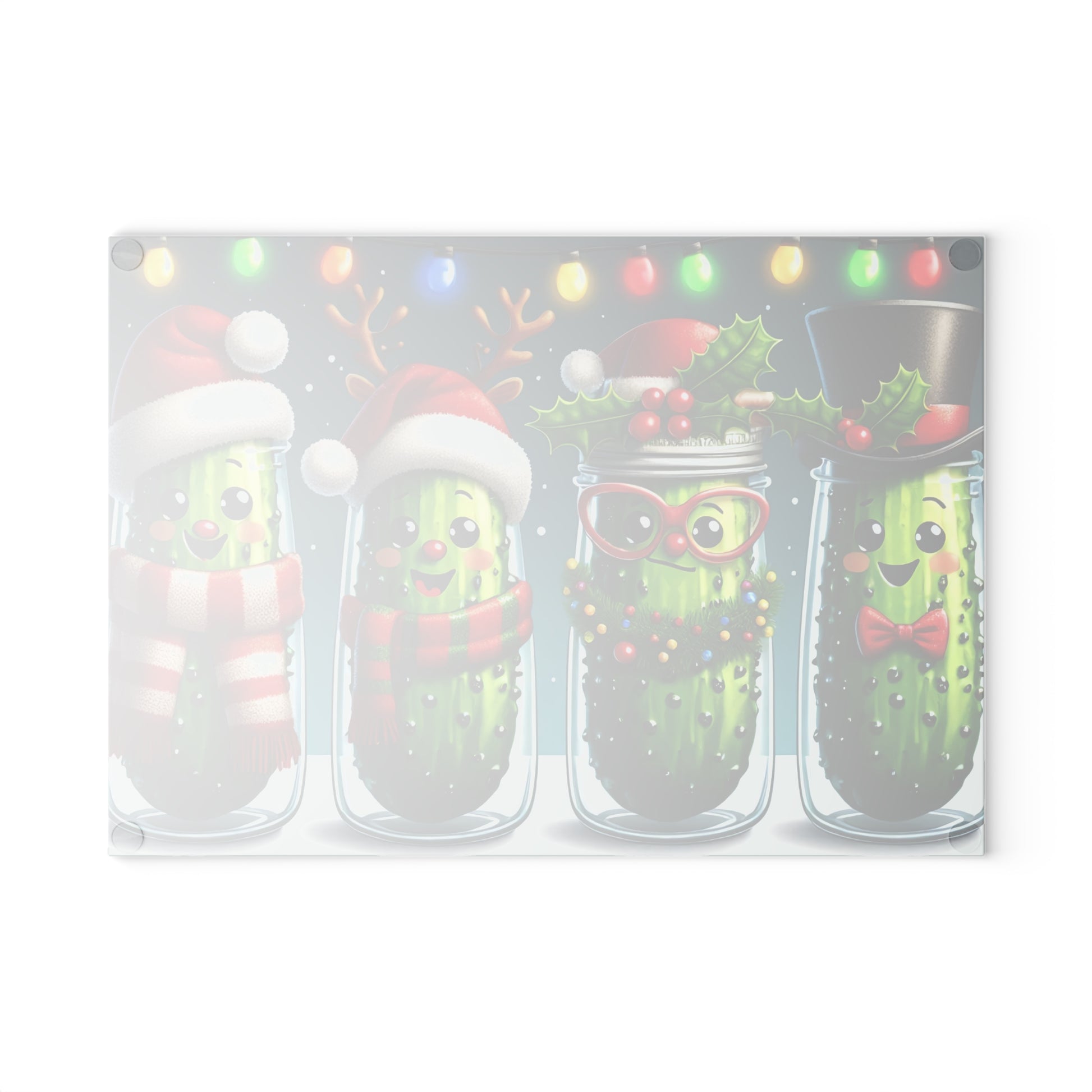 Add a dash of festive fun to your kitchen with this Christmas Pickles Cutting Board! Featuring adorable pickles dressed in Santa hats, scarves, reindeer antlers, and holiday lights, this tempered glass board is the perfect blend of whimsy and function. Whether youโ€™re prepping snacks, serving charcuterie, or simply displaying holiday cheer, itโ€™s a delightful addition to your seasonal dรฉcor.
