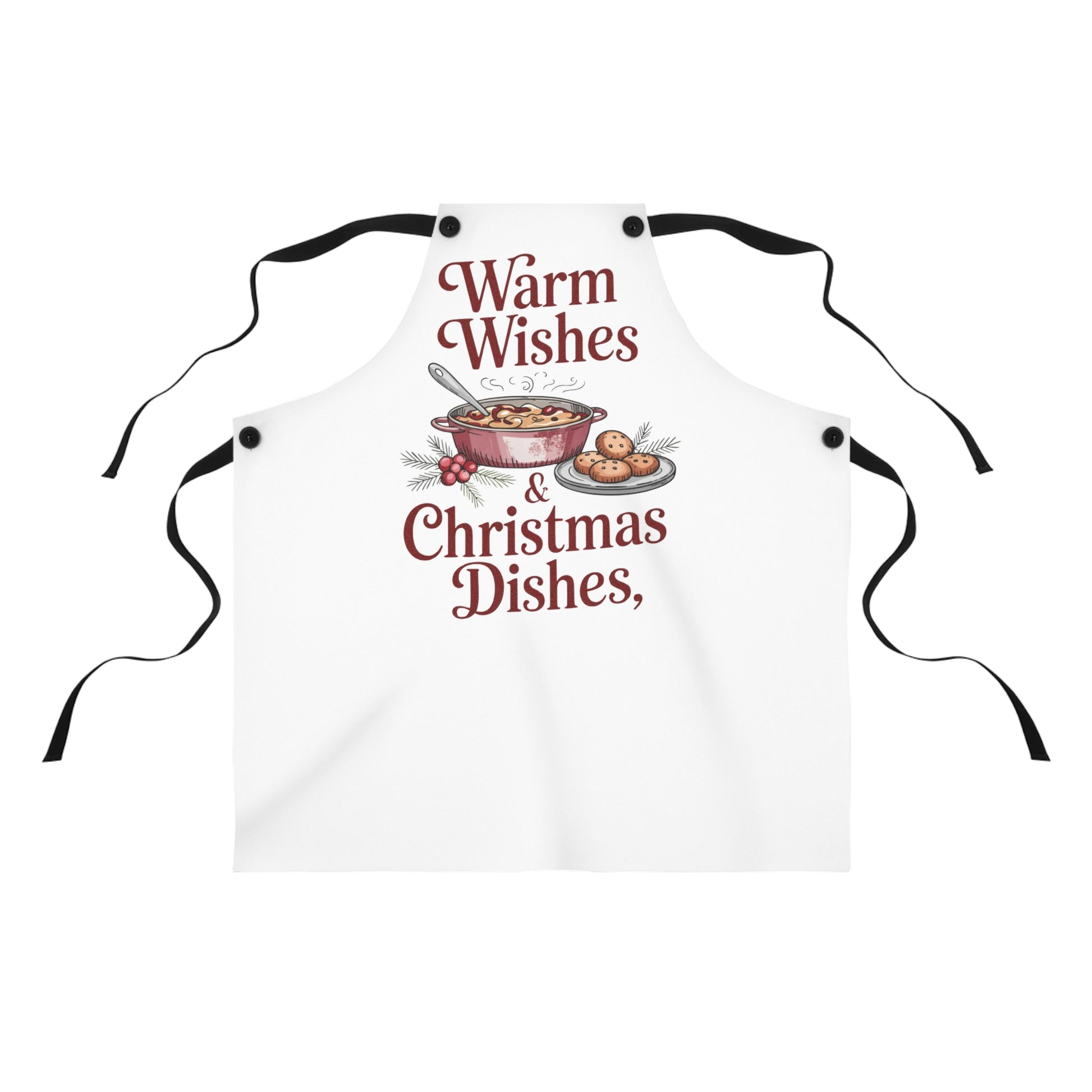 🥣🎄 Warm Wishes & Christmas Dishes Apron – Cozy Holiday Kitchen Helper