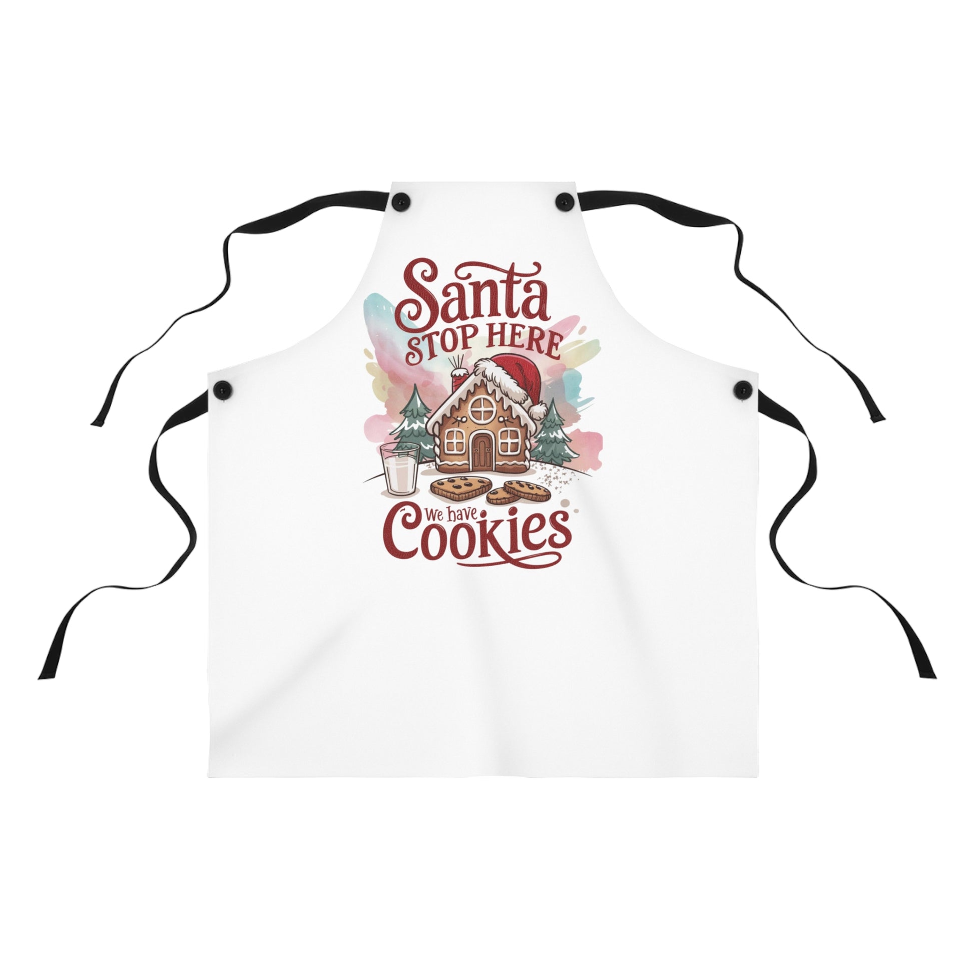 🎅🍪 “Santa, Stop Here—We Have Cookies!” Christmas Apron – Gingerbread Cottage Kitchen Cheer