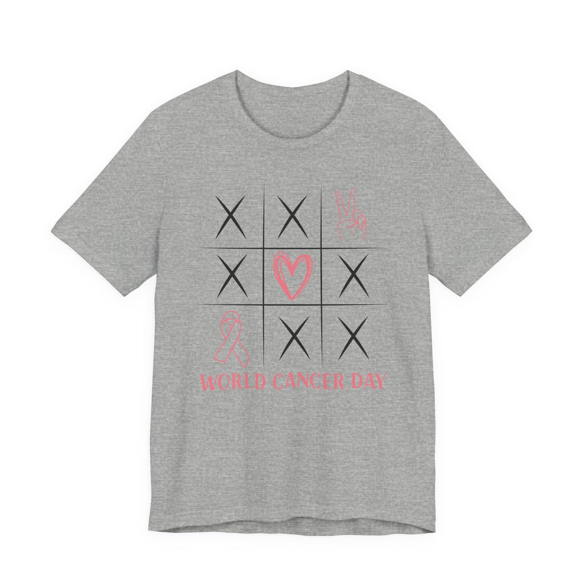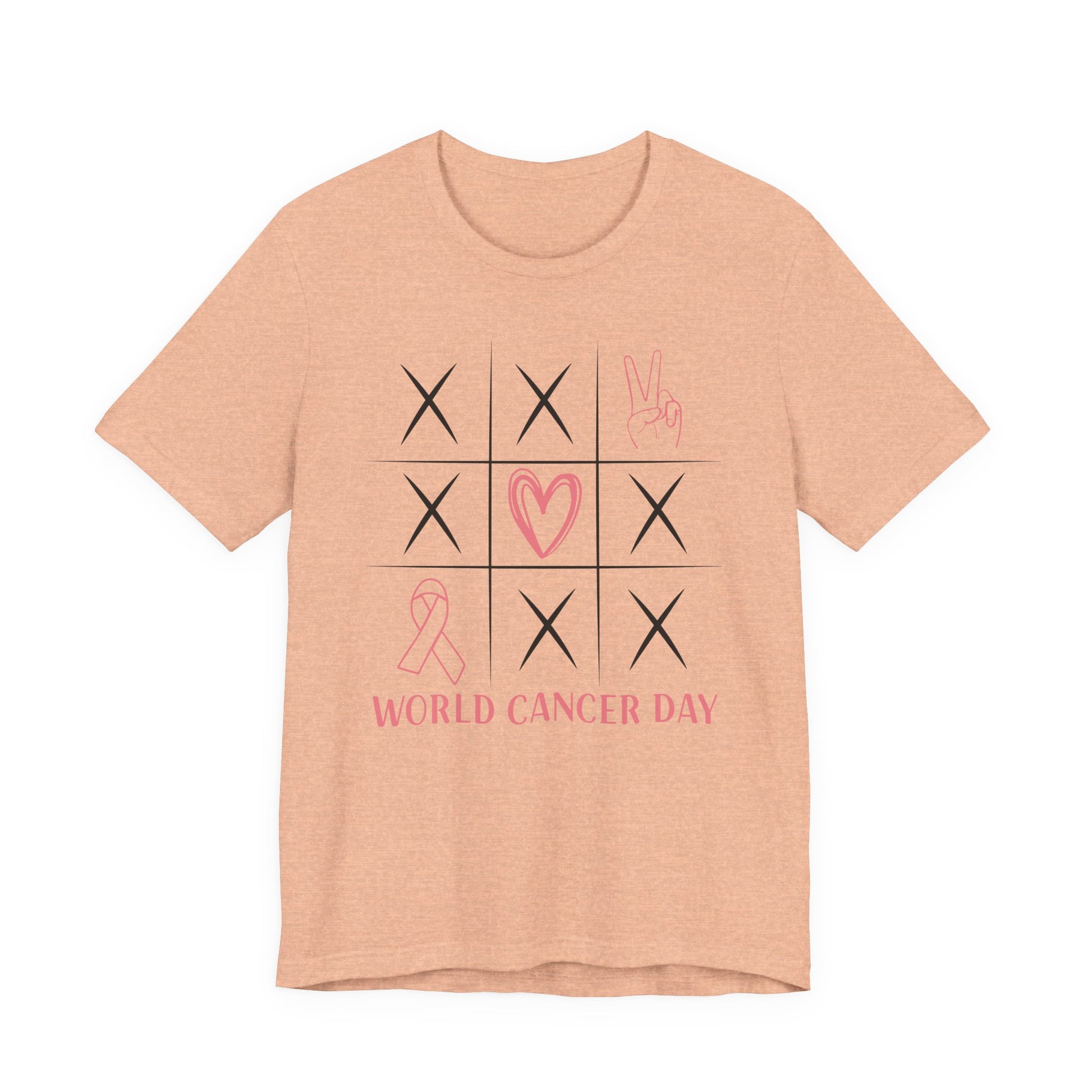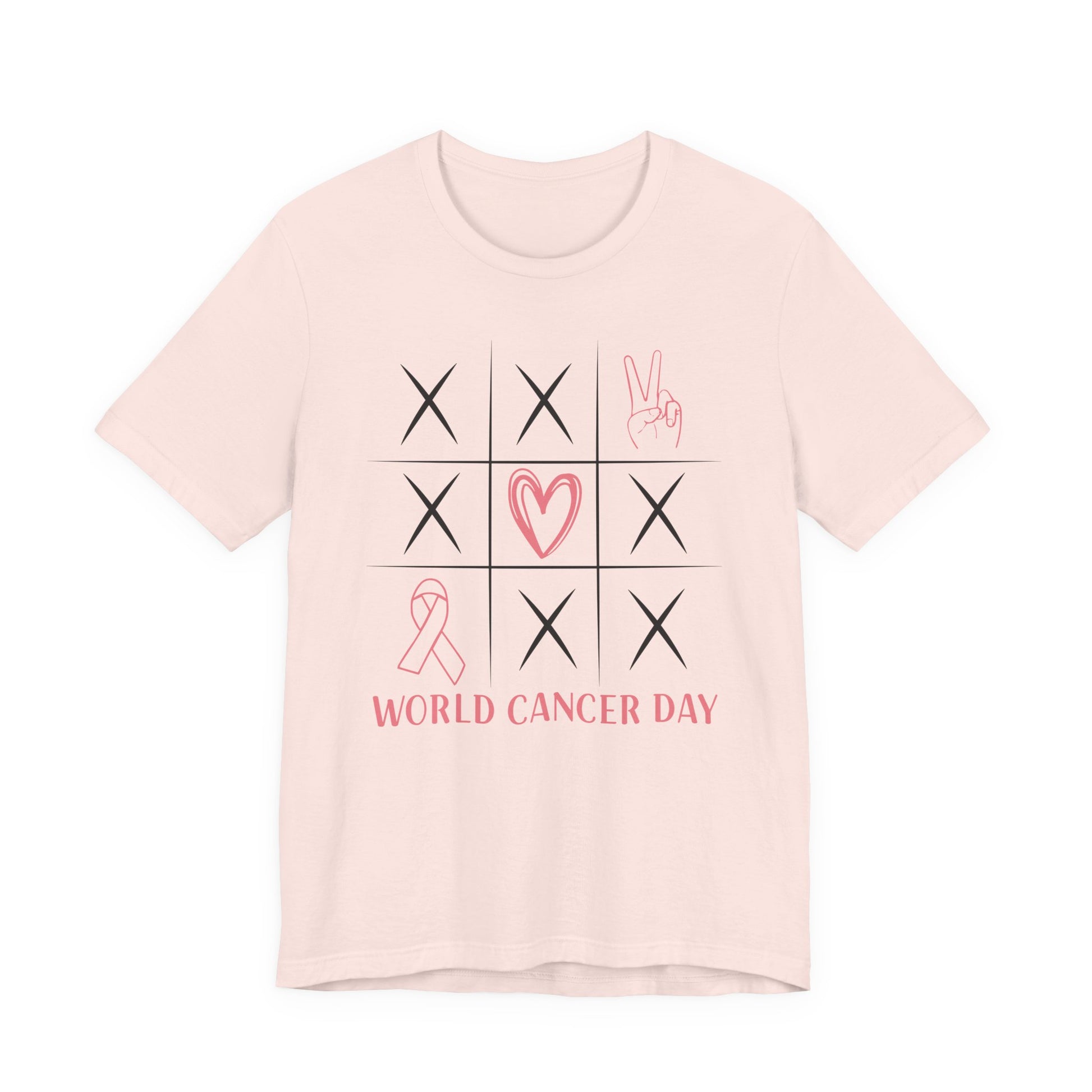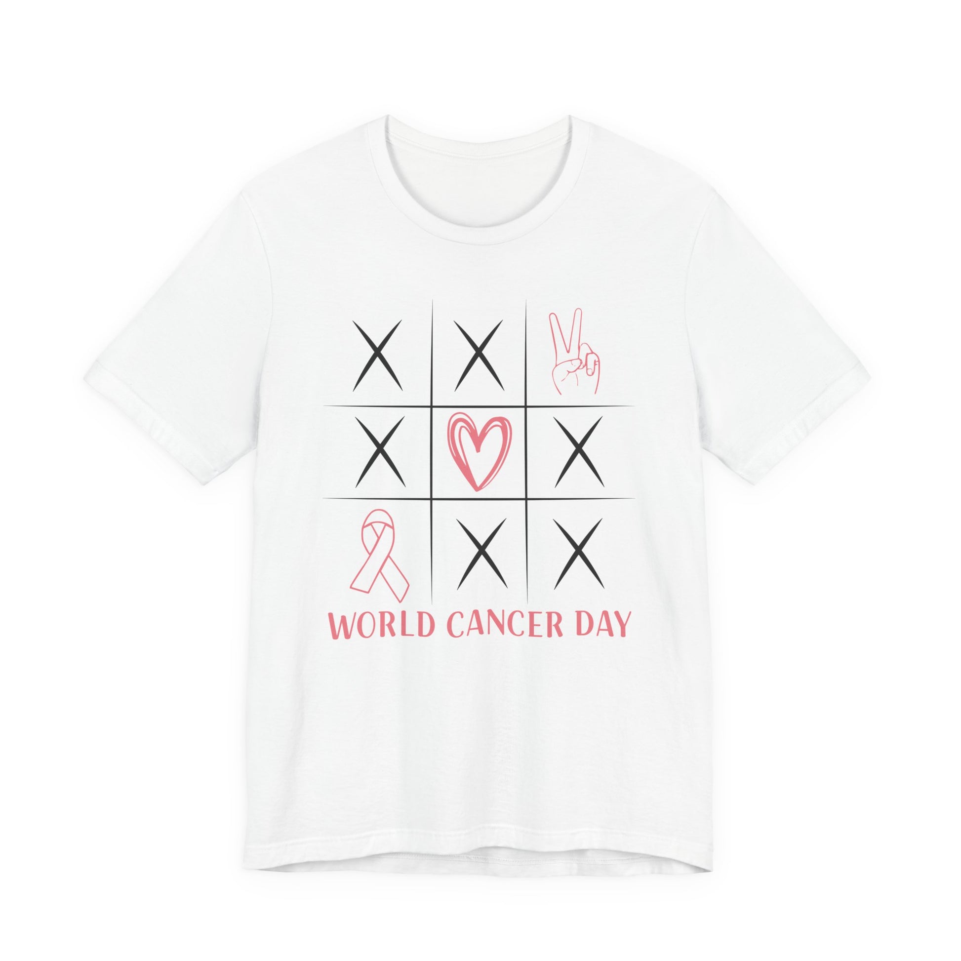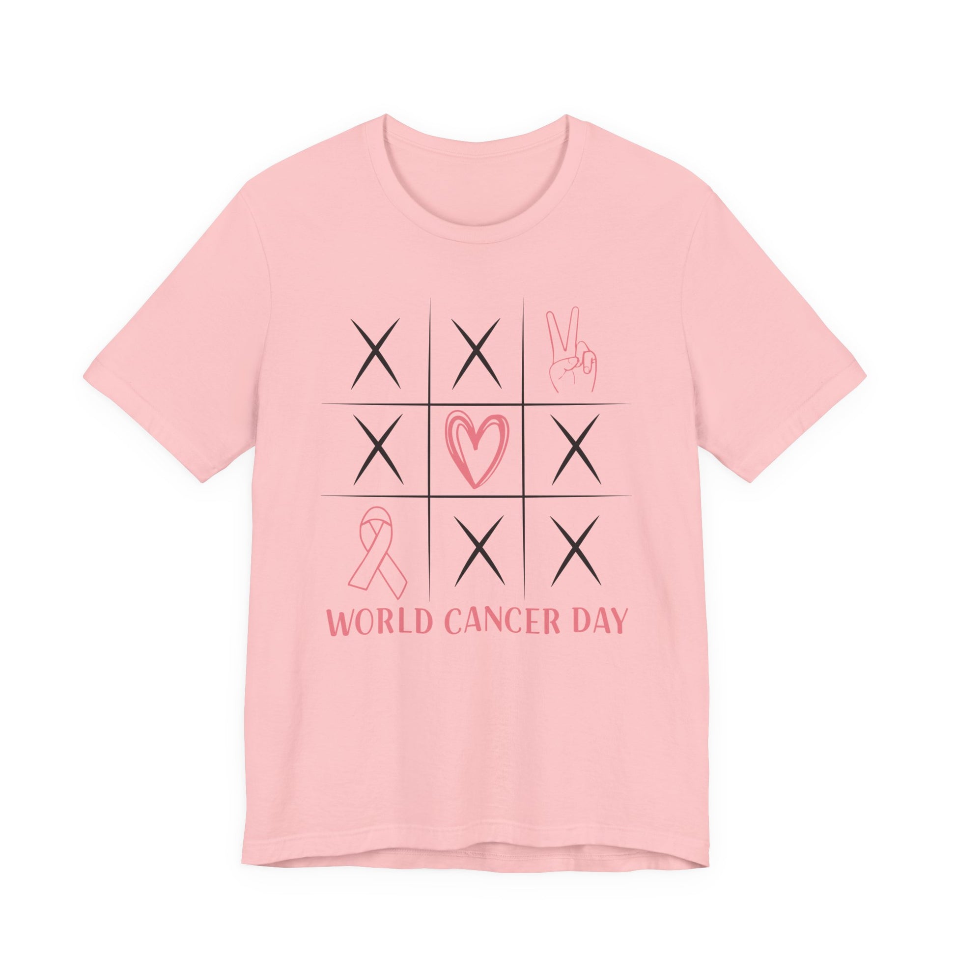 Show your support, spread love, and inspire hope with this powerful World Cancer Day Awareness T-shirt. Featuring a tic-tac-toeโinspired design with a peace sign, heart, and awareness ribbon in pink, this shirt is a meaningful way to honor survivors, support those currently fighting, and remember loved ones. With its heartfelt message and bold yet stylish graphic, itโs more than just a teeโitโs a statement of compassion, unity, and strength.