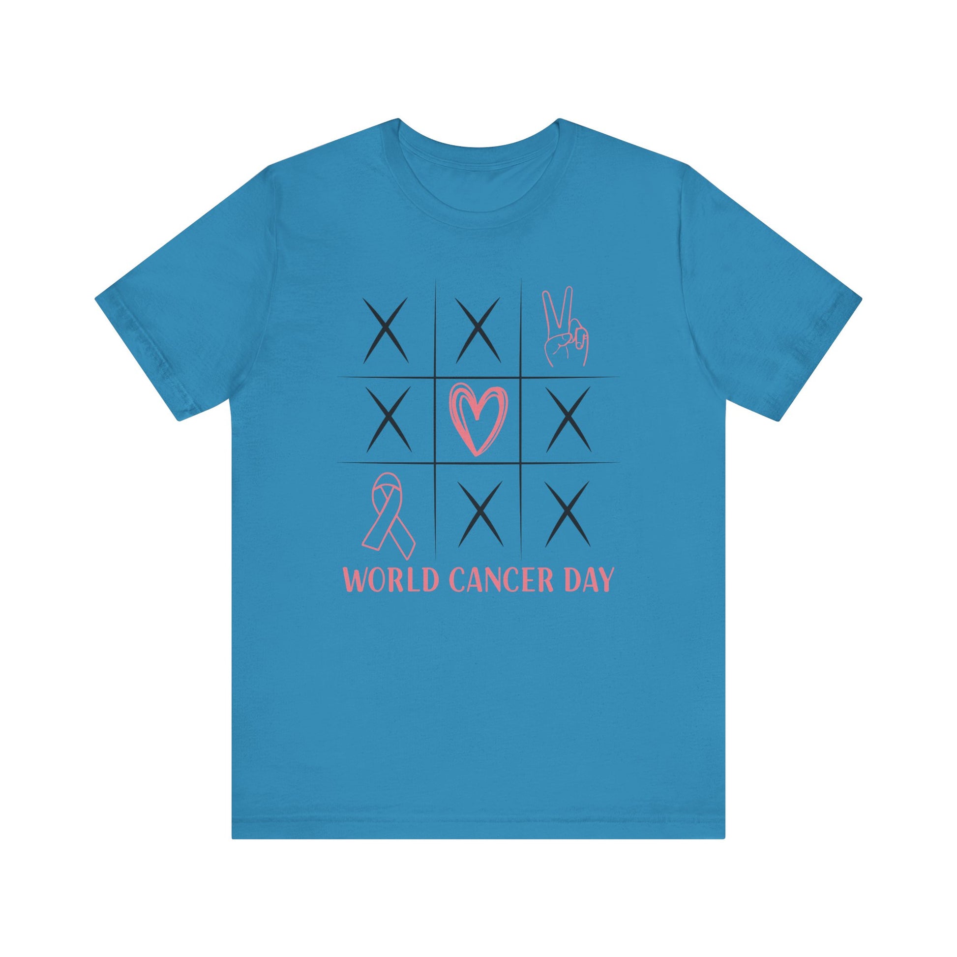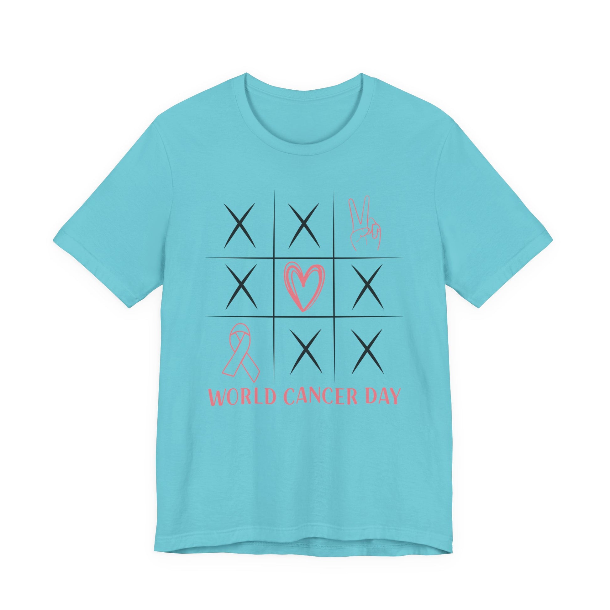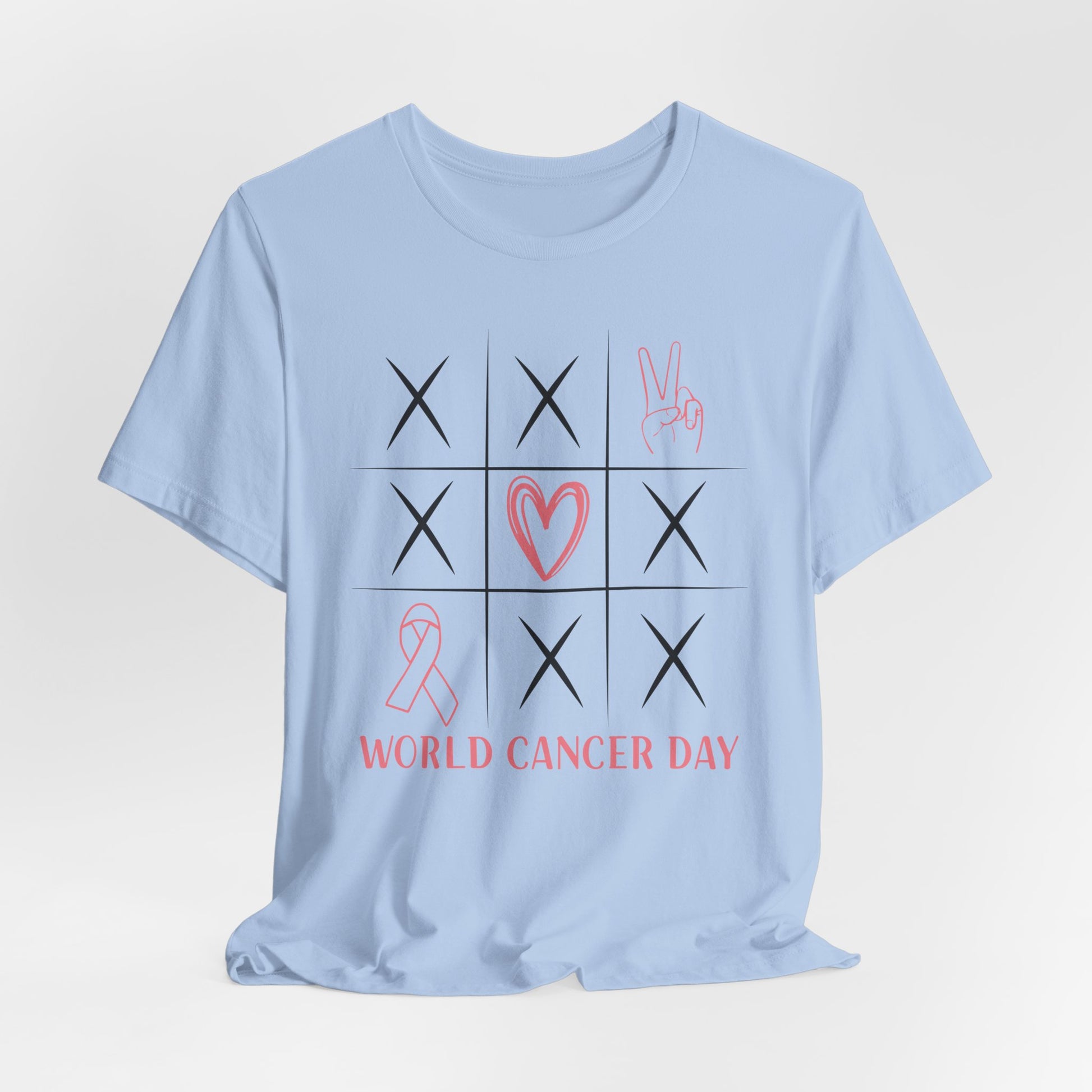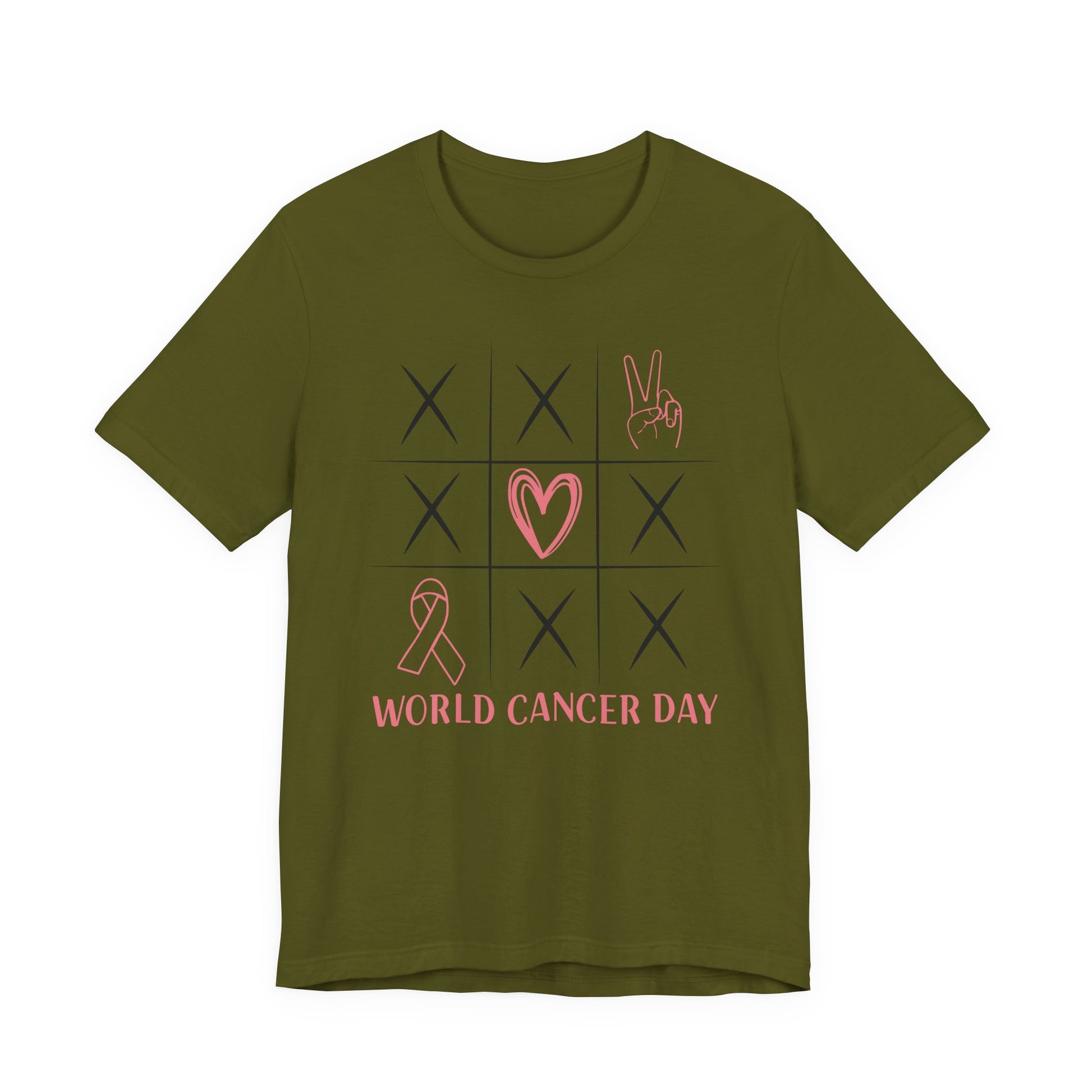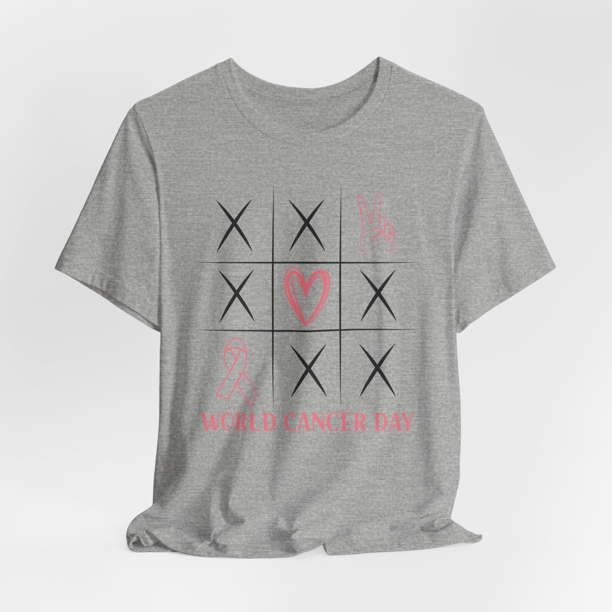 Show your support, spread love, and inspire hope with this powerful World Cancer Day Awareness T-shirt. Featuring a tic-tac-toeโinspired design with a peace sign, heart, and awareness ribbon in pink, this shirt is a meaningful way to honor survivors, support those currently fighting, and remember loved ones. With its heartfelt message and bold yet stylish graphic, itโs more than just a teeโitโs a statement of compassion, unity, and strength.