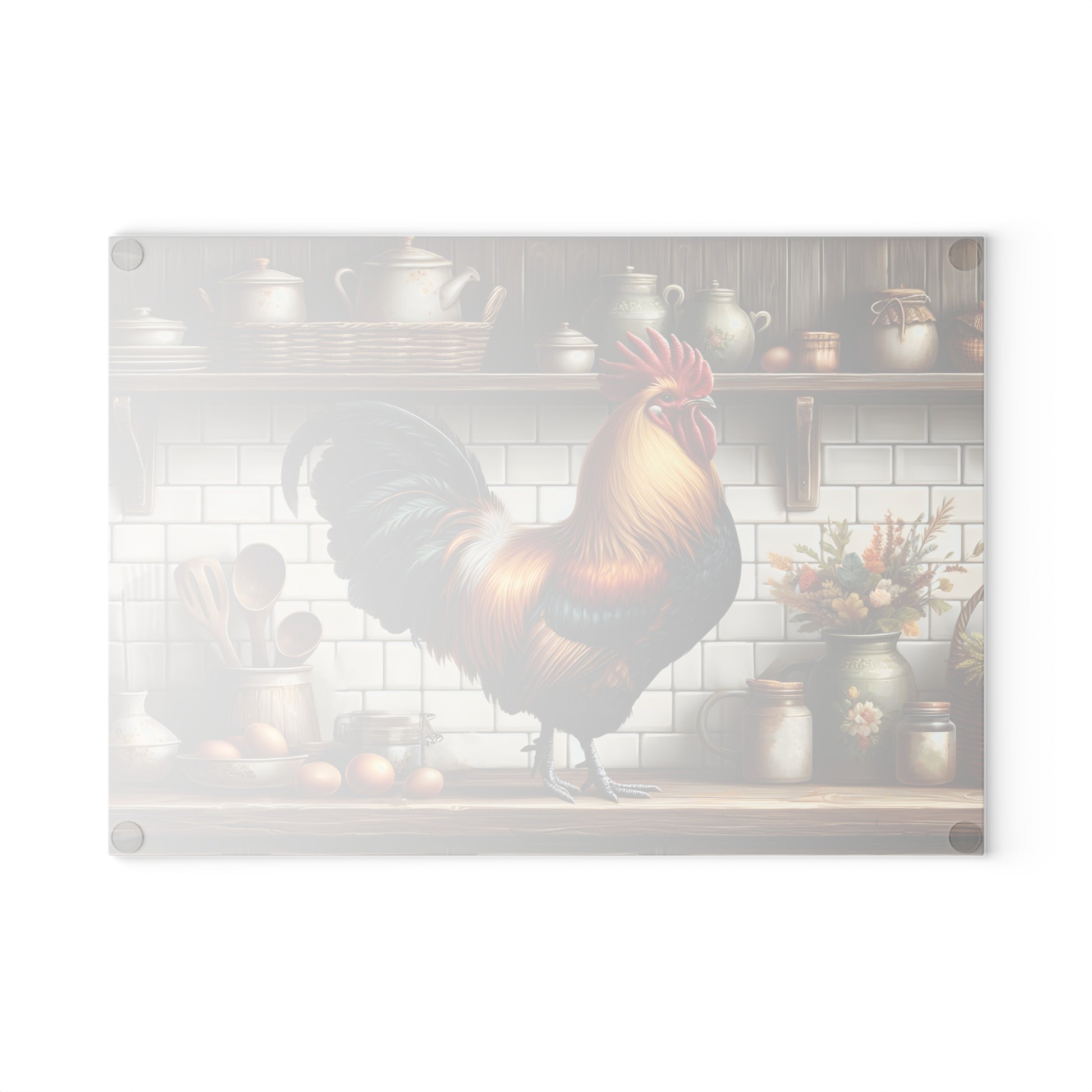 Bring a burst of countryside charm to your kitchen with this vibrant Rustic Rooster Cutting Board! Featuring a beautifully illustrated rooster standing proudly among antique crockery, baskets, and wooden utensils, this design evokes the cozy warmth of farmhouse life. Perfect for rustic kitchens and vintage dรฉcor lovers, this board adds both style and functionality to your space.