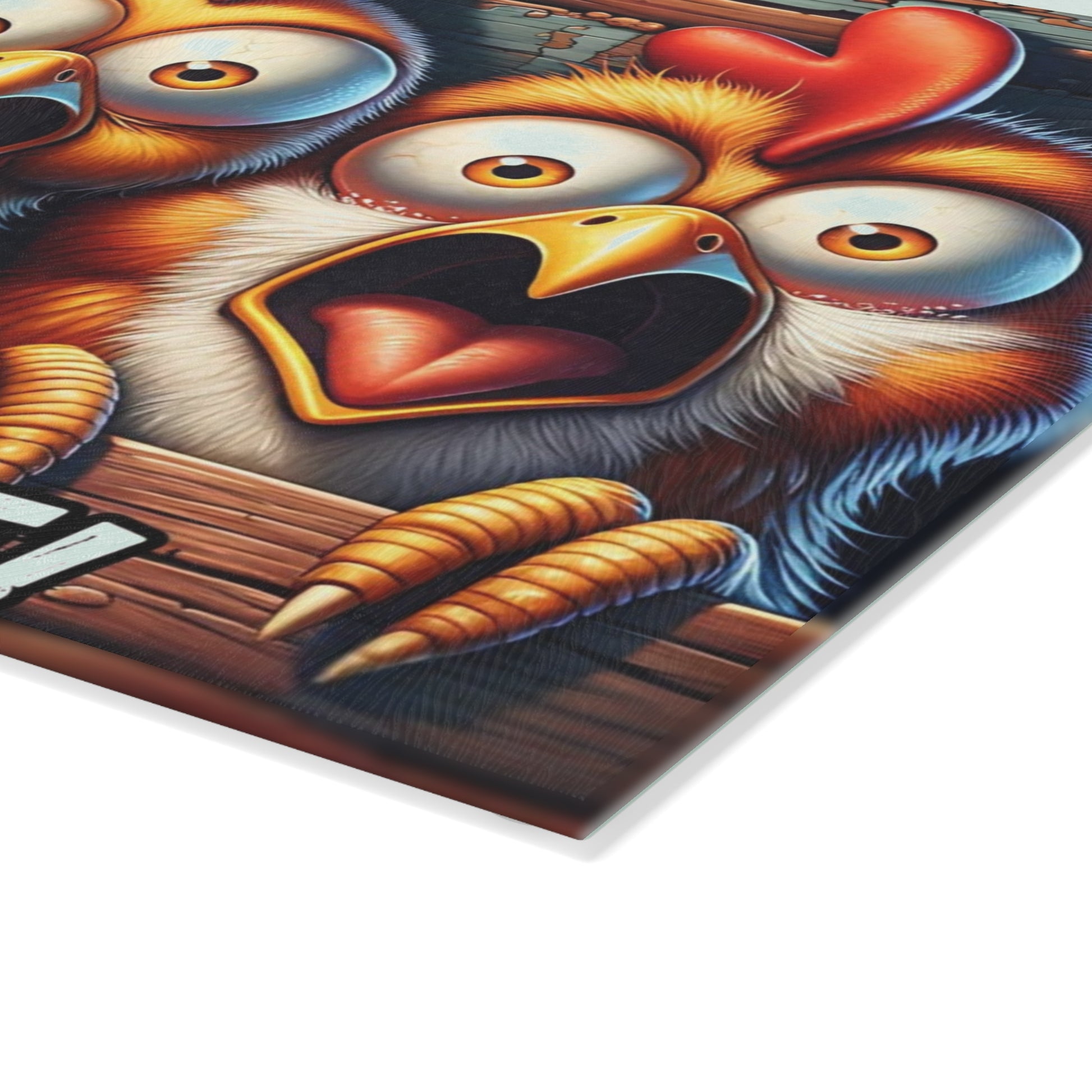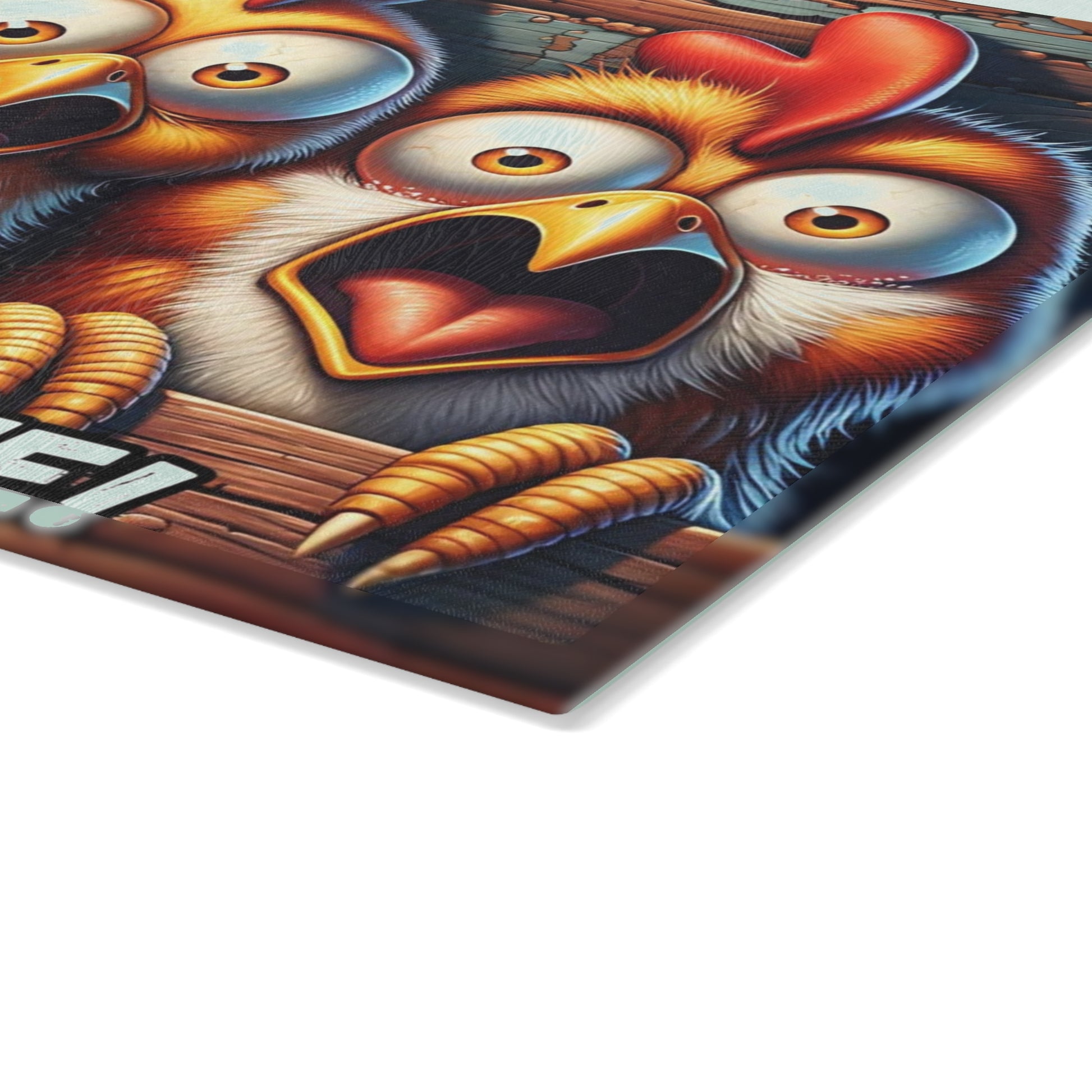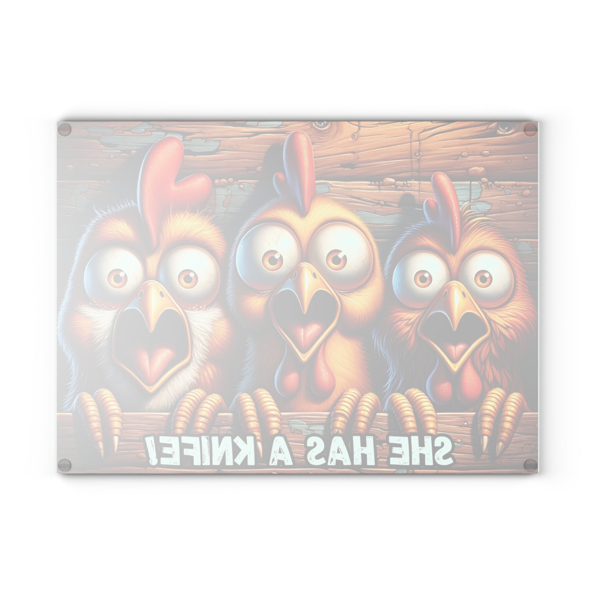 Add a hysterical dose of farmhouse horror humor to your kitchen with this eye-catching “She Has a Knife!” glass cutting board! Featuring three wide-eyed chickens in full panic mode, this playful and spooky design is perfect for anyone who loves a mix of creepy fun and rustic charm. It’s the ultimate conversation starter for your next holiday gathering, party, or cozy night in.