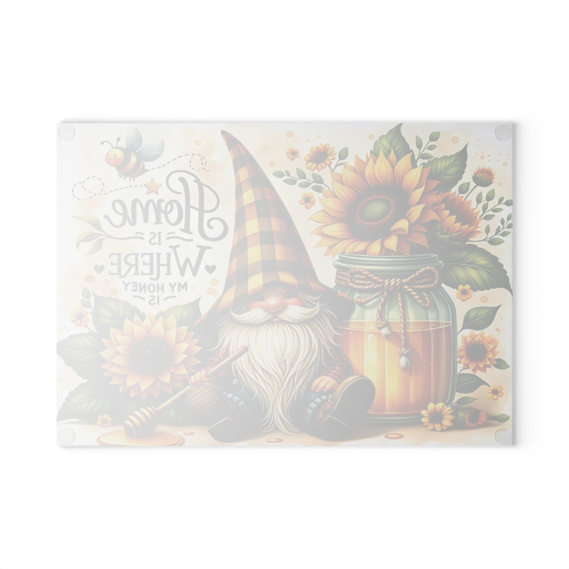 🐝🌻 “Sunny Honey Gnome” Glass Cutting Board – Warm Country Charm for Your Kitchen