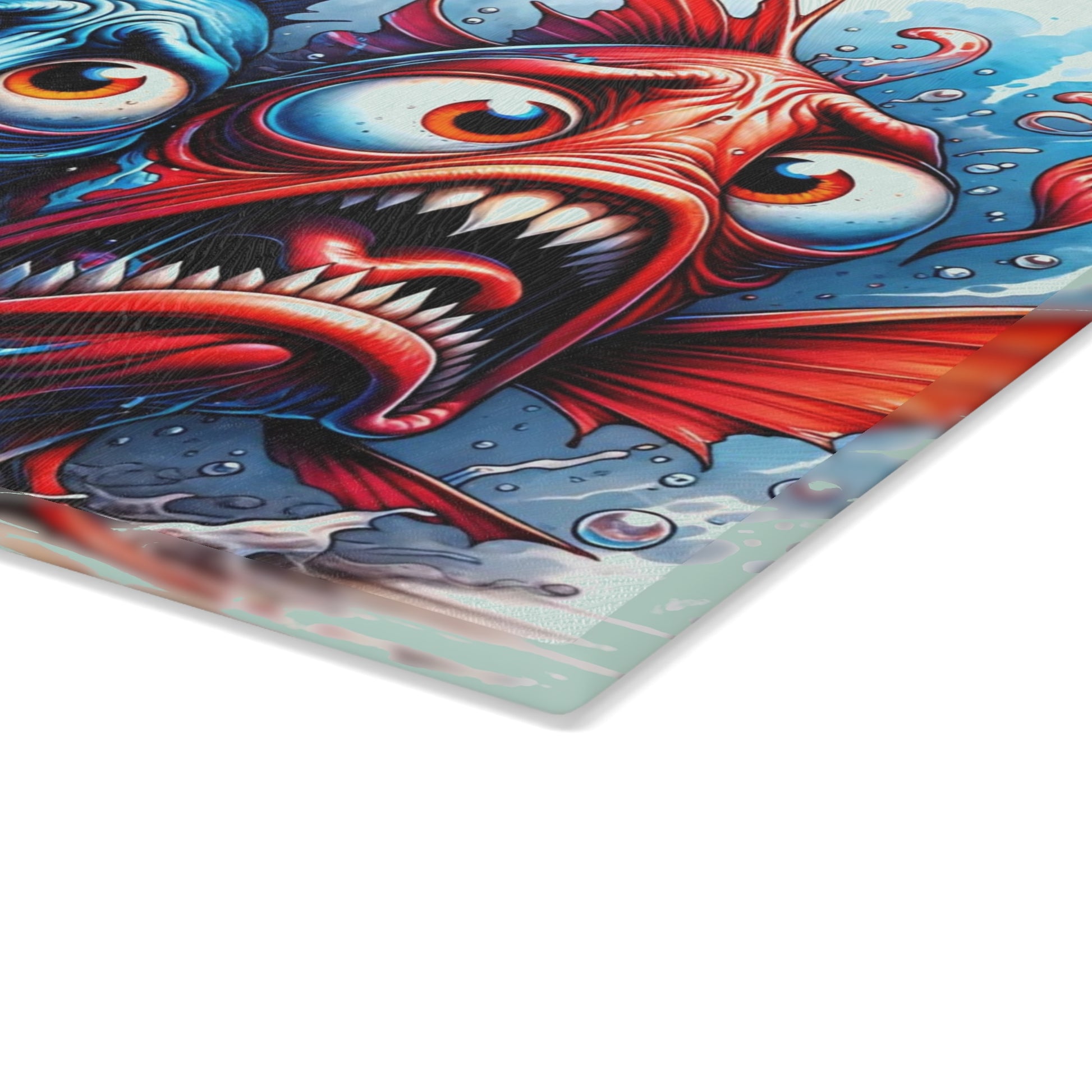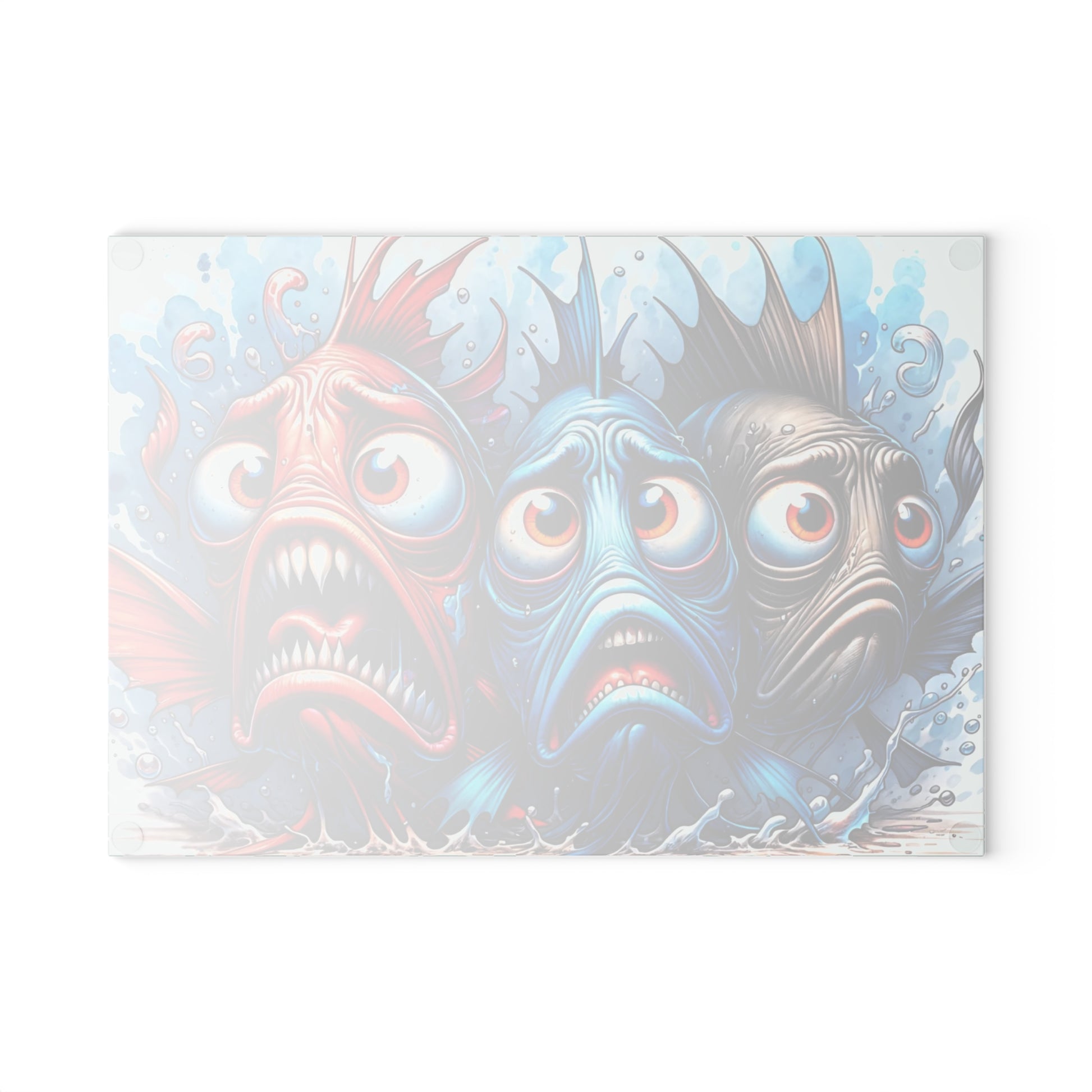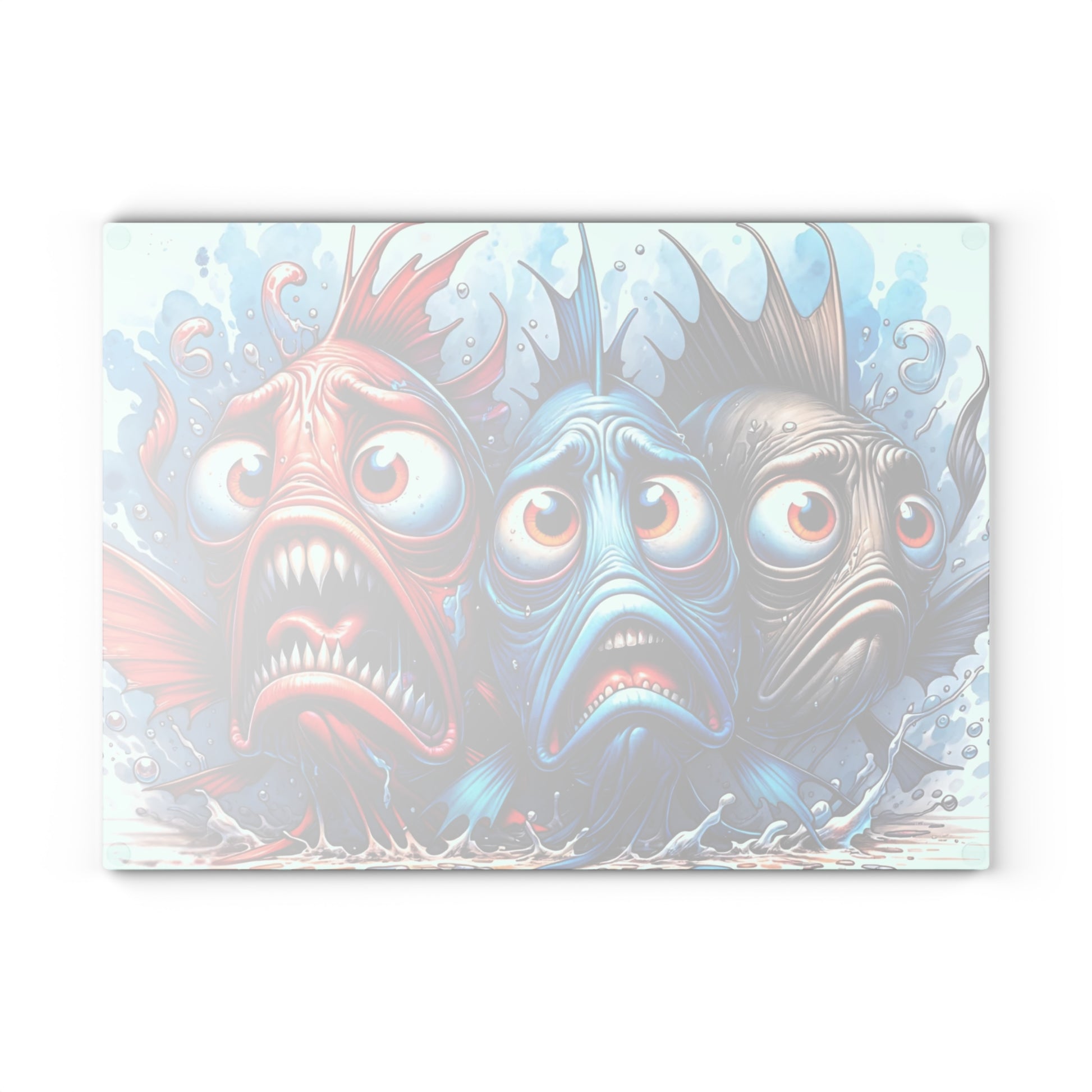 🐟😂 “Comic Fish Trio” Glass Cutting Board – Splashy Fun for Your Kitchen