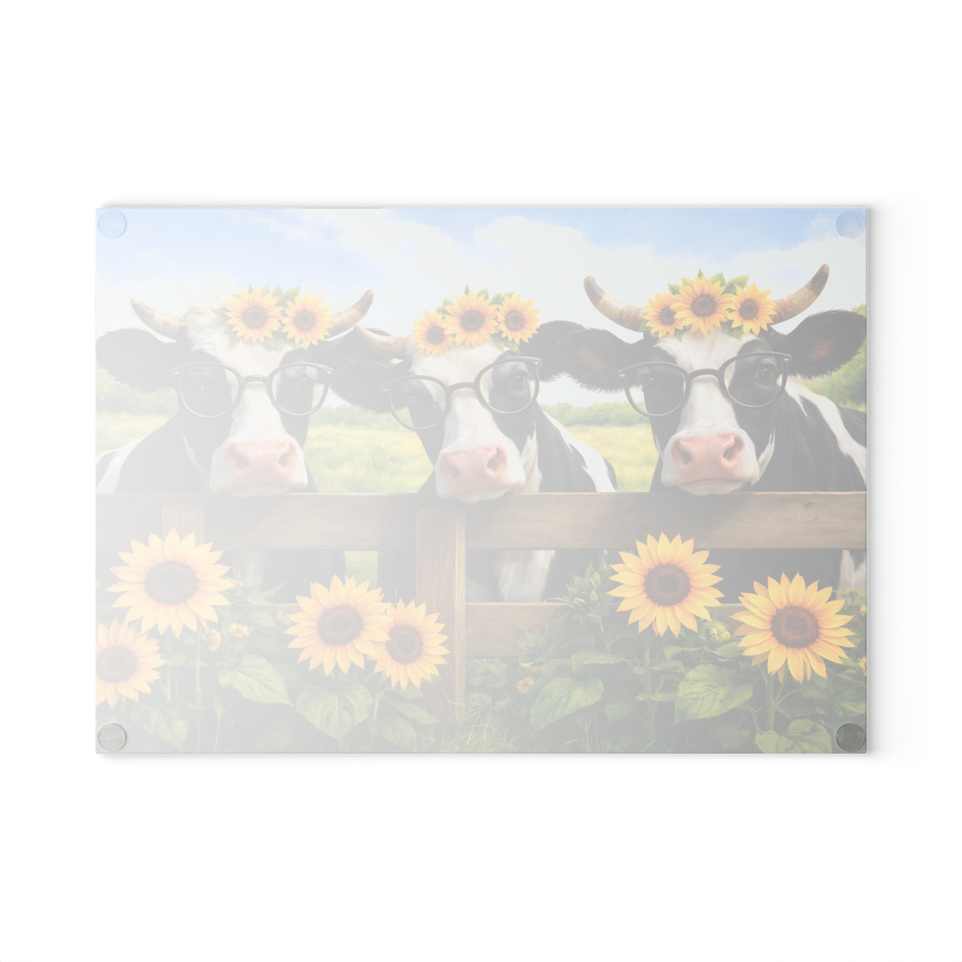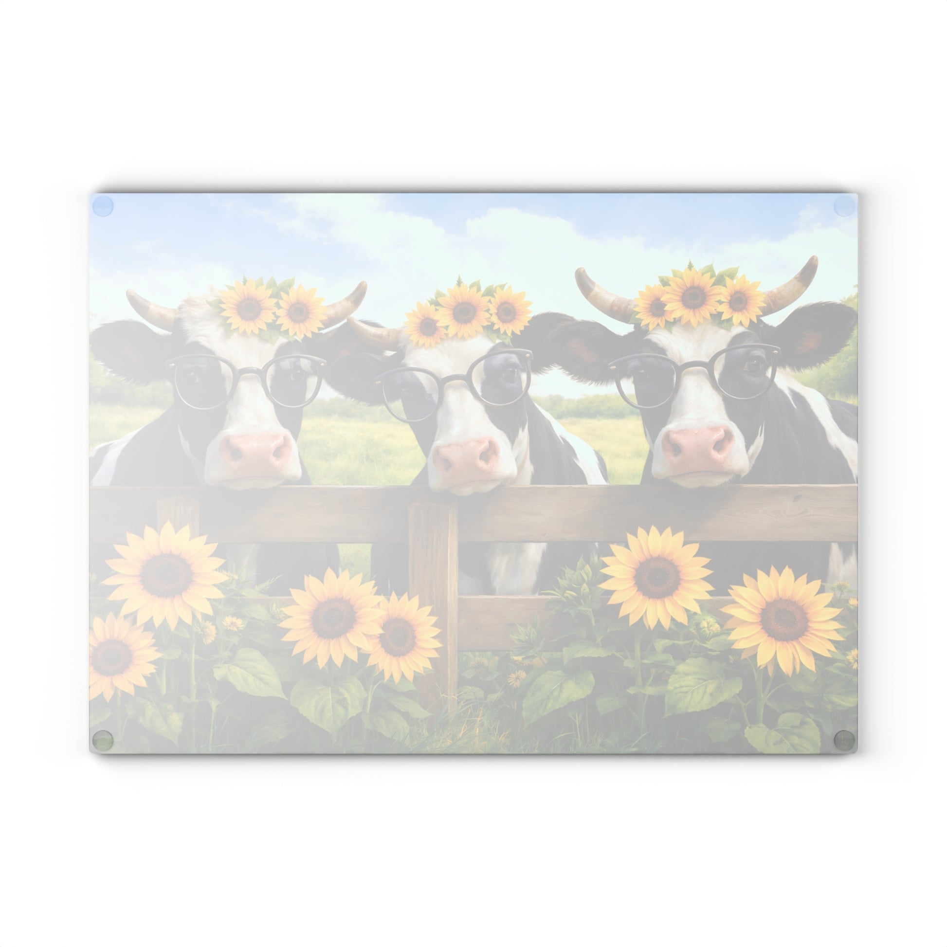 Sunflower Cow Trio Glass Cutting Board – Cheerful Farmhouse Kitchen Accent