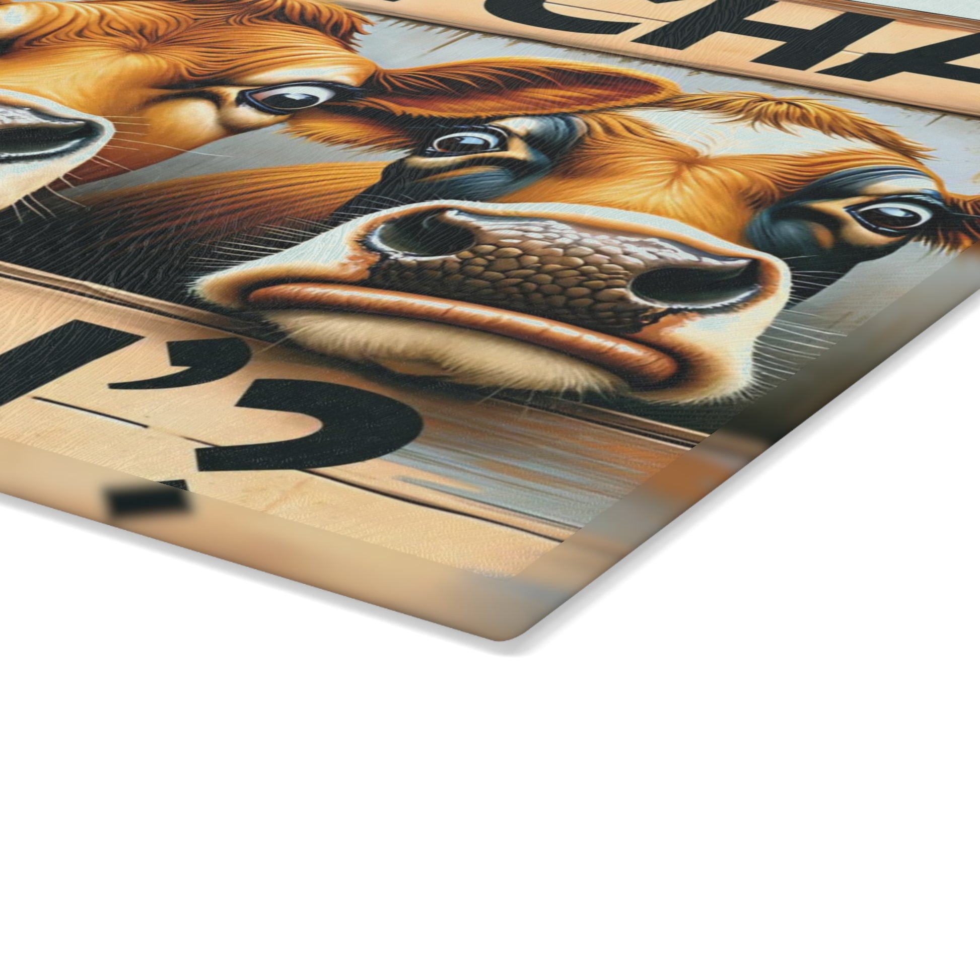 🐮🤠 “Whatcha Makin’?” Glass Cutting Board – Cozy Charm for Your Kitchen