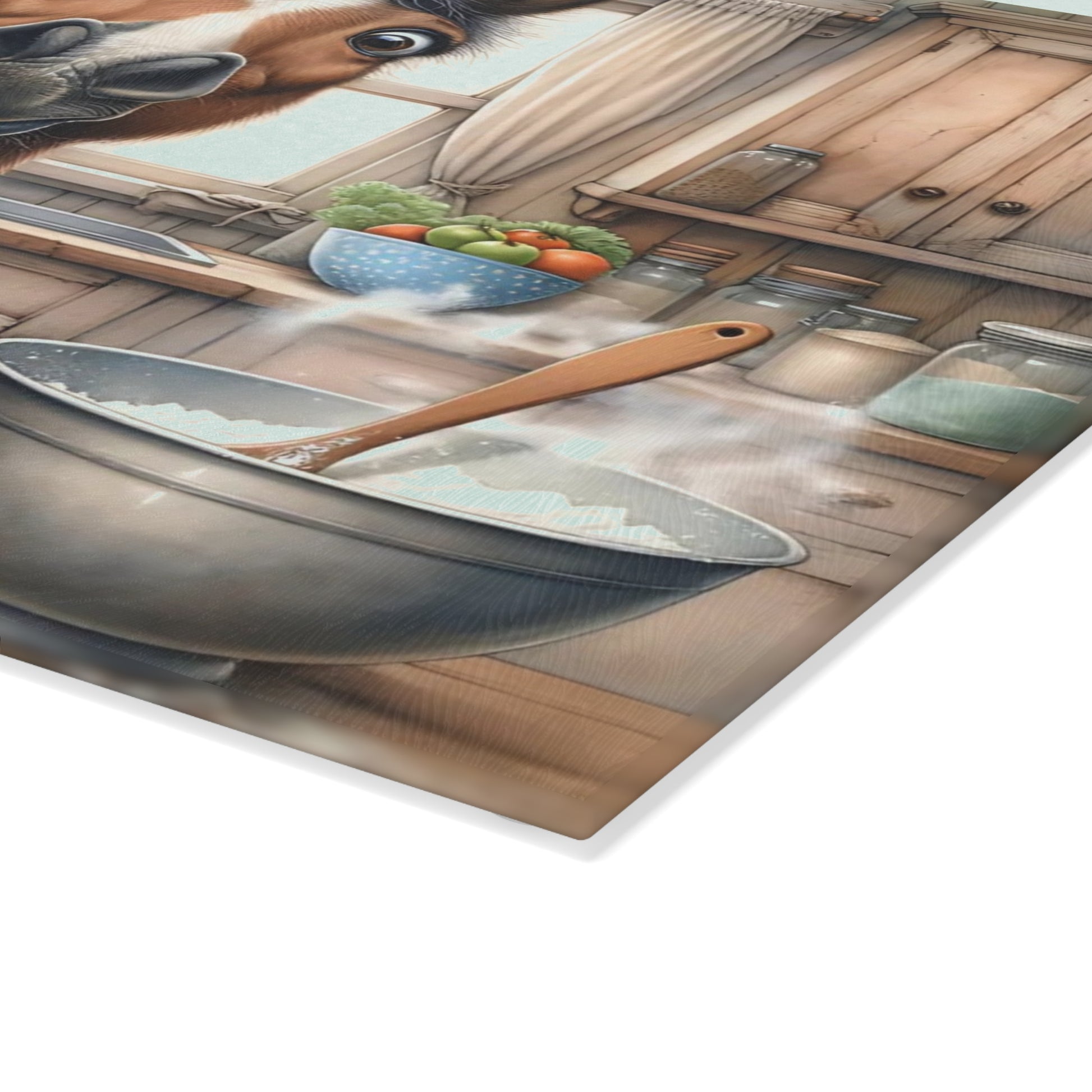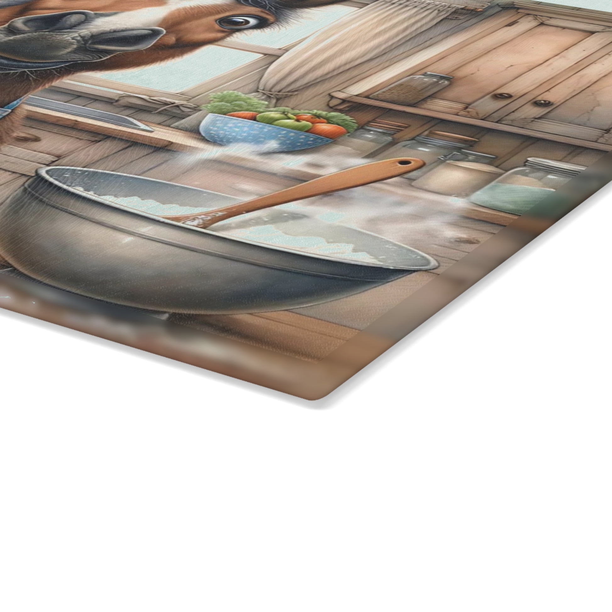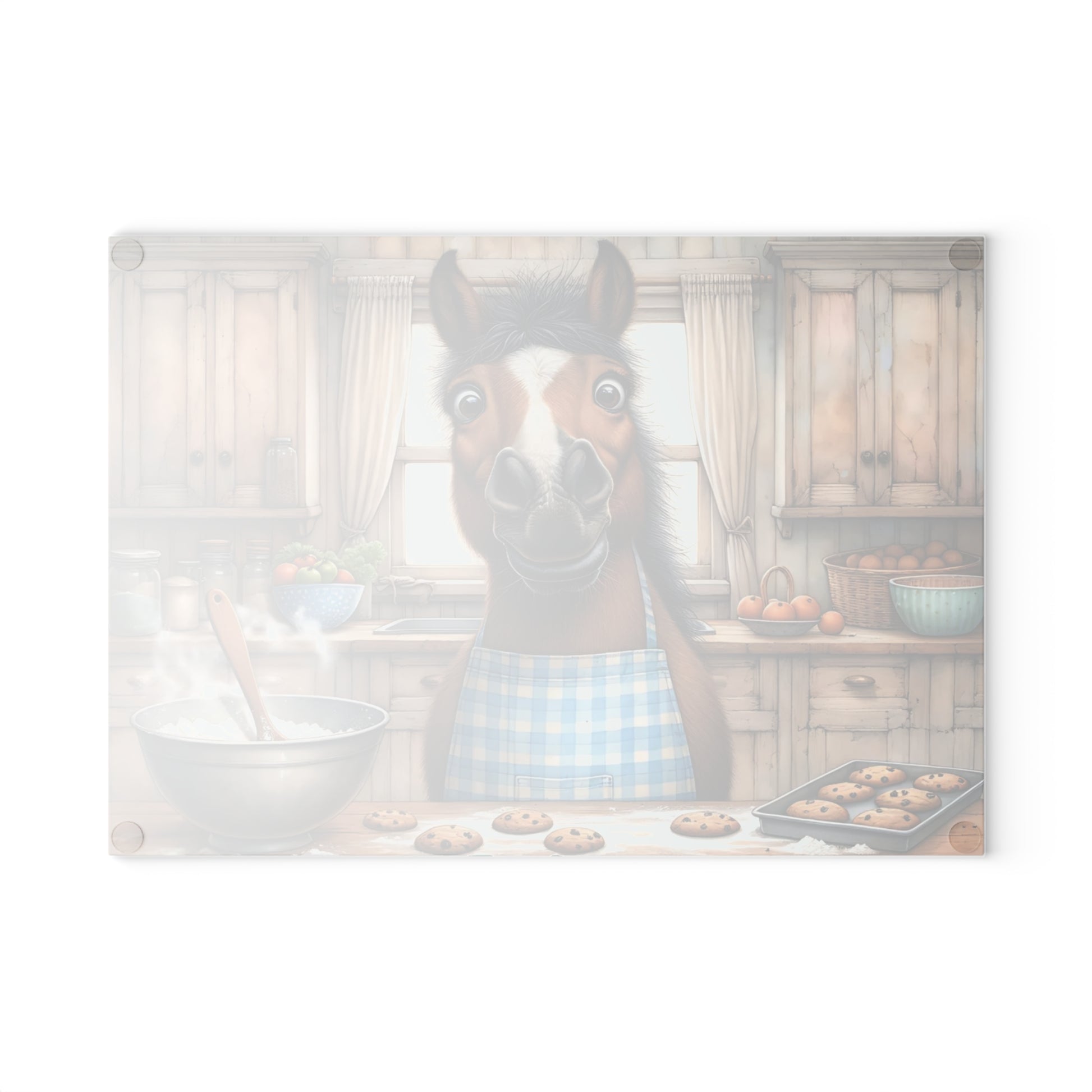 🐴🍪 “Baking Buddy Horse” Glass Cutting Board – Cozy Laughs for Your Kitchen