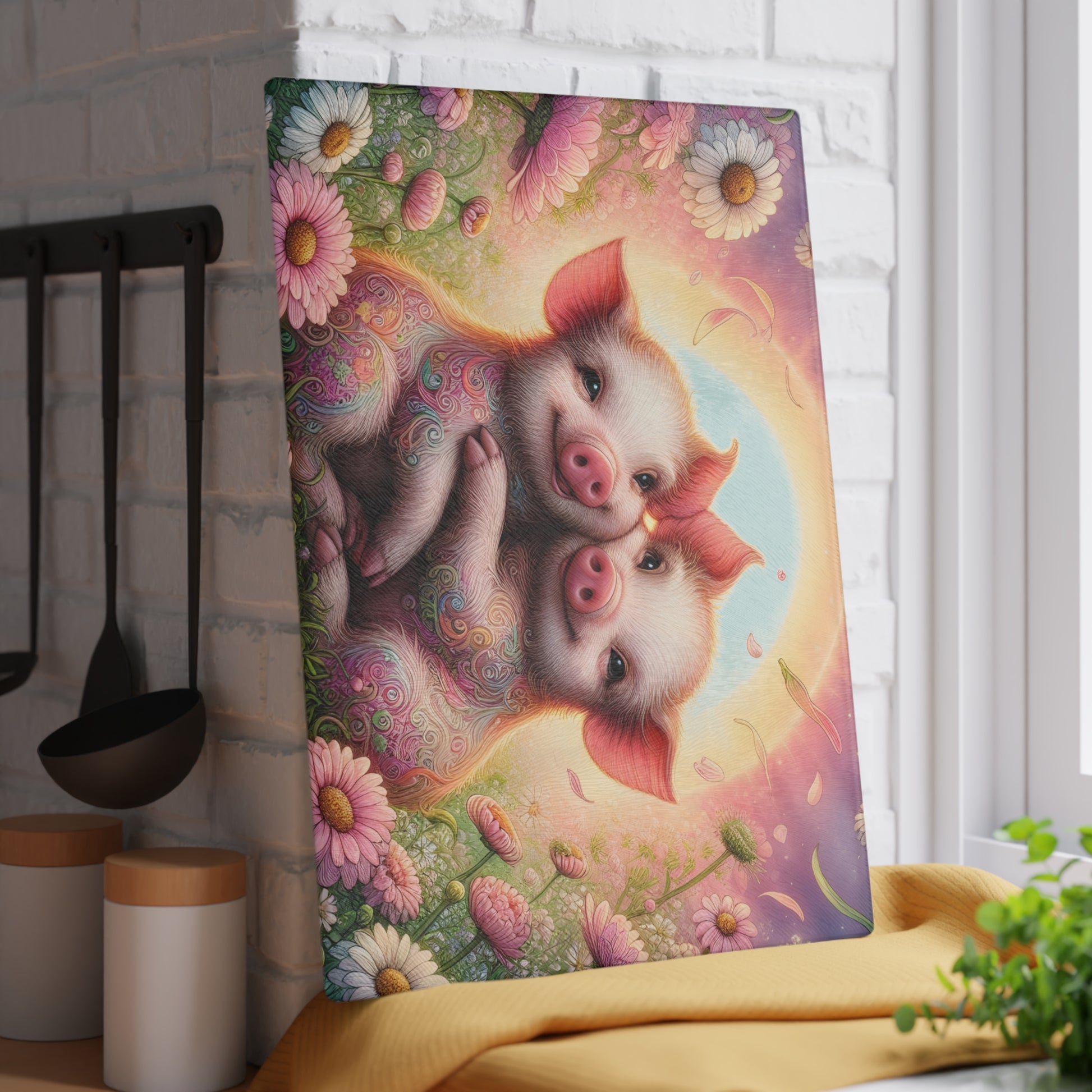 Add a touch of sunshine and pure happiness to your kitchen with this Piglet Pals Tempered Glass Cutting Board! Featuring two cuddly piglets surrounded by a field of colorful flowers under a dreamy sunset, this design blends farmhouse charm with a whimsical, artistic twist. Whether youโre prepping meals, serving snacks, or creating a decorative kitchen display, this cutting board brings joy and vibrant style to your space.