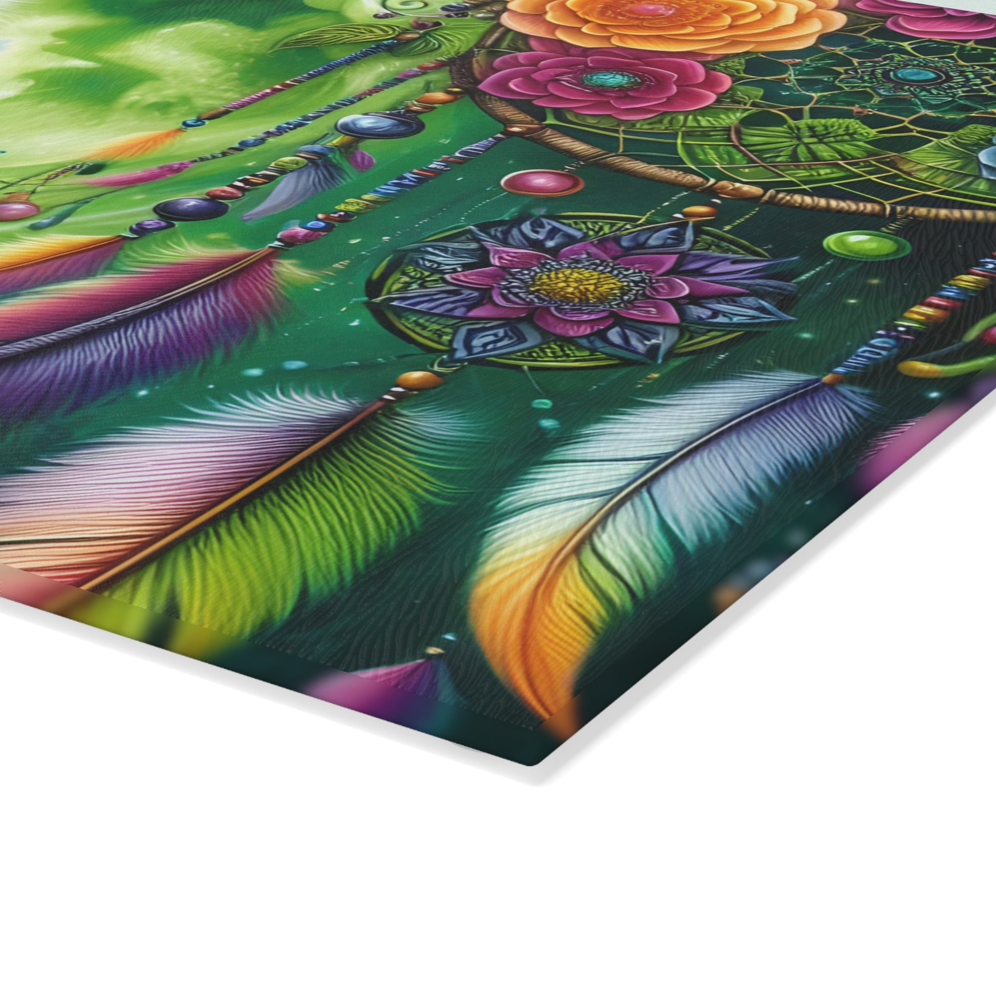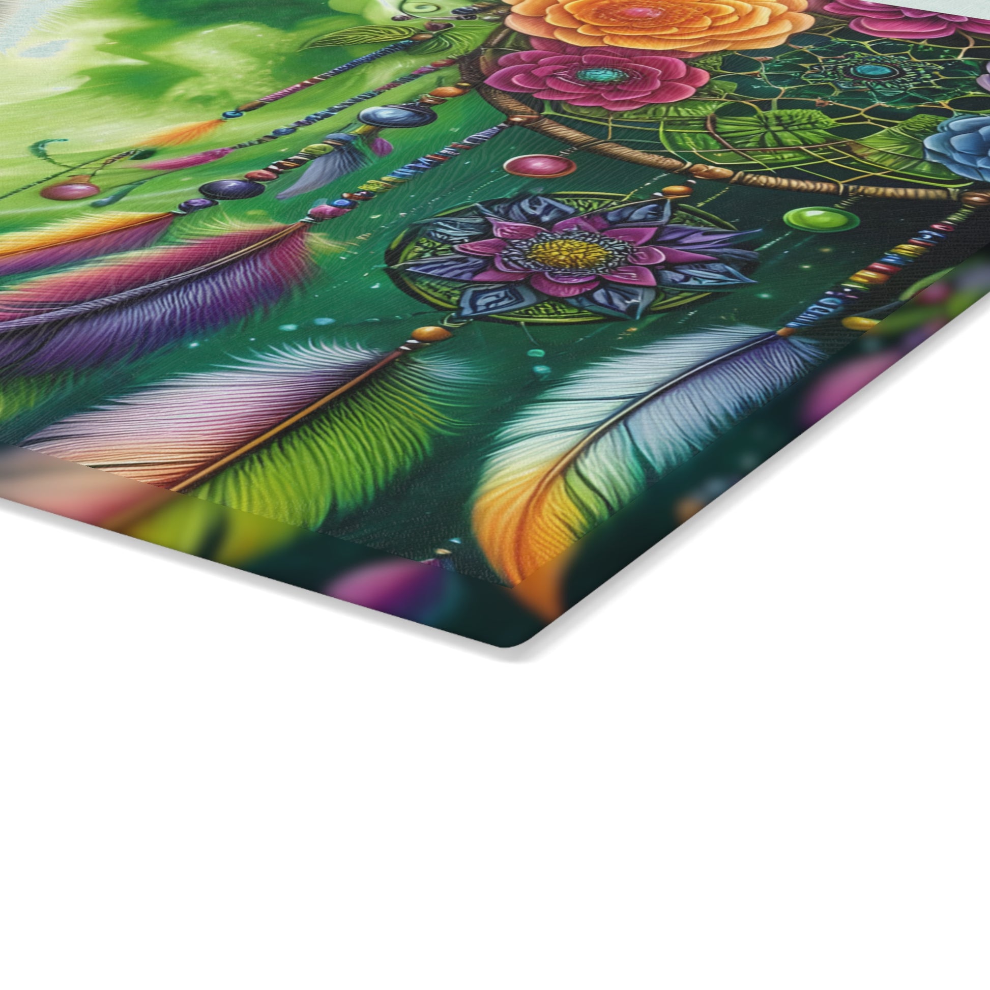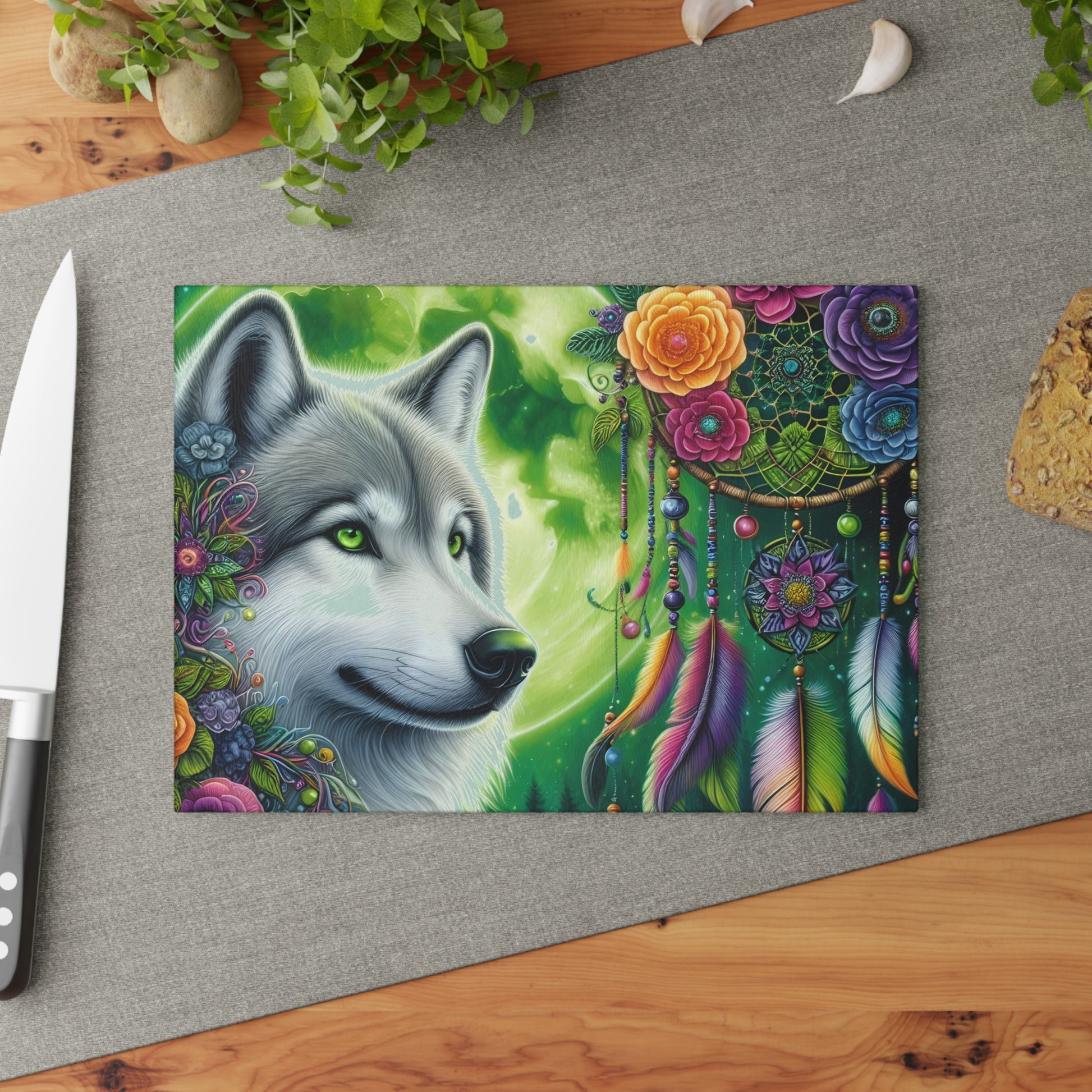 Bring spiritual energy and vibrant beauty into your home with this Dreamcatcher Wolf tempered glass cutting board. Featuring a striking wolf design paired with colorful dreamcatcher details, it’s perfect for anyone who loves nature, animals, or a mystical touch in their kitchen décor. This durable and functional piece blends elegance with artistry, creating a kitchen centerpiece you’ll love to show off.