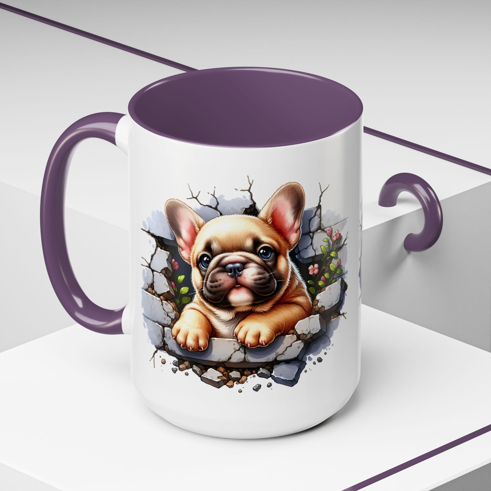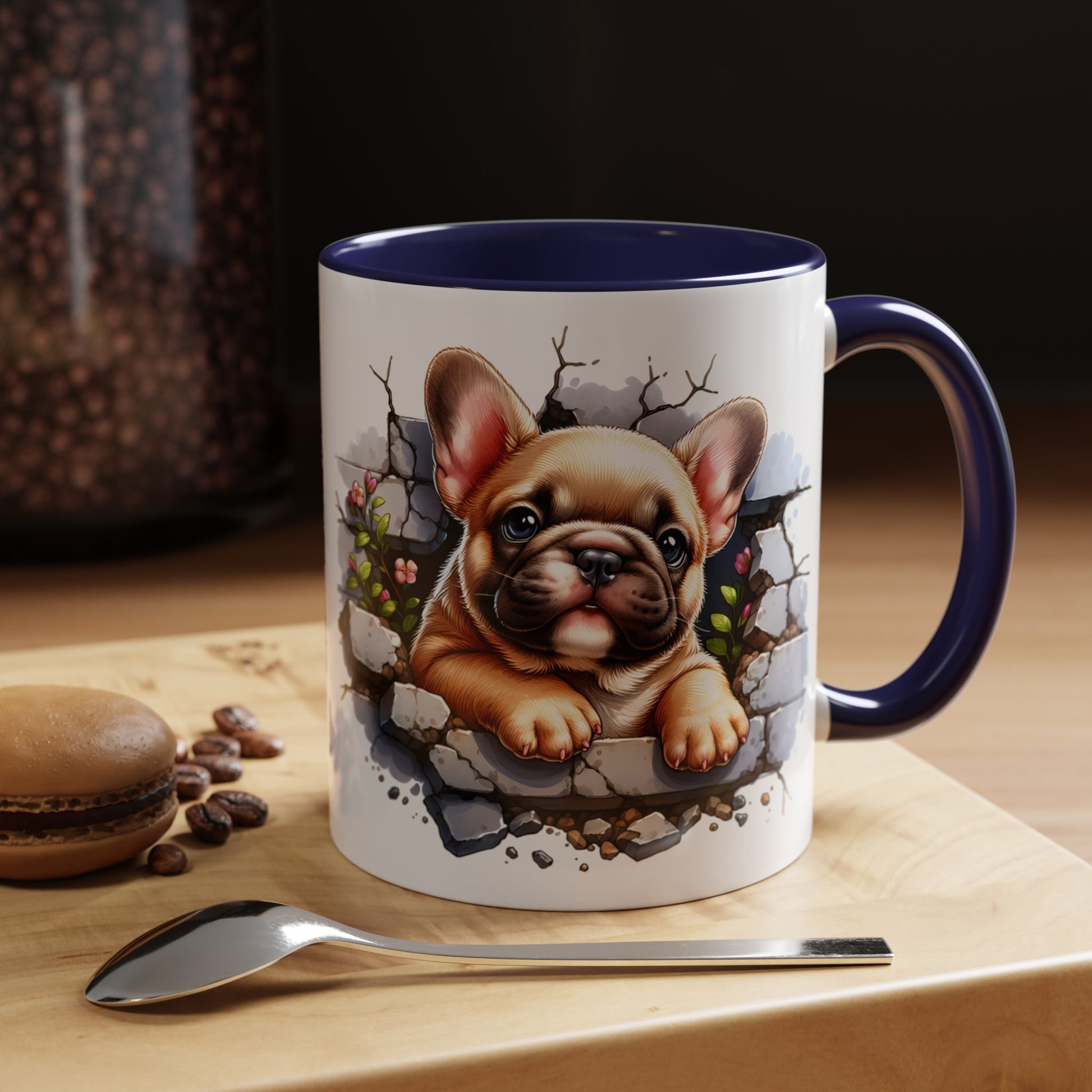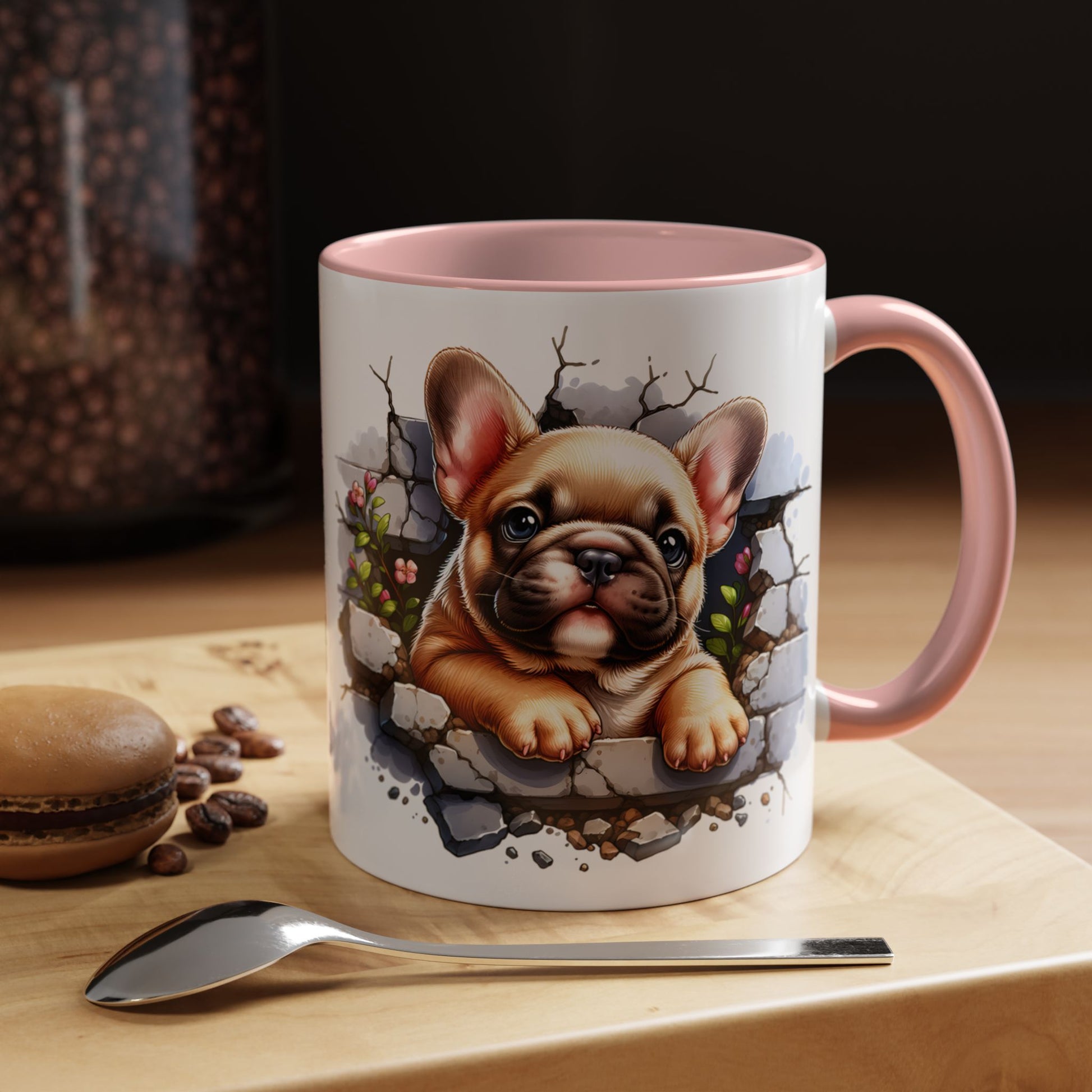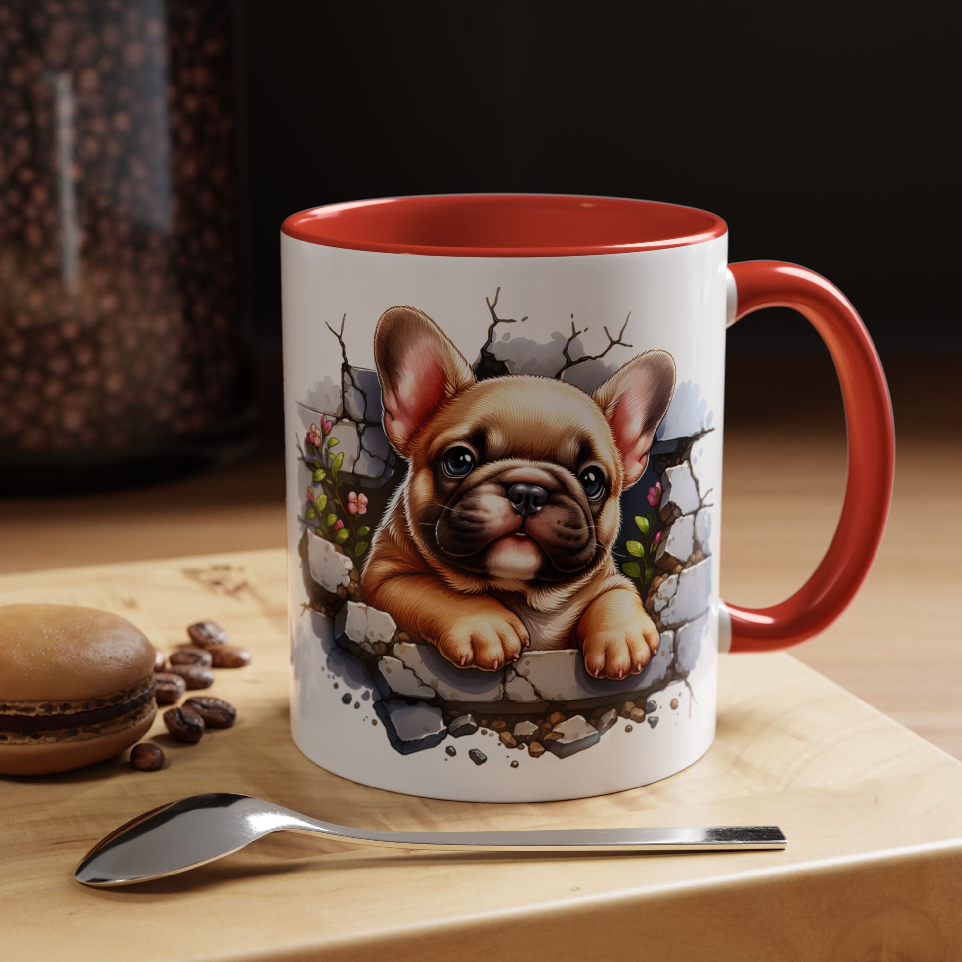 Bring a little joy to your morning routine with this adorable Tan French Bulldog Puppy Accent Mug! Featuring a charming Frenchie pup peeking through a cracked wall design, this cup adds instant warmth and personality to your coffee station. With colorful interior and handle options, it’s a must-have for anyone who loves cute, cheerful drinkware.