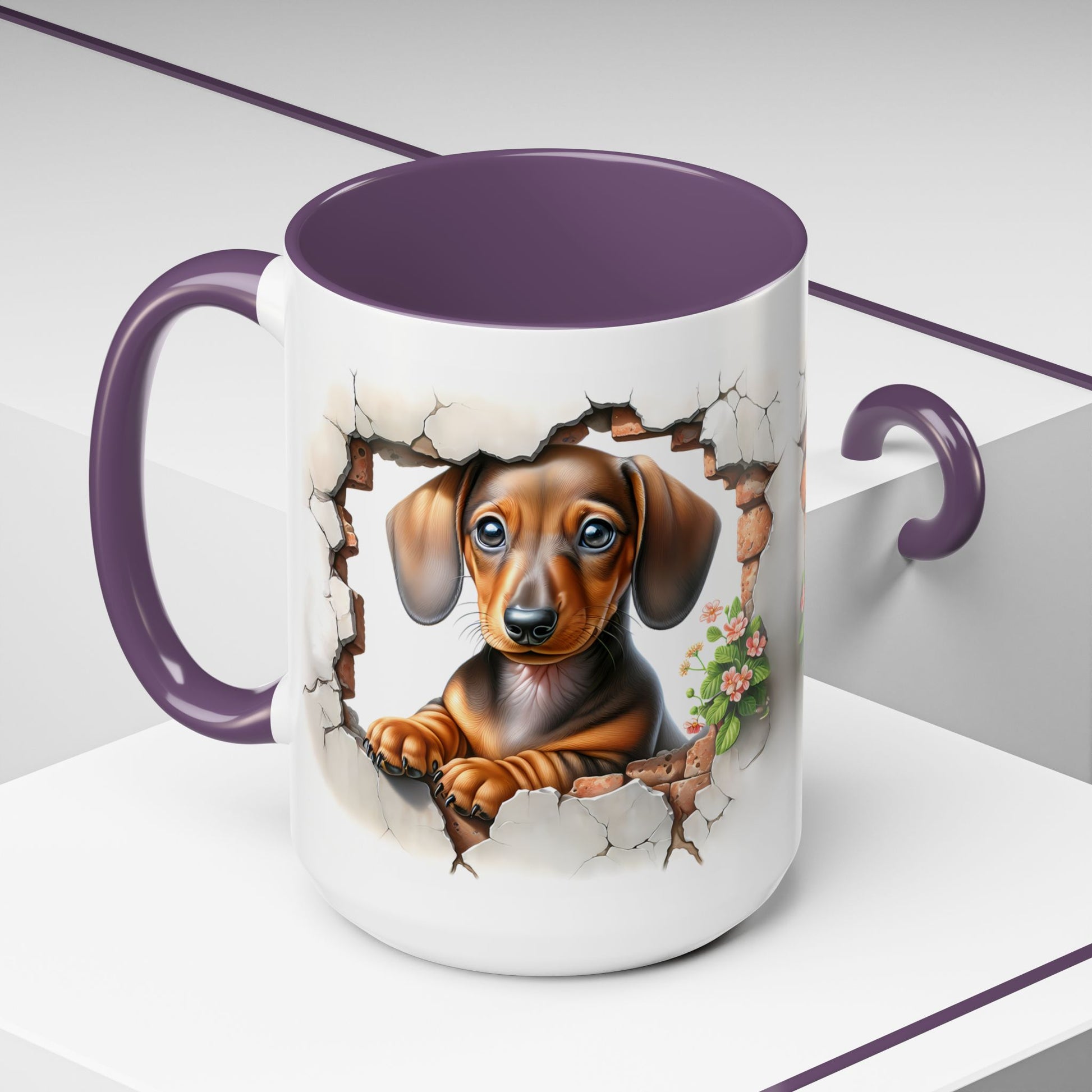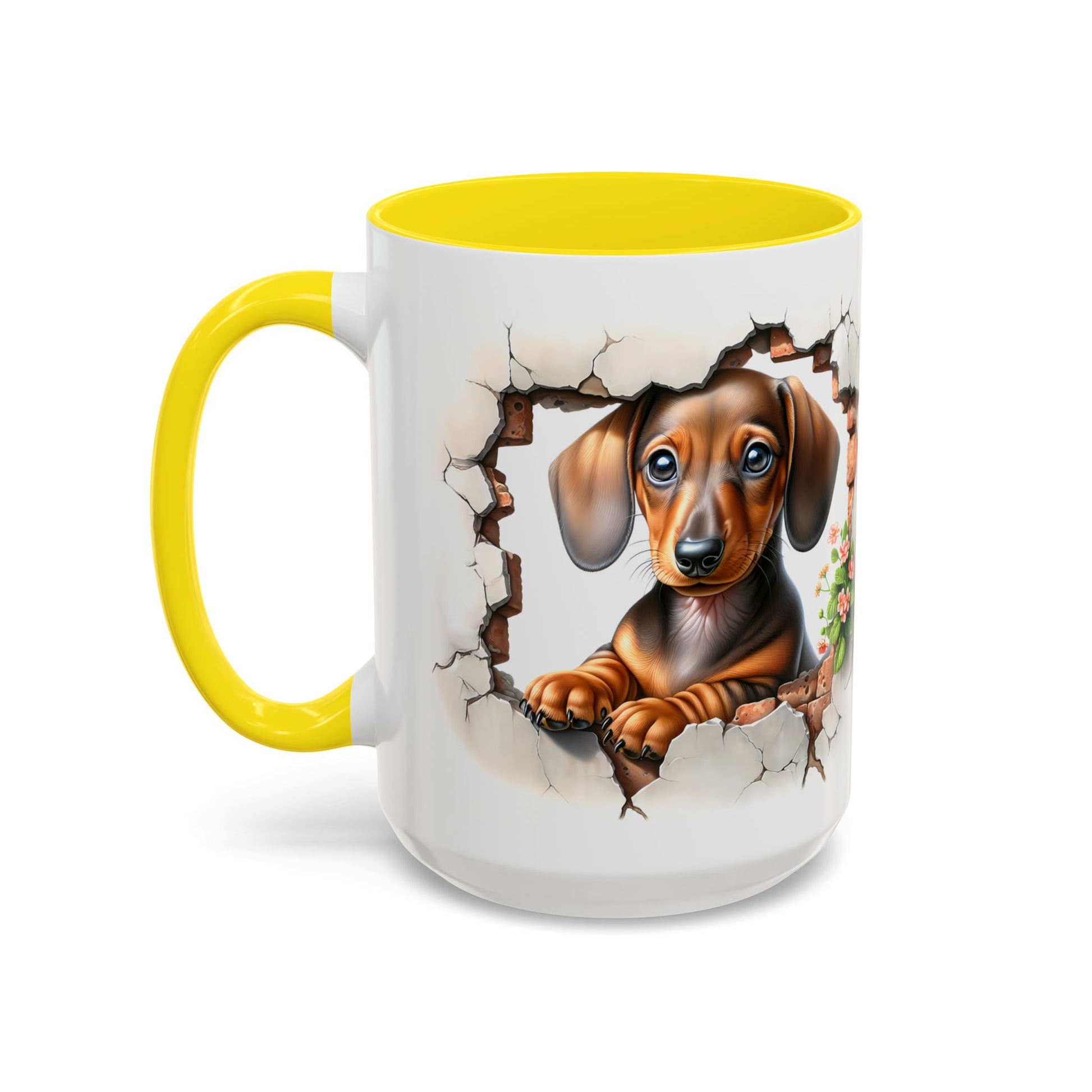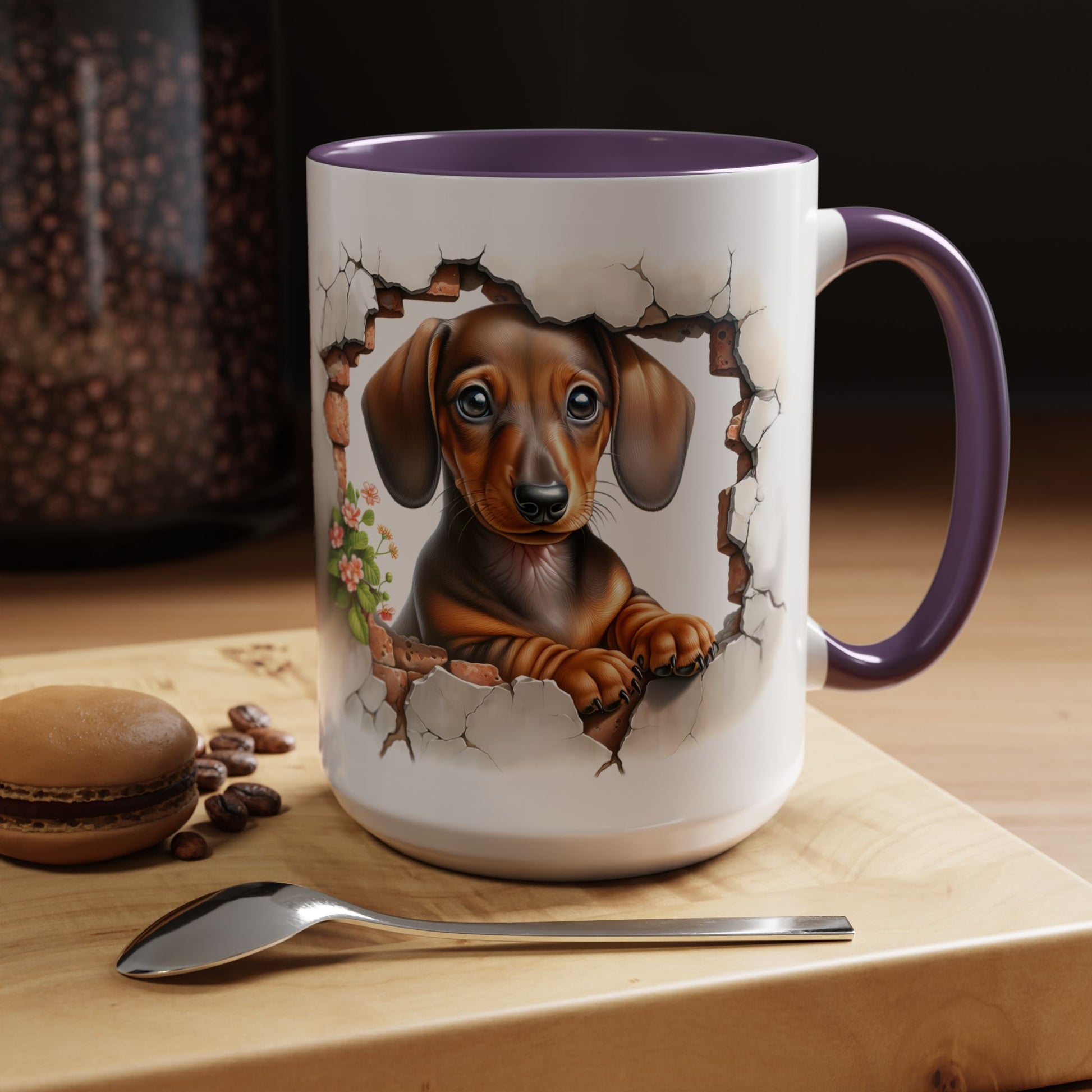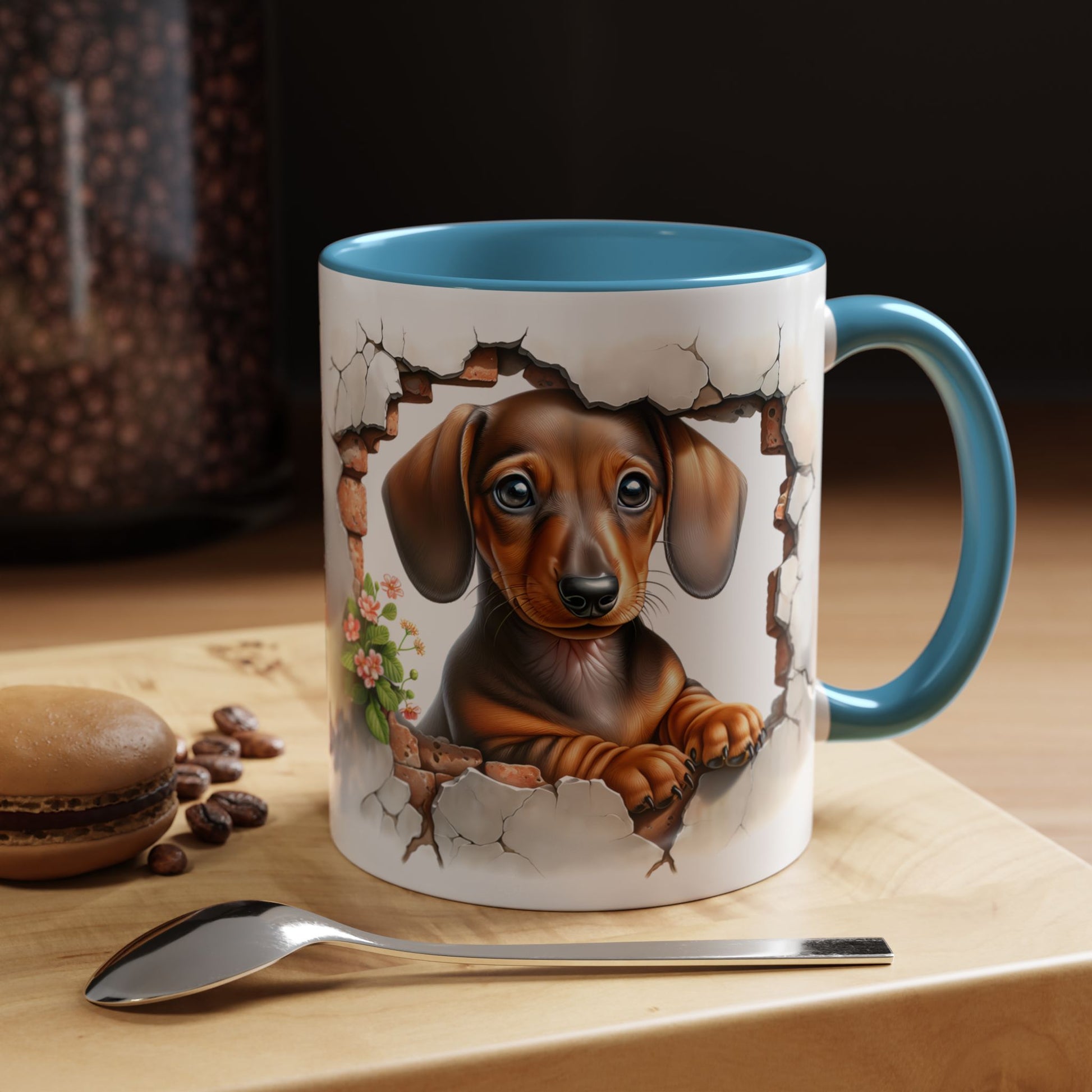 Brighten every sip with this sweet Dachshund Puppy Accent Mug! Featuring an adorable little doxie sitting in a cozy room setting with warm, inviting lighting, this mug is perfect for dog moms, dog dads, and anyone who loves a dash of cute with their morning coffee or tea. Its soft, heartwarming design makes it an instant favorite for cozy kitchens and thoughtful gifts.