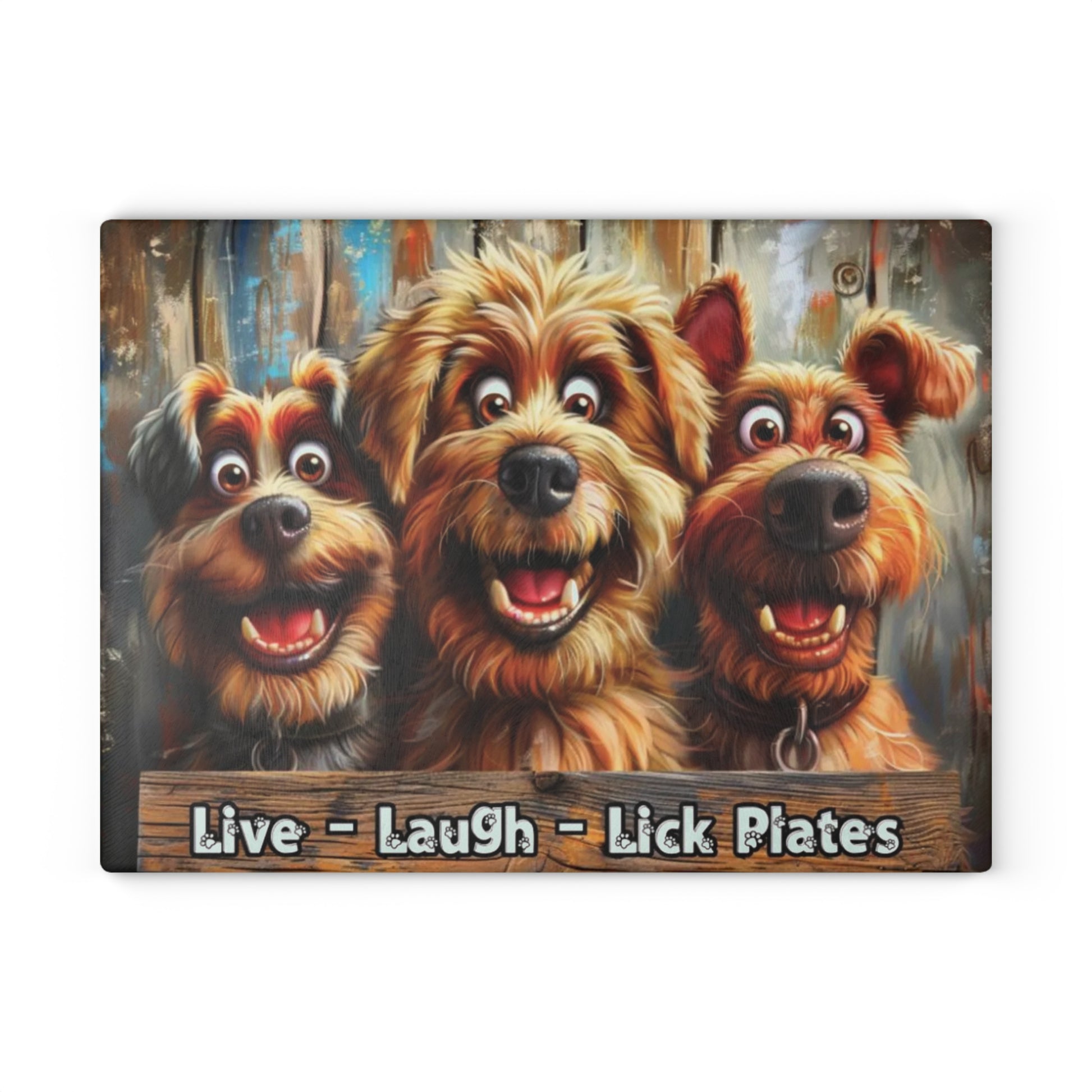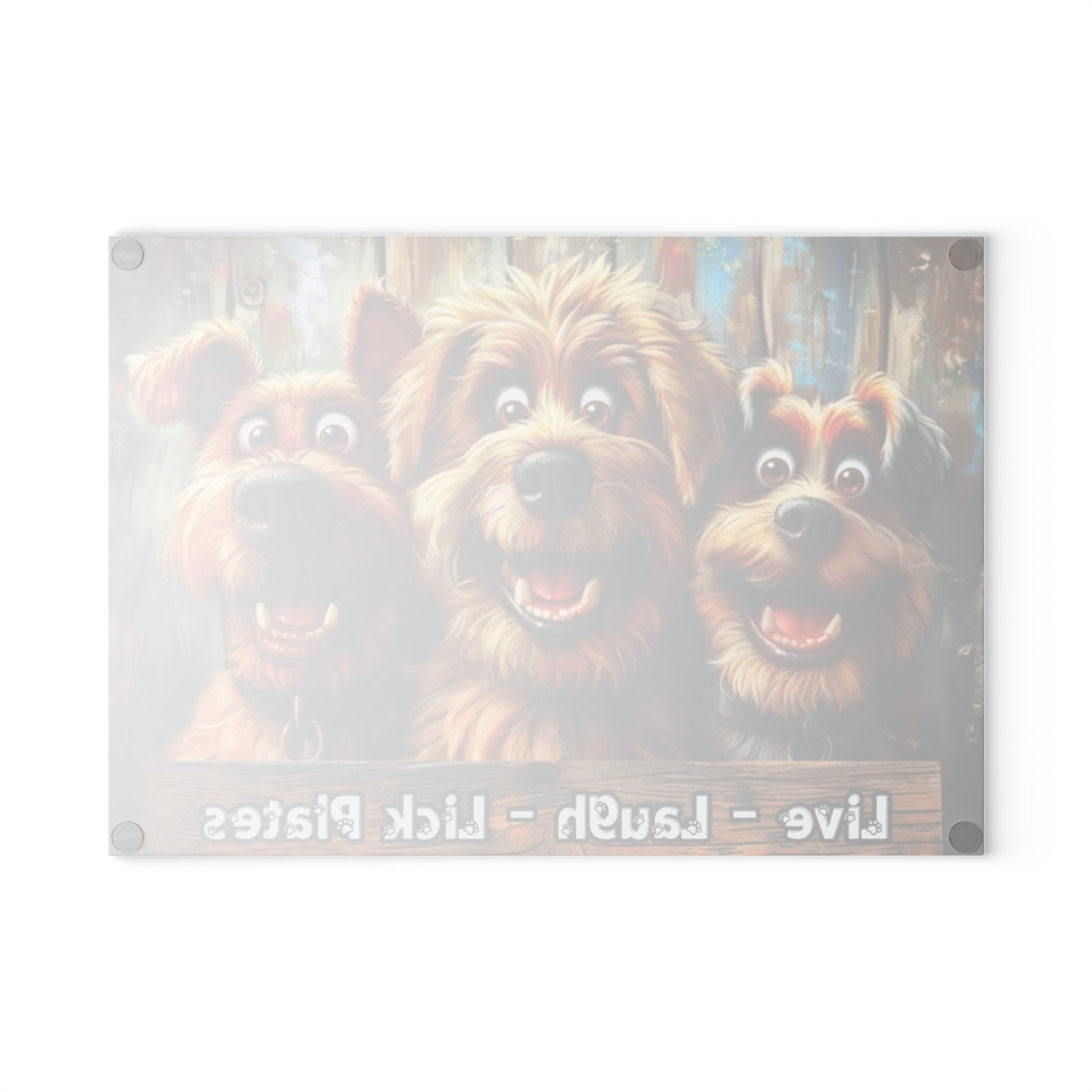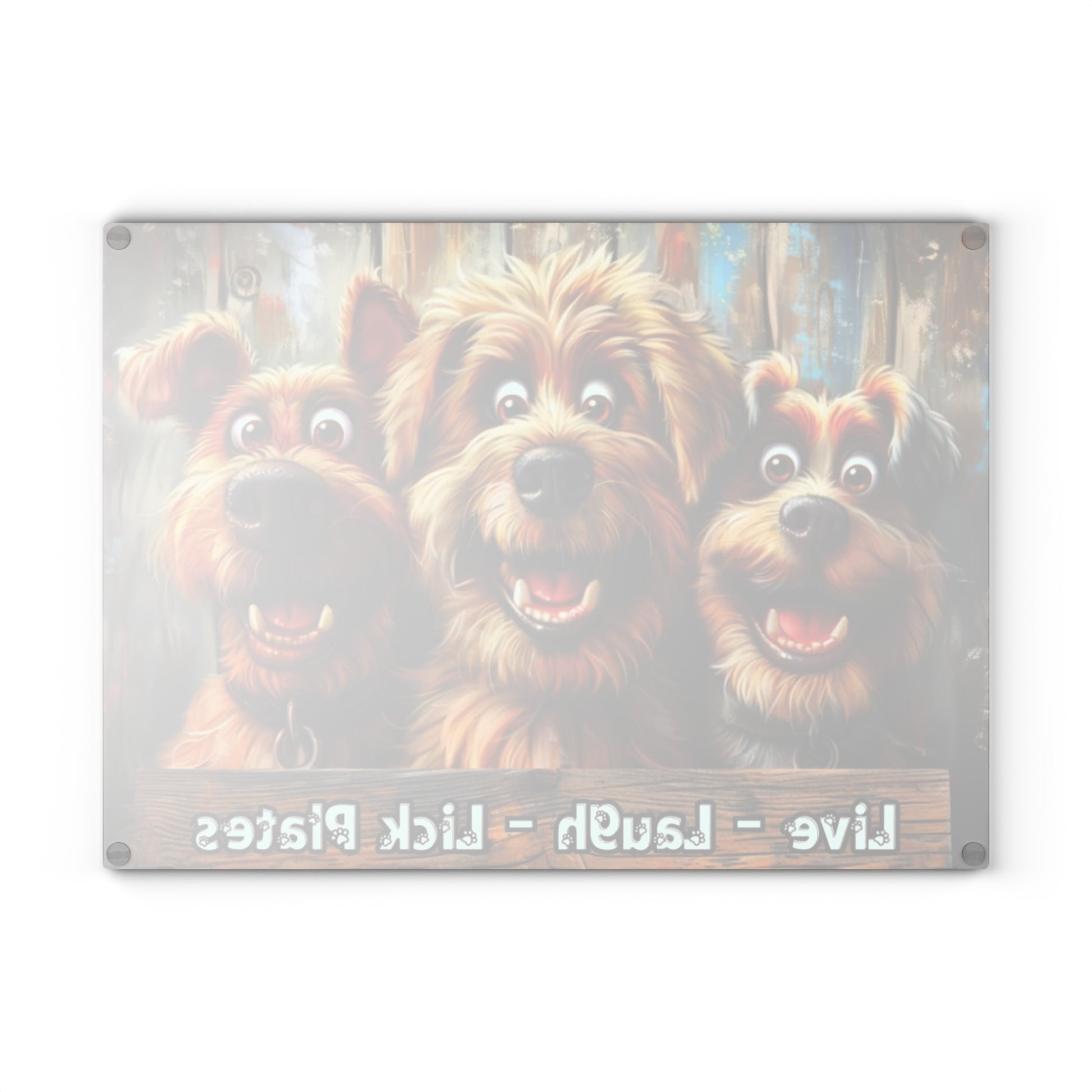 Add a fun, lighthearted touch to your kitchen with this glass cutting board featuring three smiling dogs! The bright and cheerful artwork brings warmth and character to your countertop while offering a durable surface for everyday use. Designed to blend practicality and charm, this piece is perfect for anyone who enjoys unique and uplifting home décor.