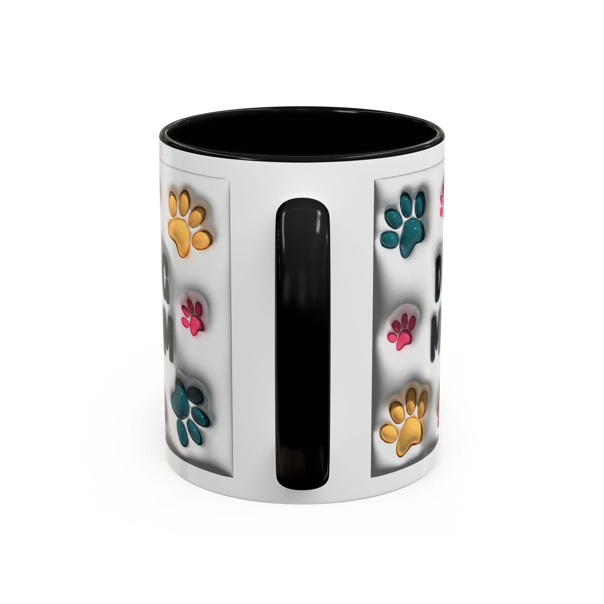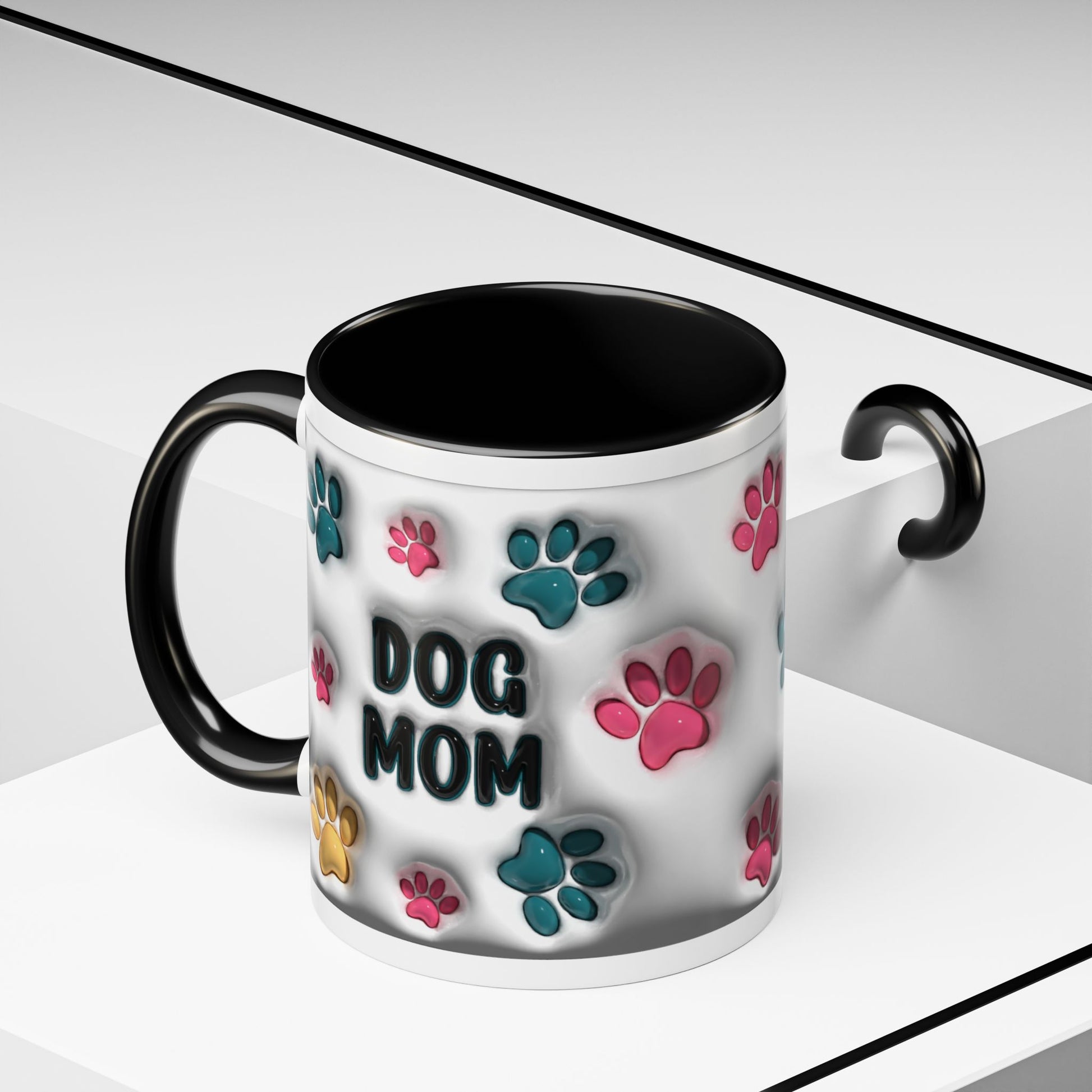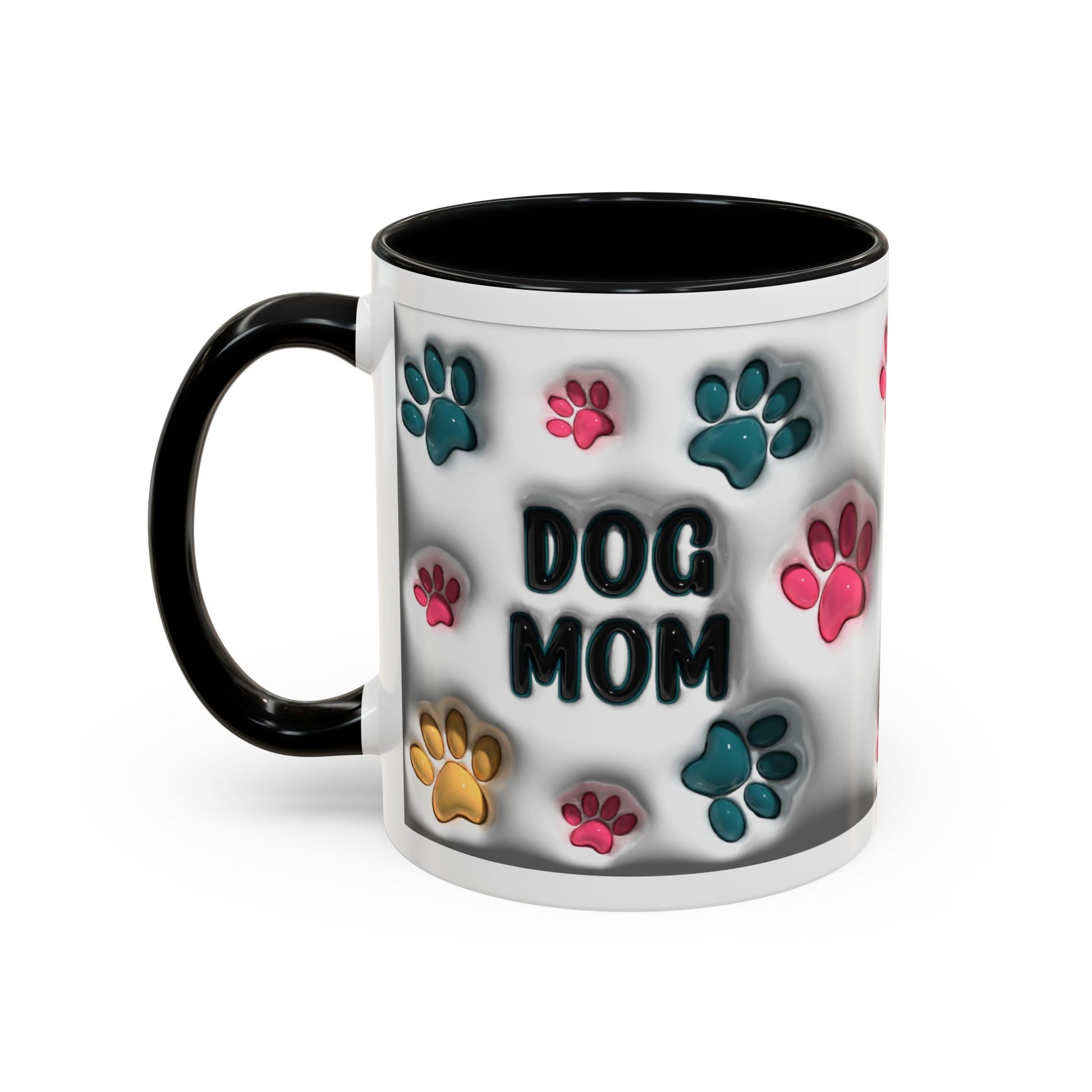 🖤🐾 Dog Mom Accent Mug – Colorful Paw Print Cup for Proud Pet Parents