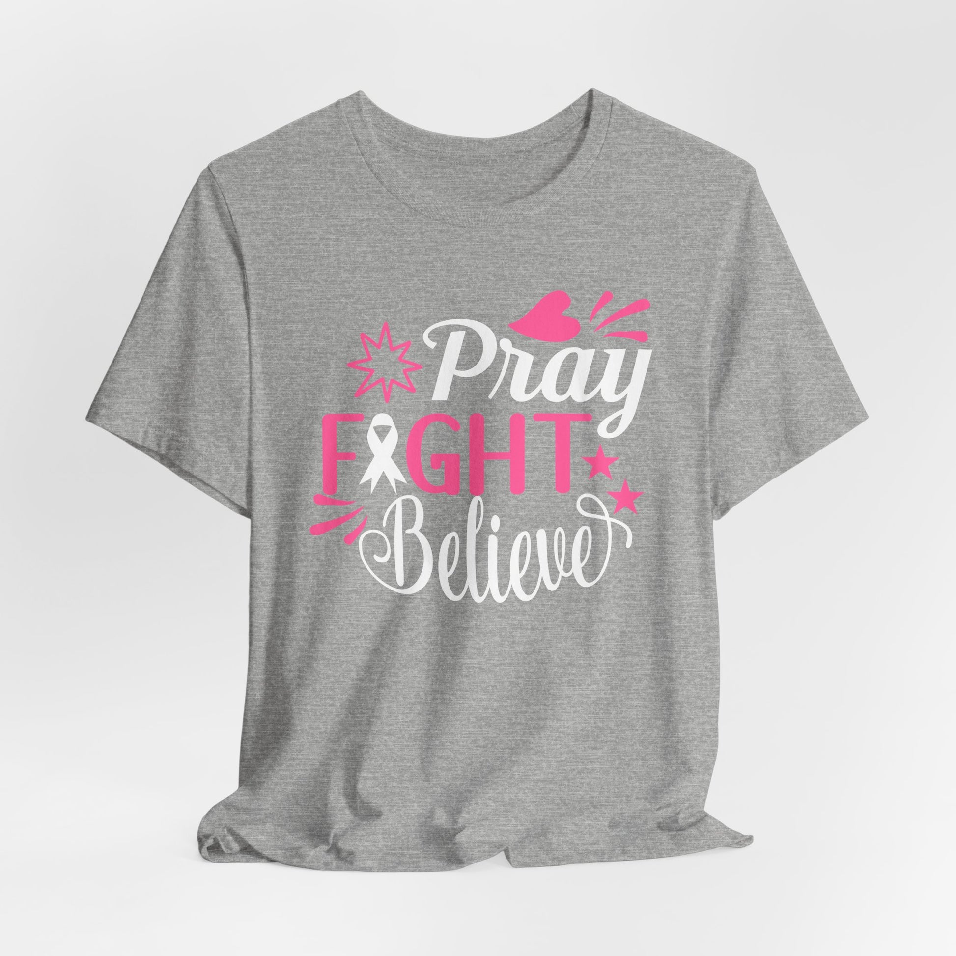 ๐ Pray Fight Believe โ Breast Cancer Awareness T-Shirt ๐๏ธ