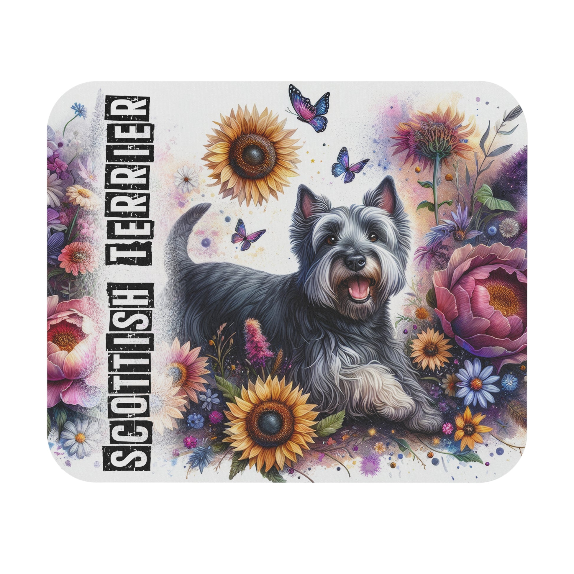 🖱️🏴🌻 Scottish Terrier Mouse Pad – Happy Scottie with Sunflowers & Florals