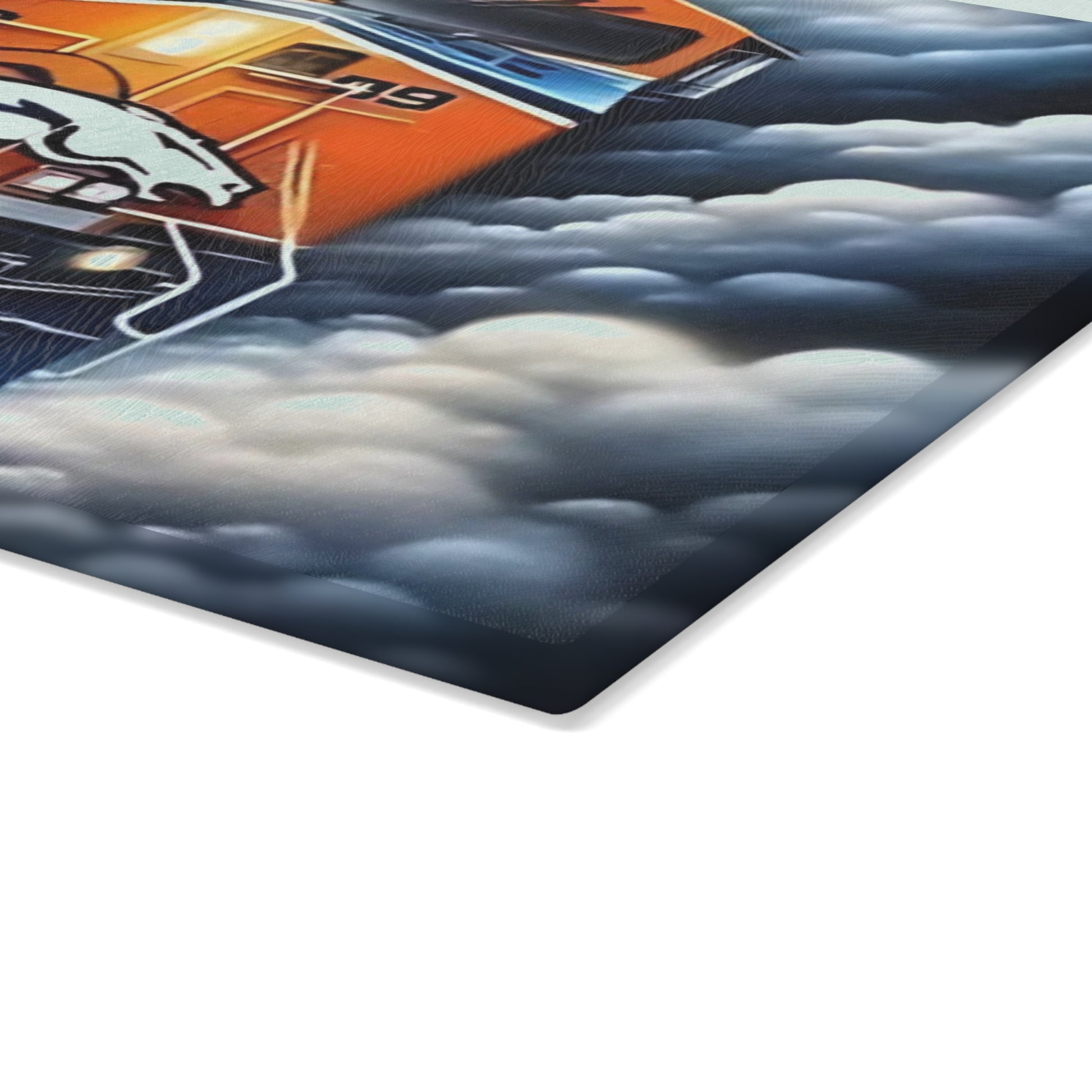 Fuel your kitchen with vibrant energy using the Blue & Orange Express cutting board! This striking tempered glass board features a bold locomotive bursting through a vivid sunset skyline in deep navy blue and fiery orange. Designed for movement and modern flair, it adds a fun yet rugged touch to meal prep, parties, or everyday kitchen décor.