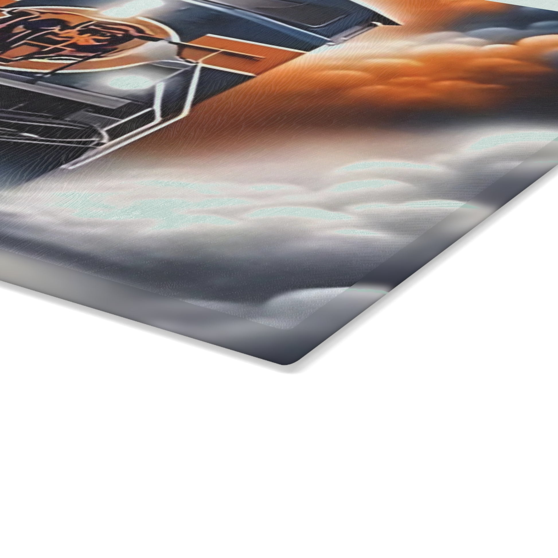 Charge your kitchen with the fierce momentum of the Navy & Orange Express! This bold tempered glass cutting board showcases a powerful train barreling through a vivid skyline, accented by deep navy tones and blazing orange highlights. Designed to energize your food prep or entertaining space, this piece brings strength, motion, and color to the heart of your home.