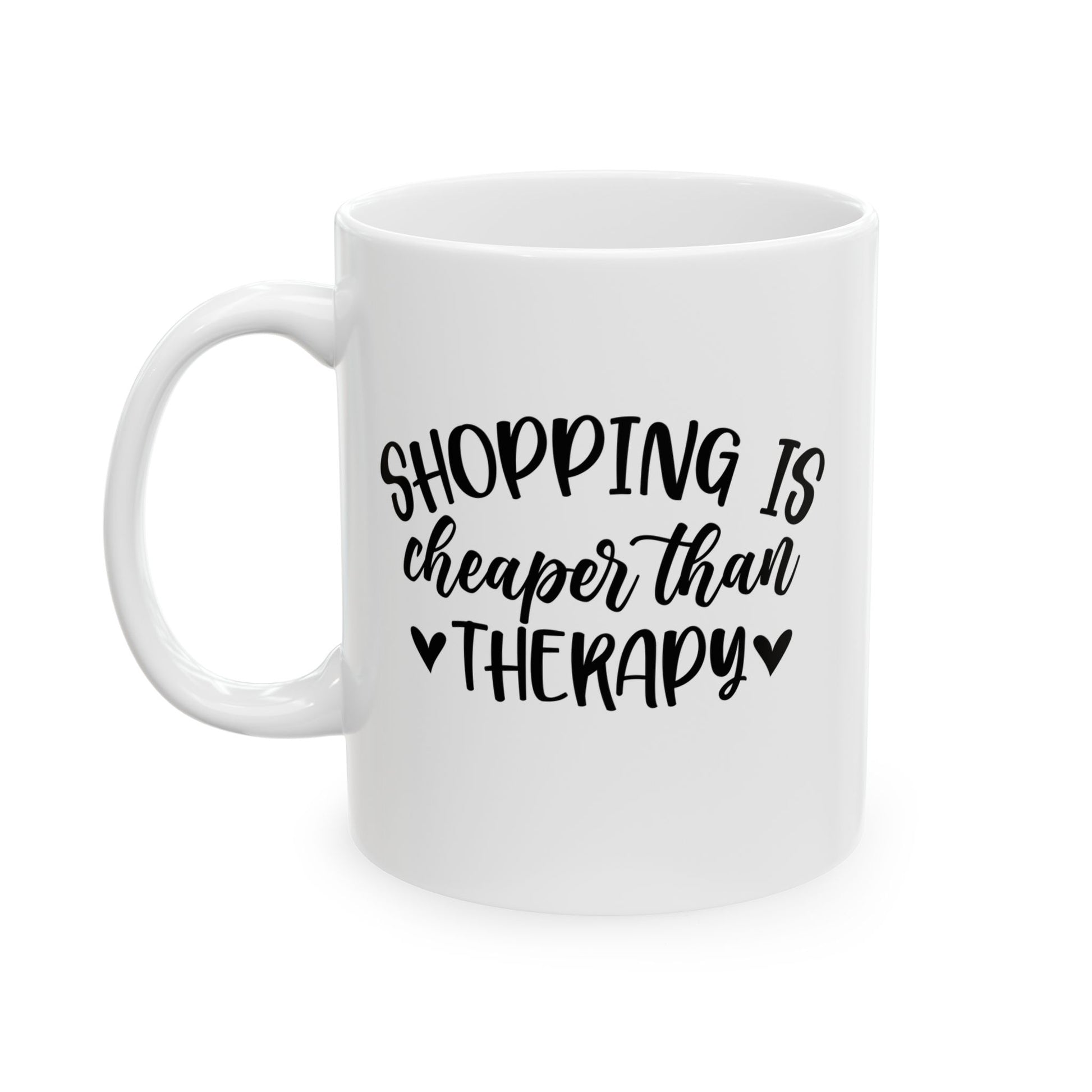 ๐๏ธ๐ Shopping Is Cheaper Than Therapy Mug โ Funny Coffee Cup โ๐ธ